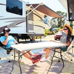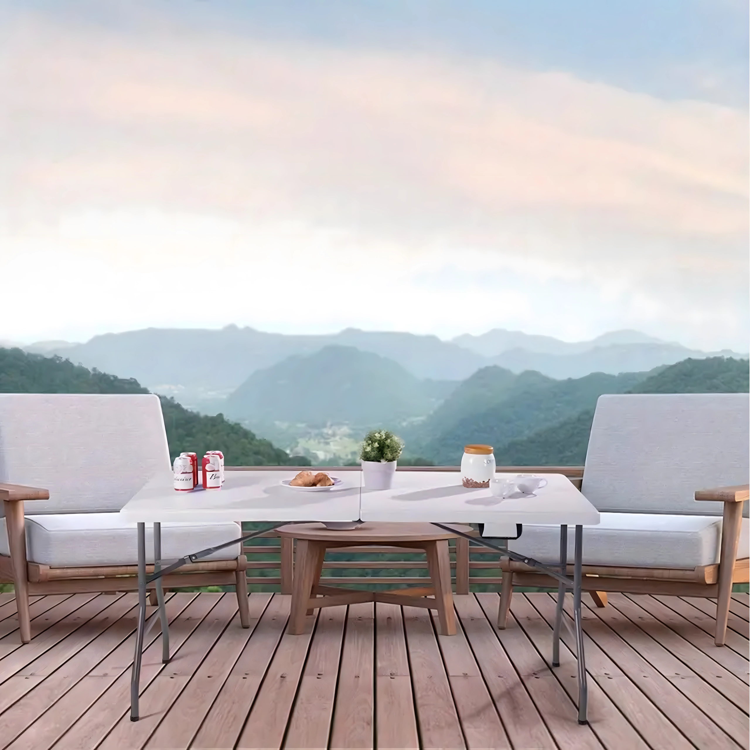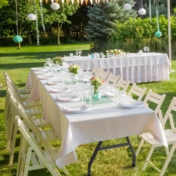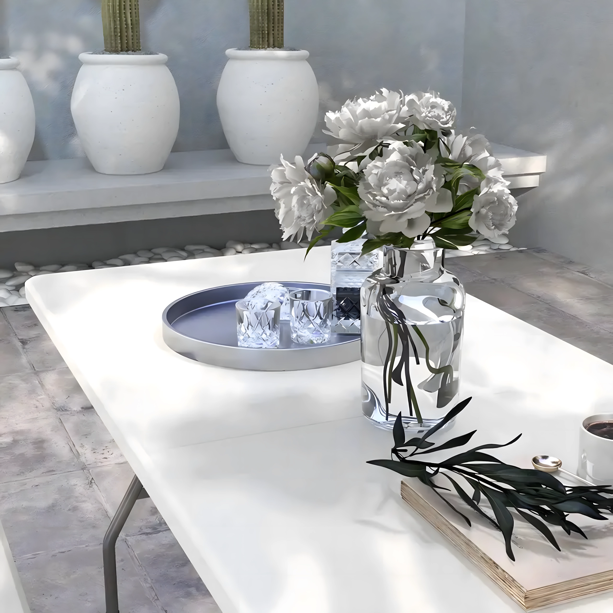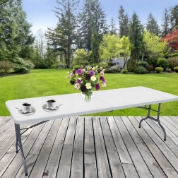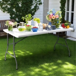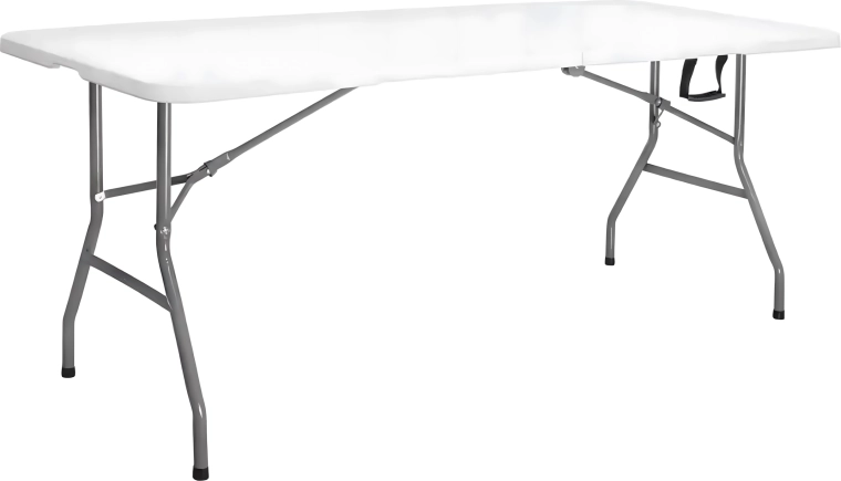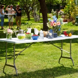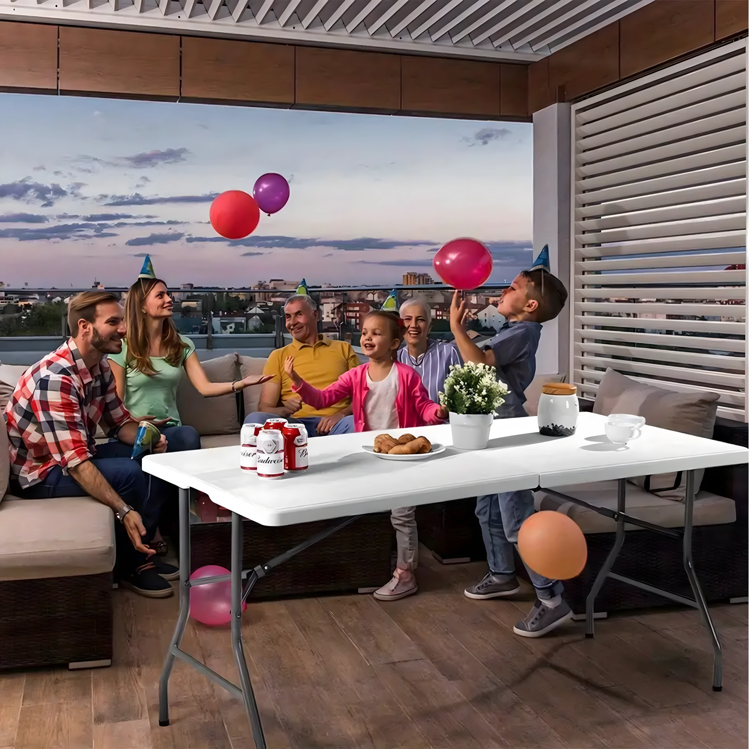 Duży i stabilny składany stół zapewni niezawodne podparcie dla poczęstunku, napojów i dekoracji. Gładka powierzchnia z twardego tworzywa jest łatwa w utrzymaniu i idealna do użytku na zewnątrz oraz na imprezy w pomieszczeniach.