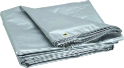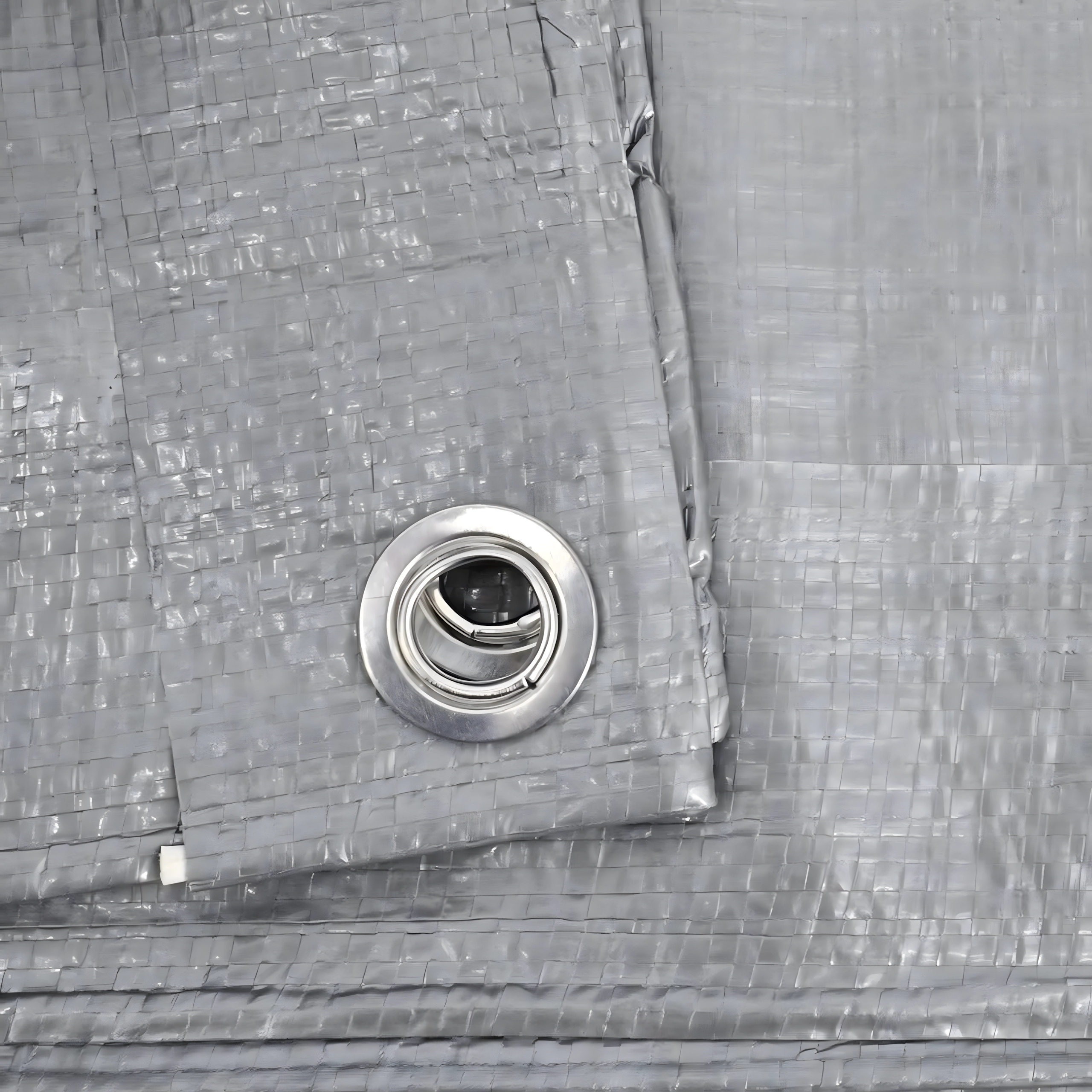 Na obwodzie rozmieszczono metalowe oczka do bezpiecznego naciągnięcia i przymocowania plandeki do ram, kołków lub ładunku. Srebrny kolor dodatkowo pomaga odbijać promienie słoneczne i ograniczać nagrzewanie osłanianych rzeczy.