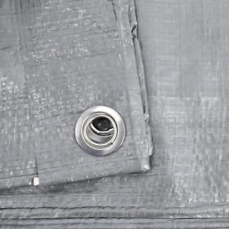 Na obwodzie rozmieszczono metalowe oczka do szybkiego wiązania i mocowania do wiaty, ogrodzenia lub konstrukcji. Plandeka trzyma się nawet przy wietrze.