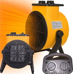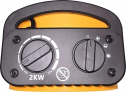 Intuicyjne pokrętła pozwalają na płynną regulację termostatu i wybór trybów. Przednia kratka bezpieczeństwa chroni przed kontaktem z elementem grzejnym, a solidna konstrukcja i odchylana podstawa zapewniają kierunkowy strumień ciepłego powietrza tam, gdzie jest potrzebny.