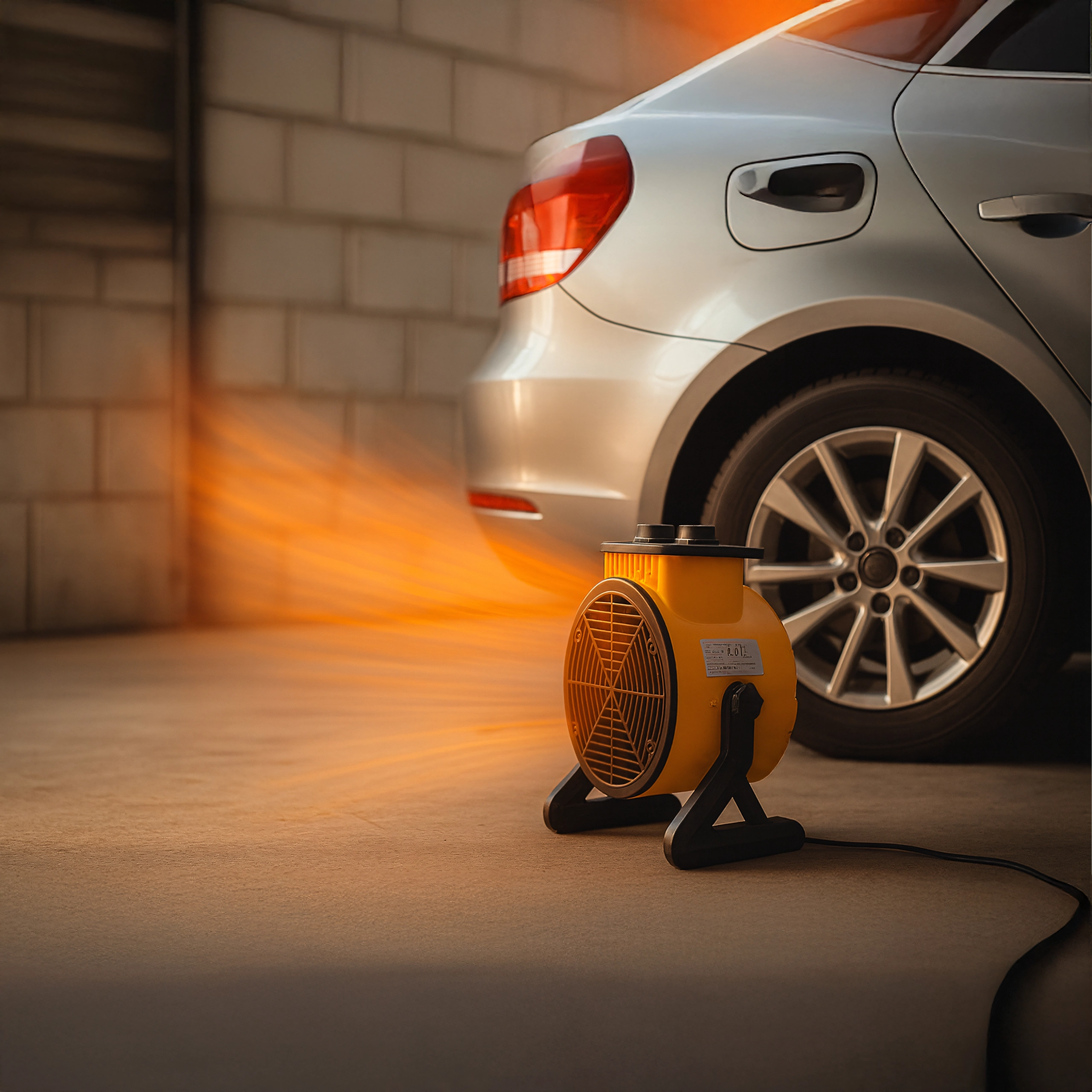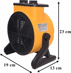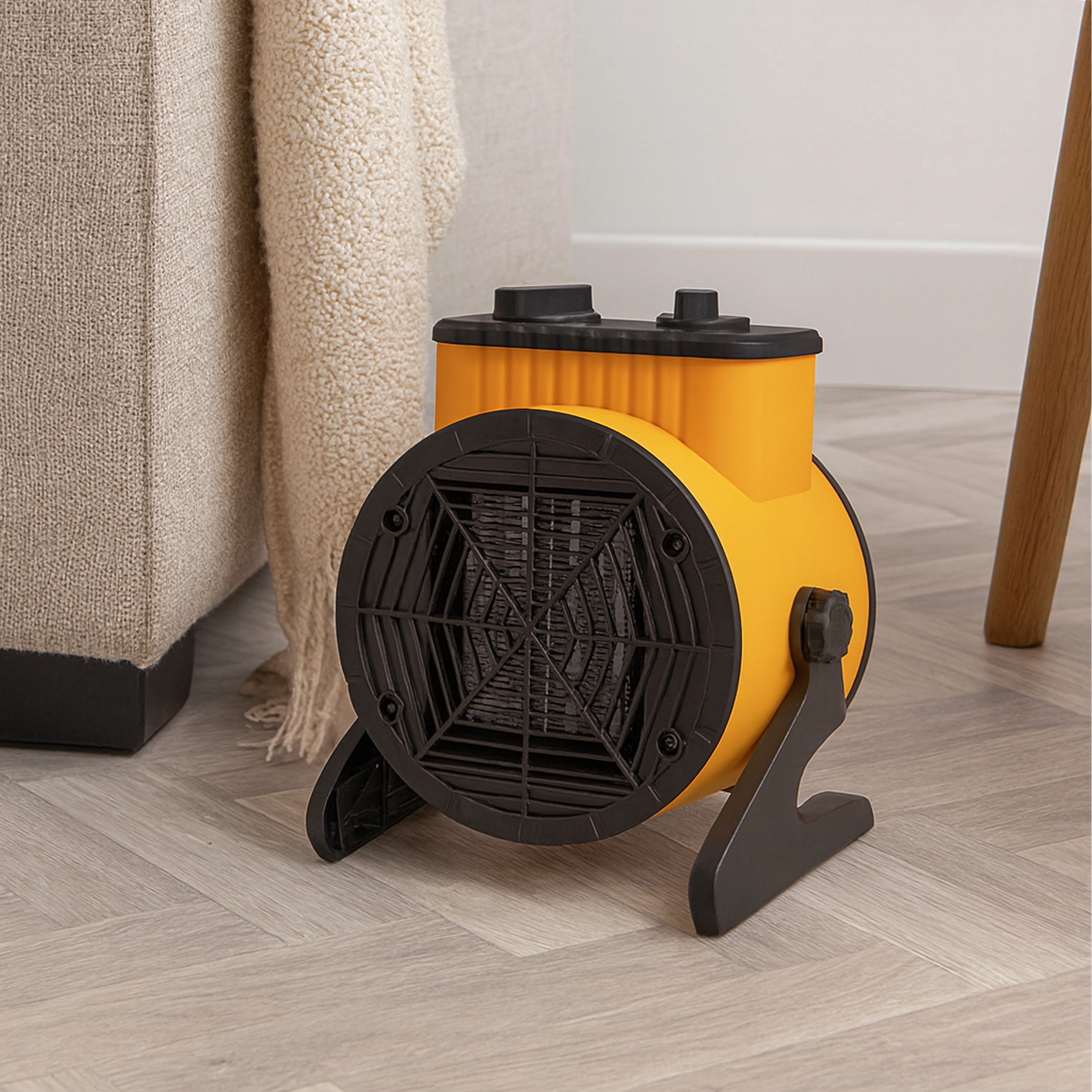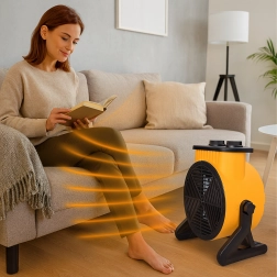 Stabilna, odchylana podstawa oraz zintegrowany uchwyt pozwalają skierować strumień powietrza dokładnie tam, gdzie jest potrzebny – w łazience, warsztacie czy garażu.