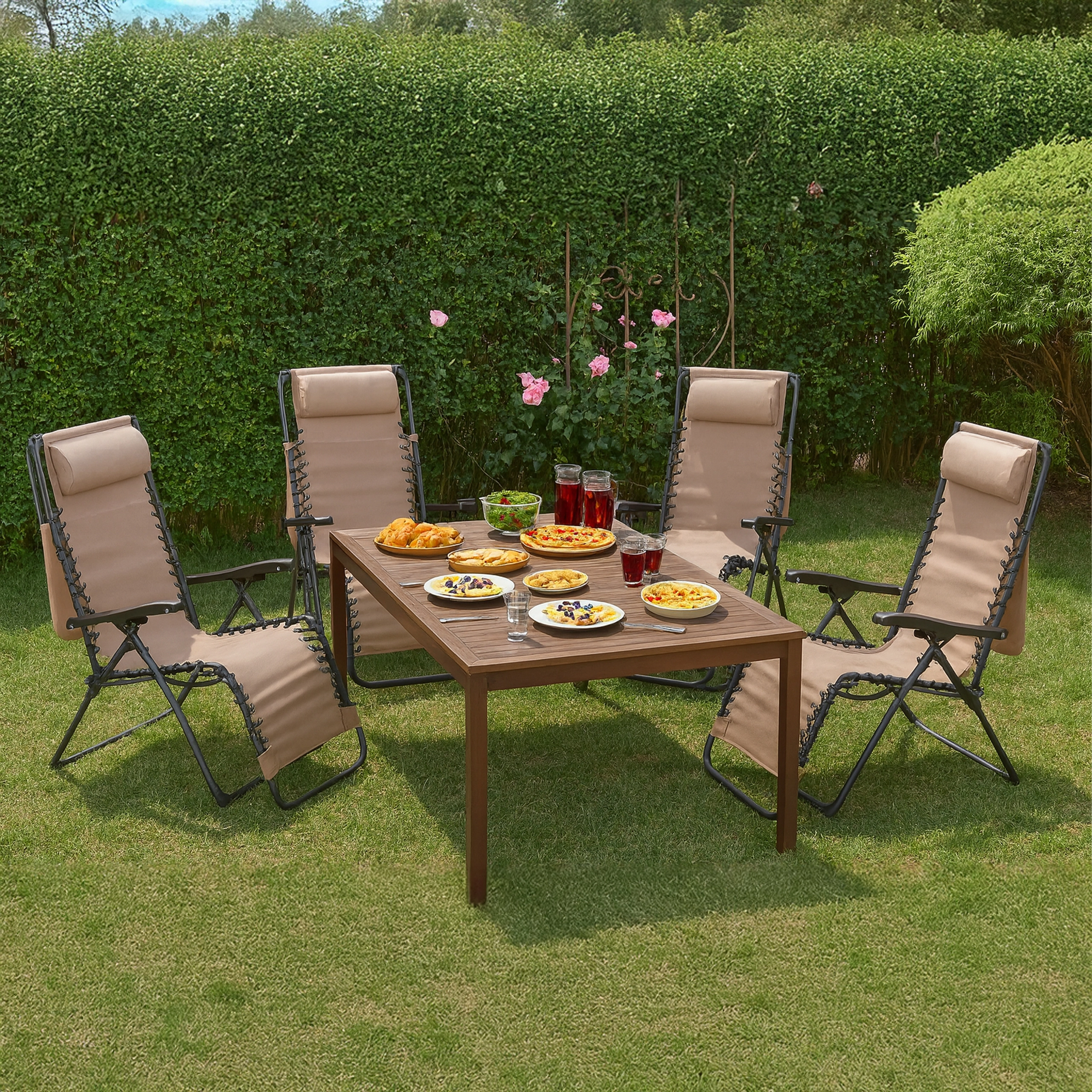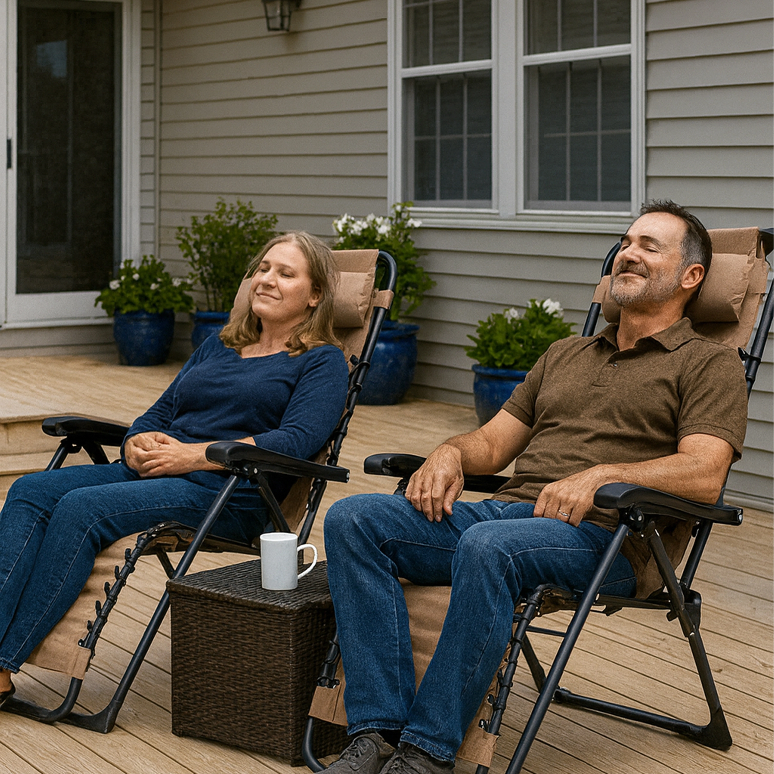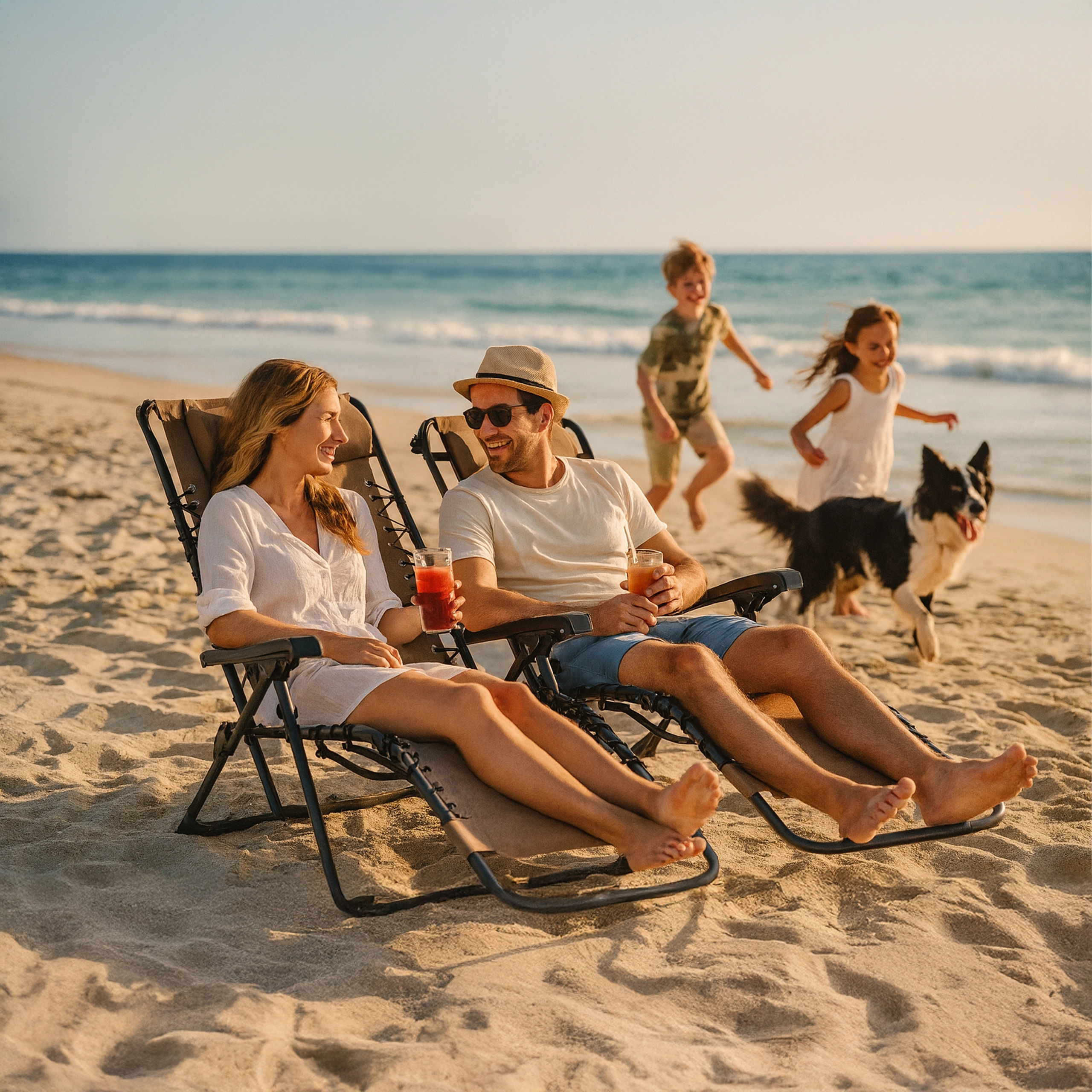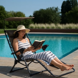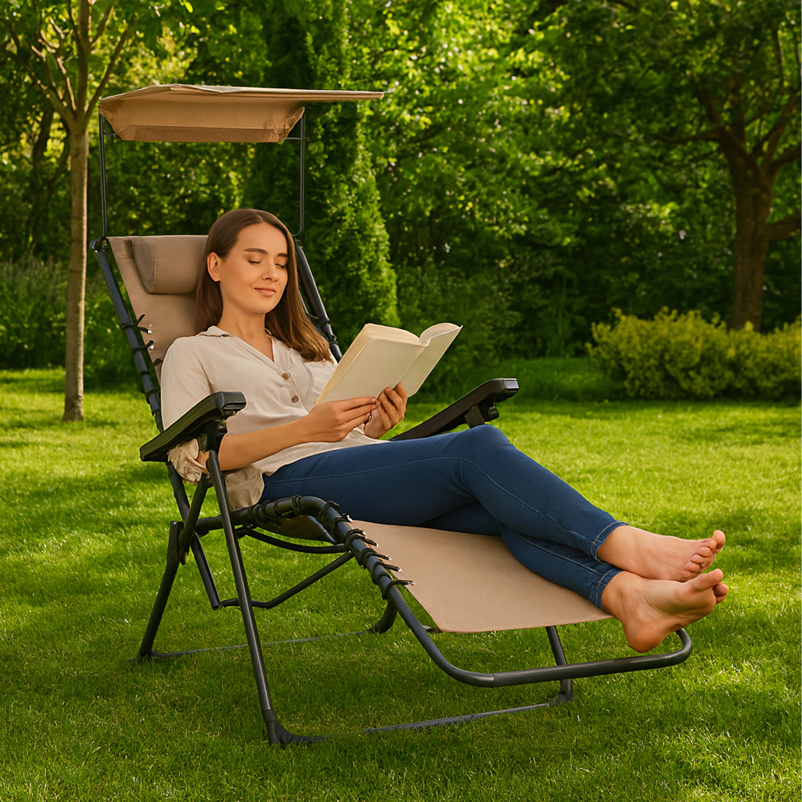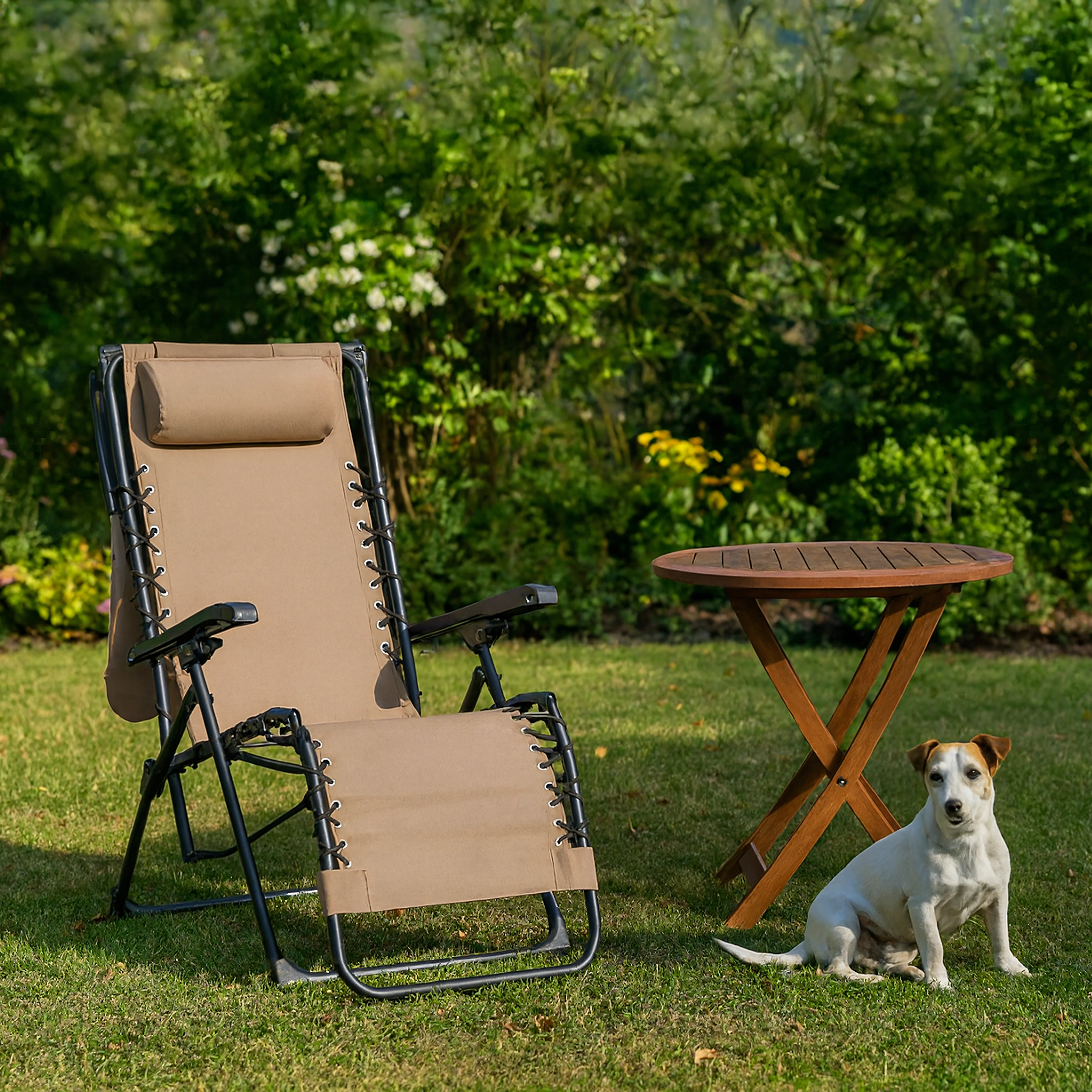 Ciesz się beztroskim relaksem z leżakiem zero gravity, który równomiernie rozkłada ciężar ciała i odciąża plecy oraz stawy. Wytrzymały materiał textilene jest przyjemnie oddychający, szybko schnie i łatwo go czyścić, a solidna stalowa rama zapewnia stabilność na trawie, tarasie i przy basenie.