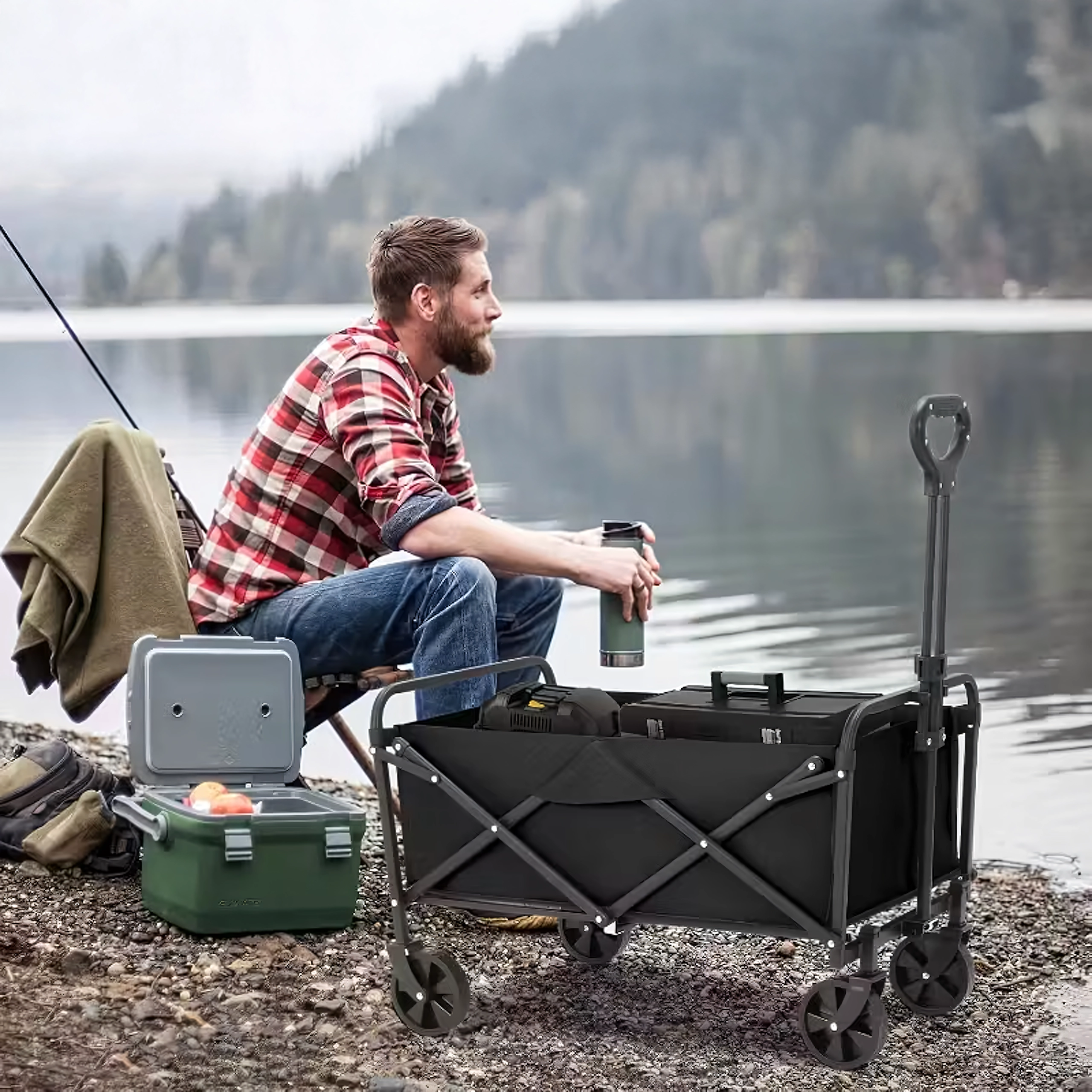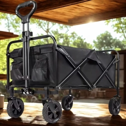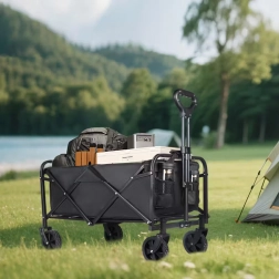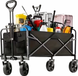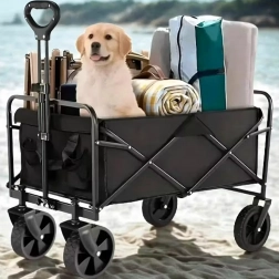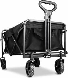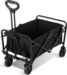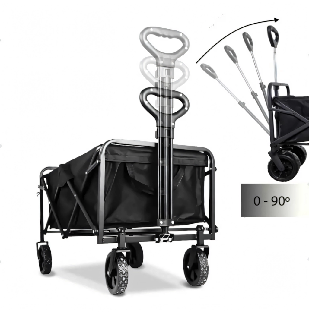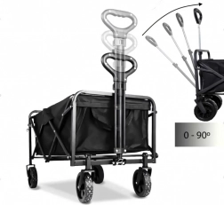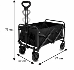 Praktyczny składany wózek z mocną stalową konstrukcją, wodoodpornym materiałem i kołami obracającymi się o 360° jest idealny na plażę, do ogrodu, na kemping oraz na zakupy. Łatwo się składa, zajmuje minimum miejsca i niezawodnie przewiezie Twoje rzeczy oraz drewno opałowe.