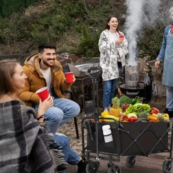Uniwersalny składany wózek ułatwi codzienne i rekreacyjne aktywności. Dzięki wytrzymałej stalowej ramie i mocnej tkaninie poradzi sobie z przenoszeniem cięższych ładunków na różnych nawierzchniach – od ogrodu, przez park, po plażę. Duże obrotowe koła zapewniają płynny ruch i łatwe manewrowanie także w terenie.
