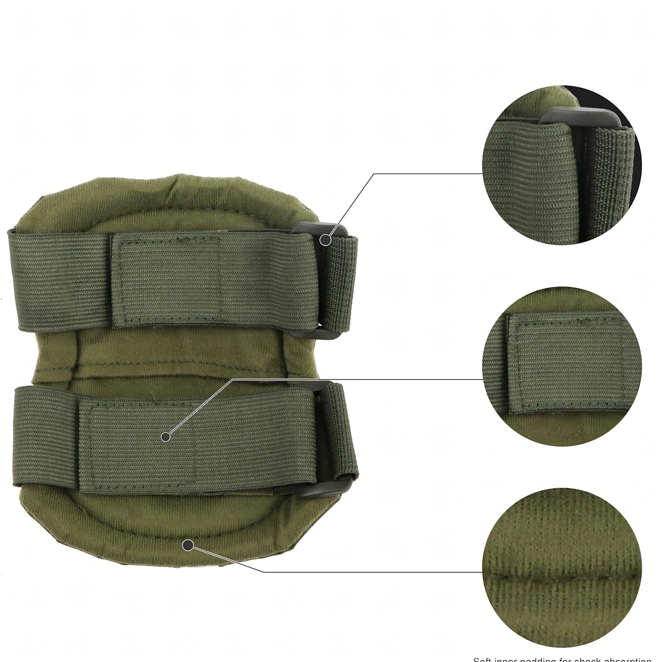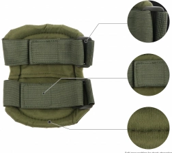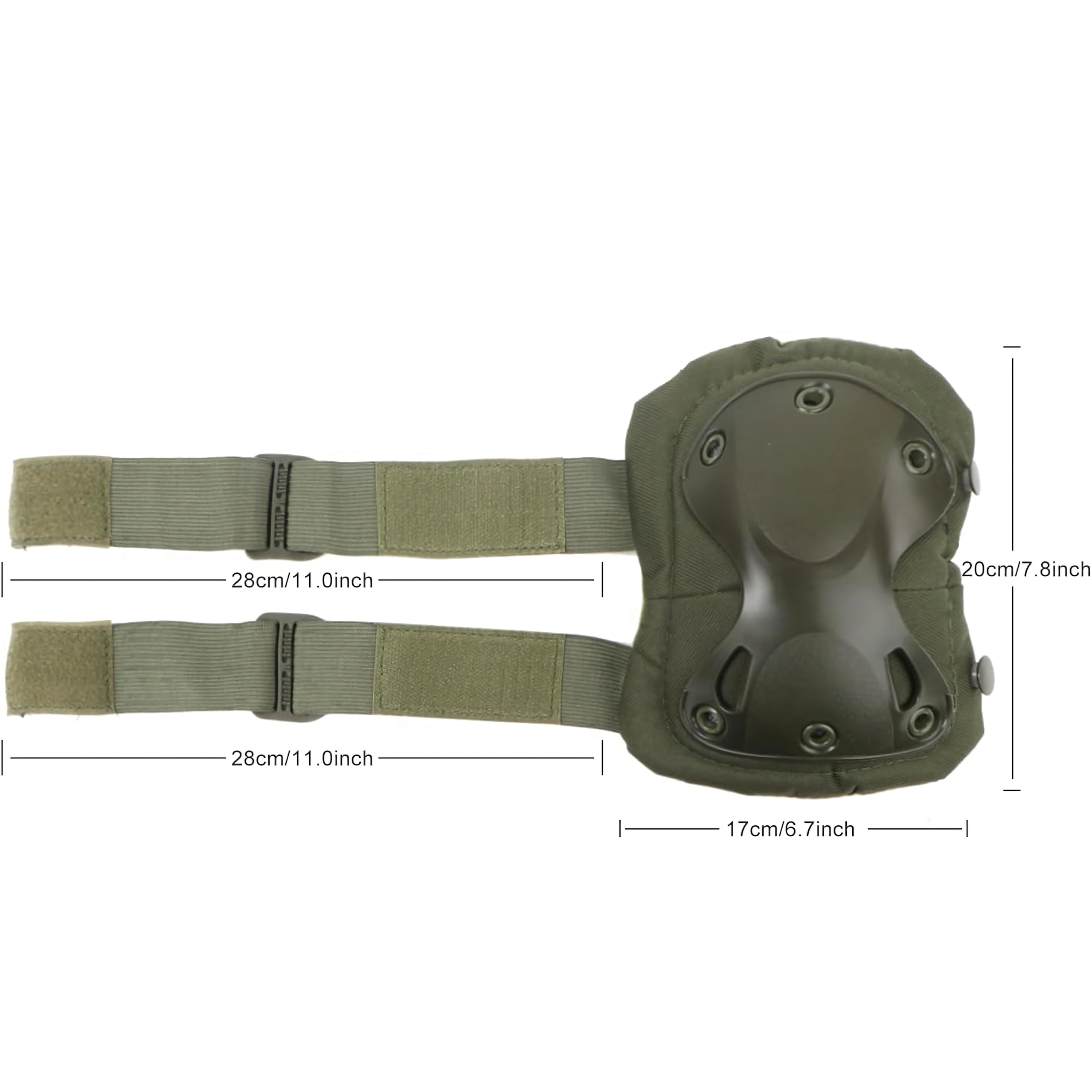 Ochraniacze mocowane są za pomocą elastycznych pasków z możliwością precyzyjnego dociągnięcia. Nitowane połączenie podnosi odporność na wyrwanie, a szybkozapinane klamry umożliwiają błyskawiczne zakładanie i zdejmowanie bez ponownej regulacji długości pasków. Odpowiednie do airsoftu, paintballu, kolarstwa, skate/hulajnoga/rolki, outdooru oraz lekkich prac.