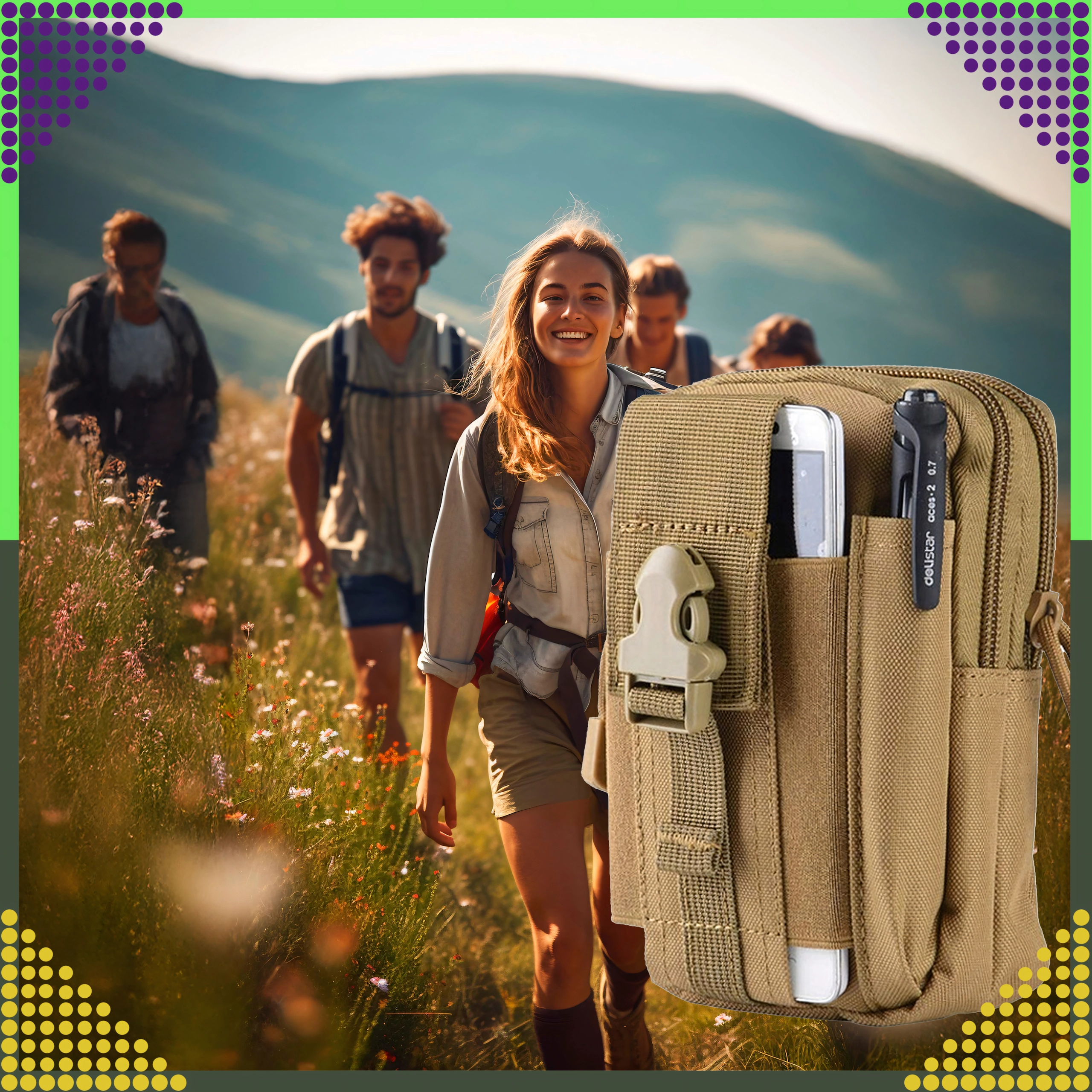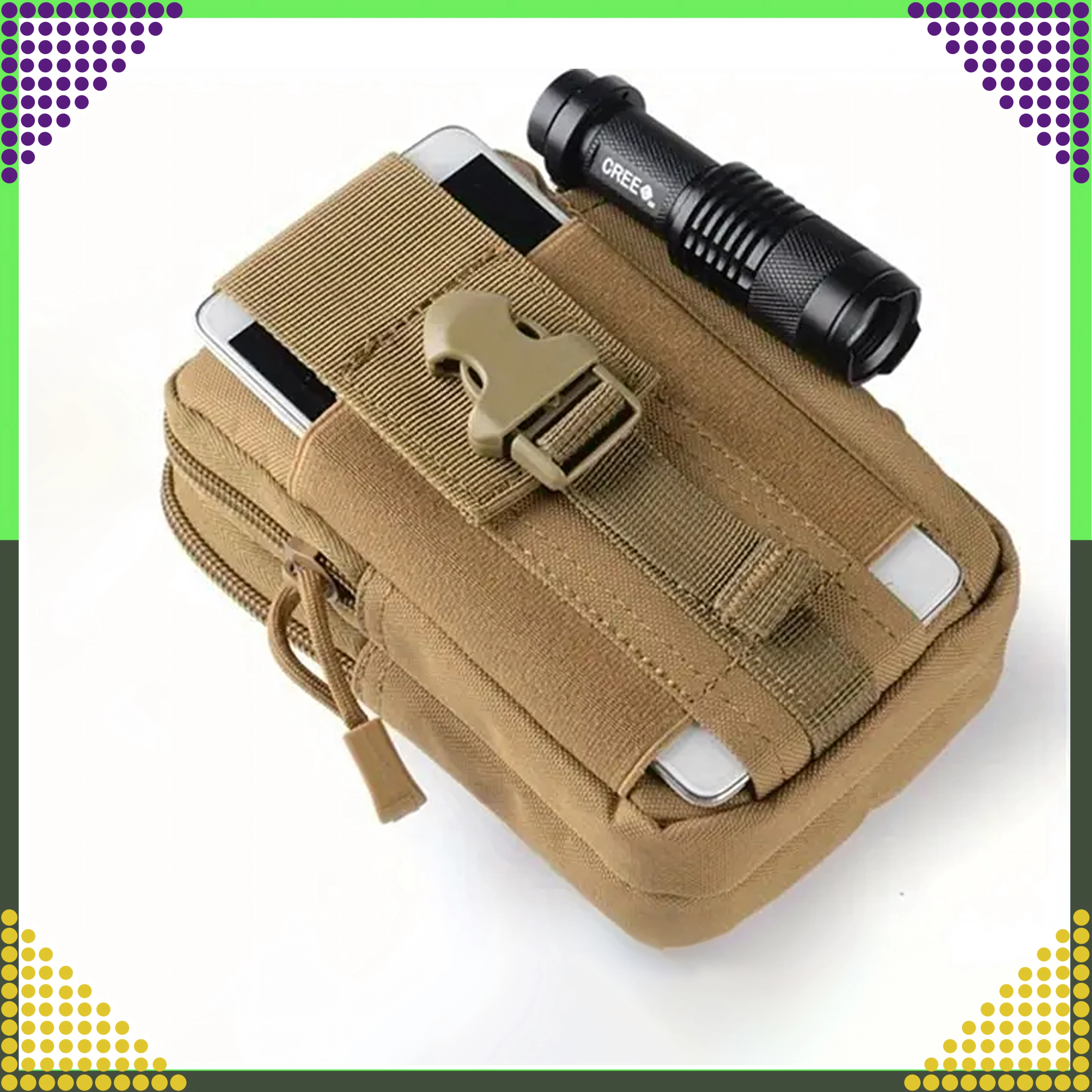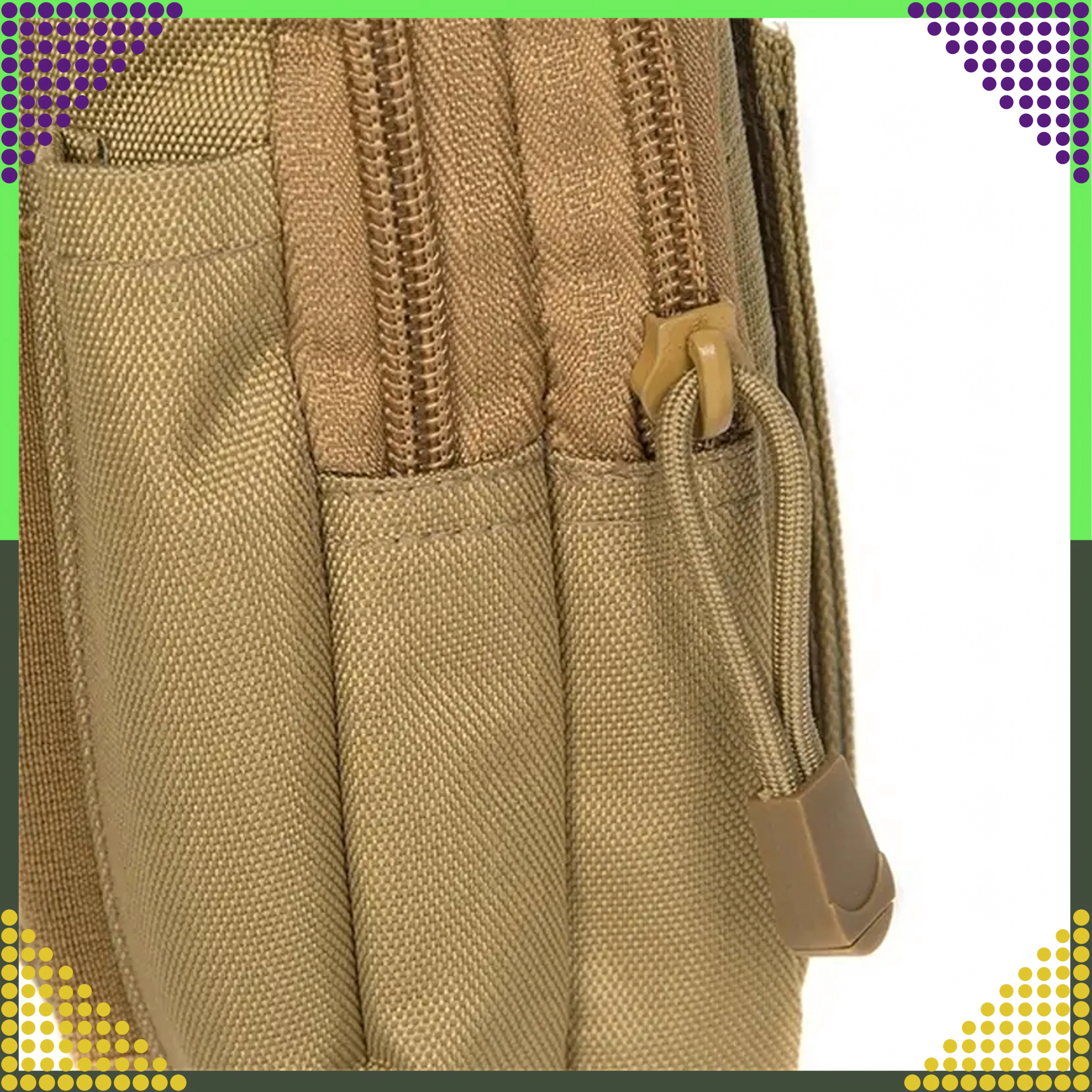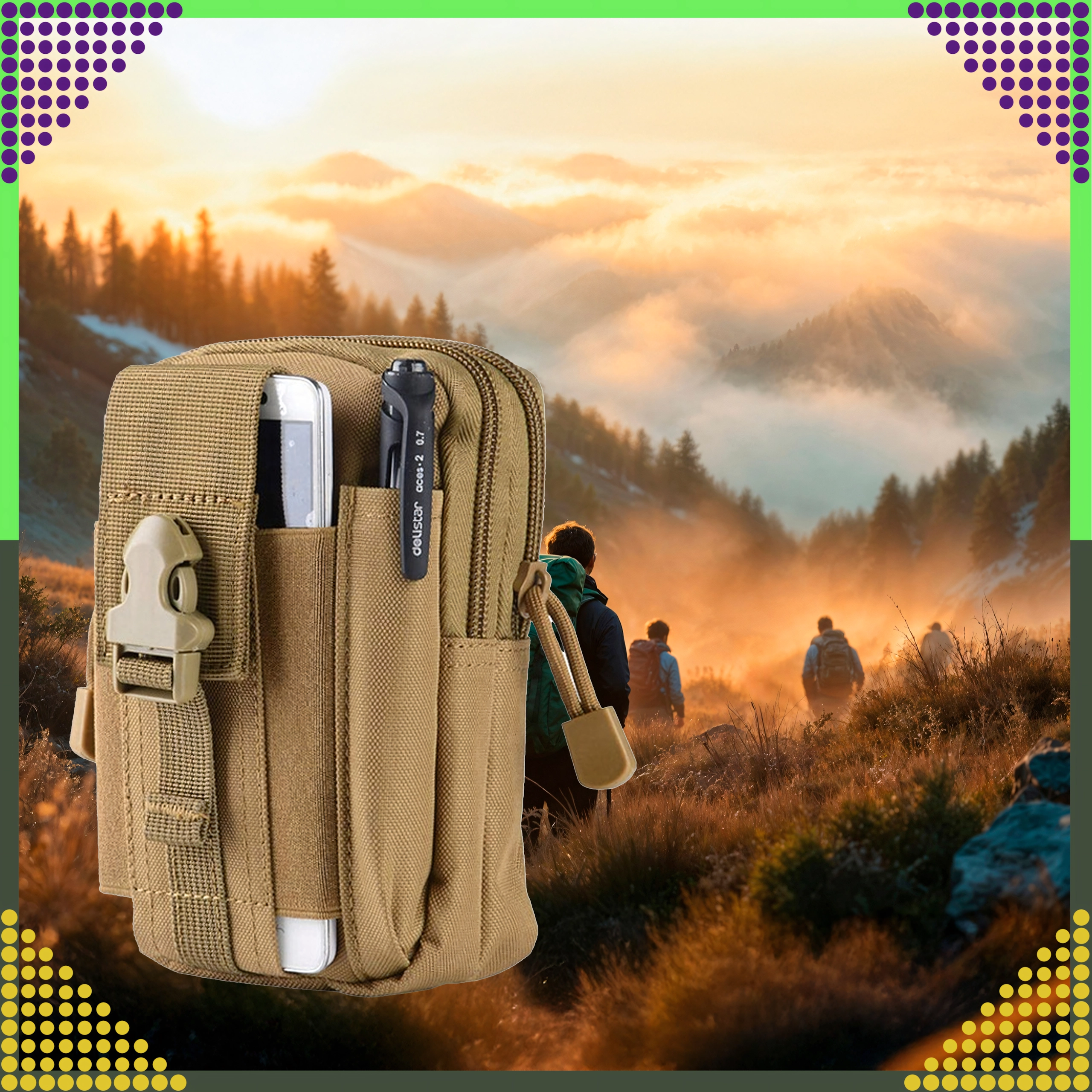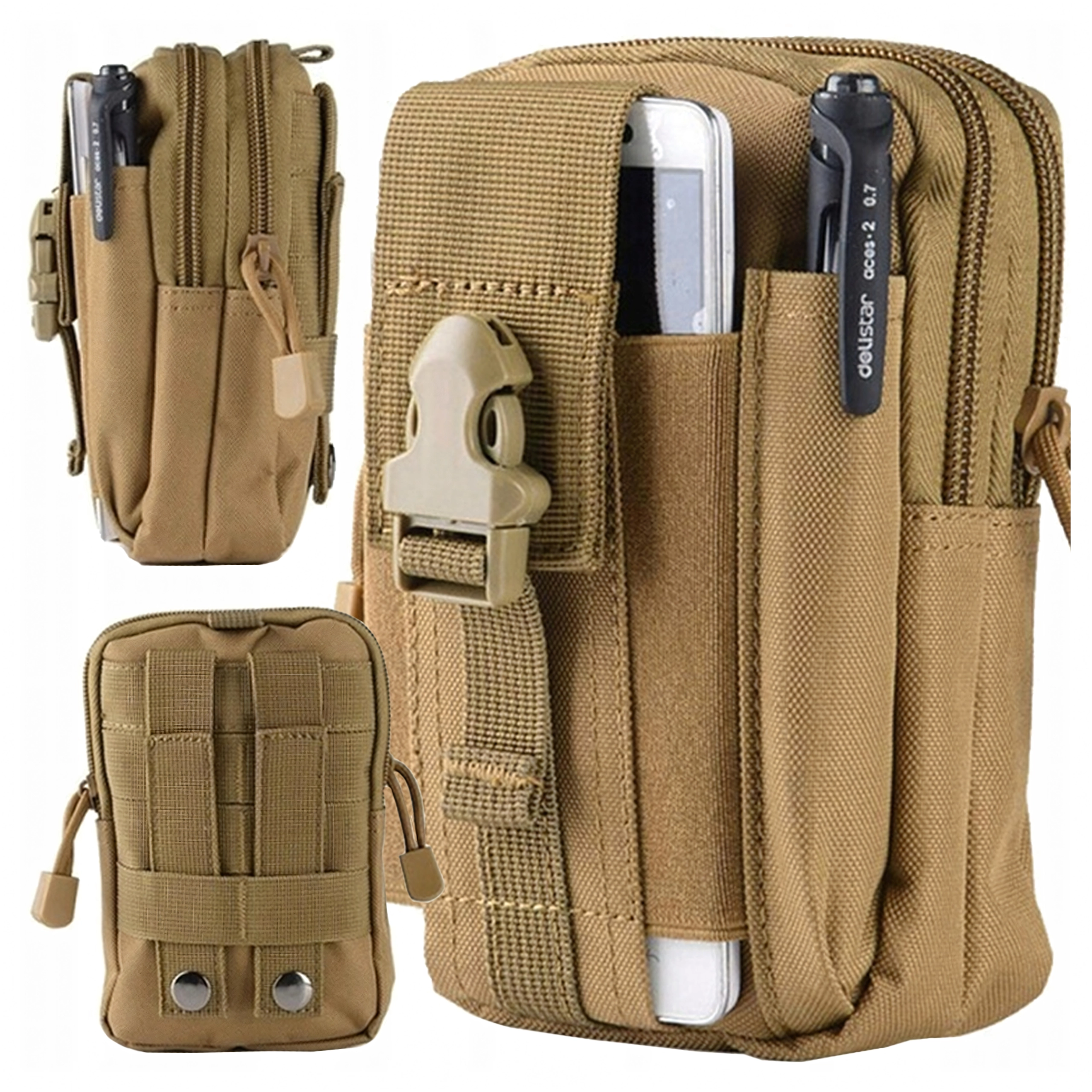 Ten uniwersalny outdoorowy organizer w brązowym kolorze utrzyma Twoje niezbędniki przejrzyście i bezpiecznie pod ręką. Dzięki systemowi MOLLE łatwo przypniesz go do paska, plecaka lub taktycznego ekwipunku. Dwie pojemne główne komory na zamek, przednia kieszeń na telefon i boczne pętelki na długopis/latarkę zapewniają szybki dostęp i świetną organizację.
