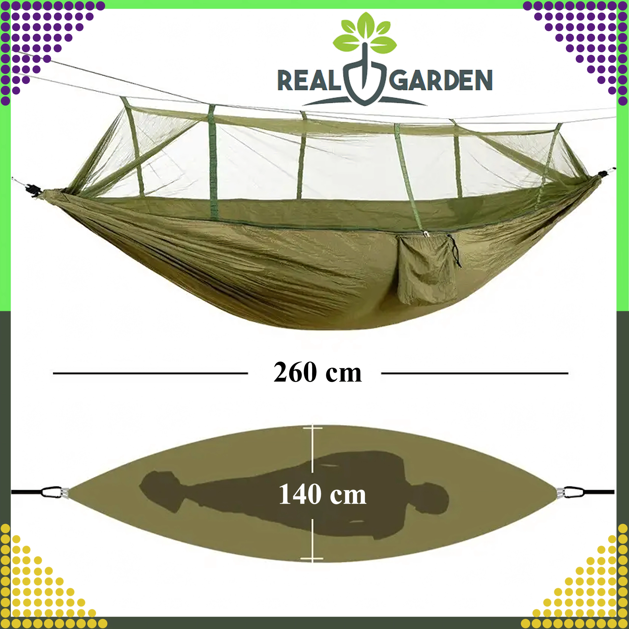 Zintegrowana moskitiera skutecznie ochroni Cię przed owadami, dzięki czemu zaznasz spokojnego snu także na łonie natury. Dzięki wymiarom 260 × 140 cm zapewnia dużo przestrzeni, a udźwig 180 kg gwarantuje bezpieczne użytkowanie.