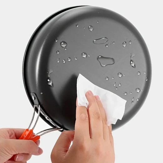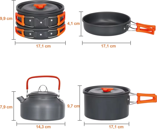 Zestaw nadaje się do przygotowywania posiłków na przenośnej kuchence gazowej oraz do podgrzewania wody w czajniku. Powłoka nieprzywierająca ułatwia gotowanie i czyszczenie.