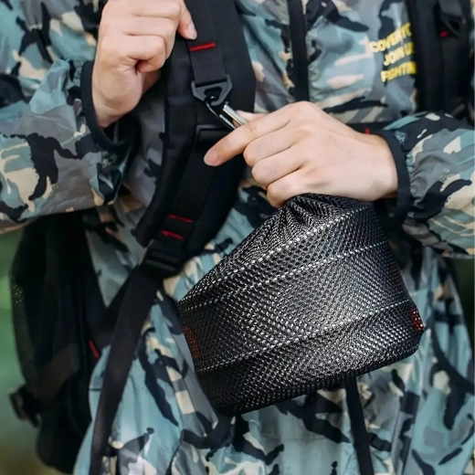 Pomarańczowe składane uchwyty oszczędzają miejsce, dobrze leżą w dłoni i pozostają chłodniejsze. Wszystko zmieścisz w dołączonym siatkowanym etui.