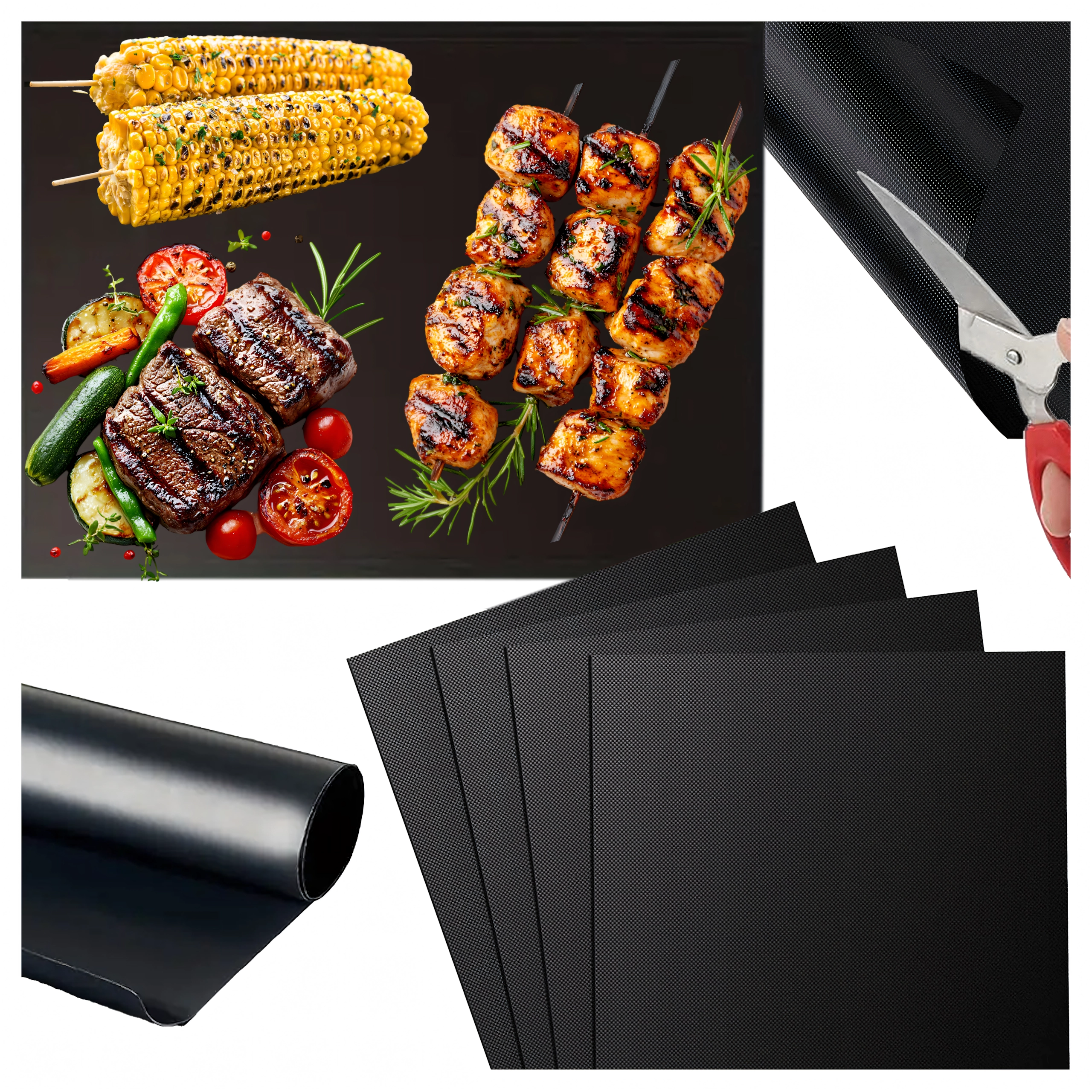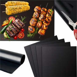 Praktyczna teflonowa mata do grillowania i pieczenia w zestawie 4 szt. ułatwia przygotowanie potraw bez przypalania i bez tłuszczu. Jest nieprzywierająca, łatwa w czyszczeniu, bez PFOA i przeznaczona do wielokrotnego użytku aż do 260 °C. Idealna do mięsa, ryb, warzyw i owoców, a jednocześnie utrzymuje grill i piekarnik w czystości.