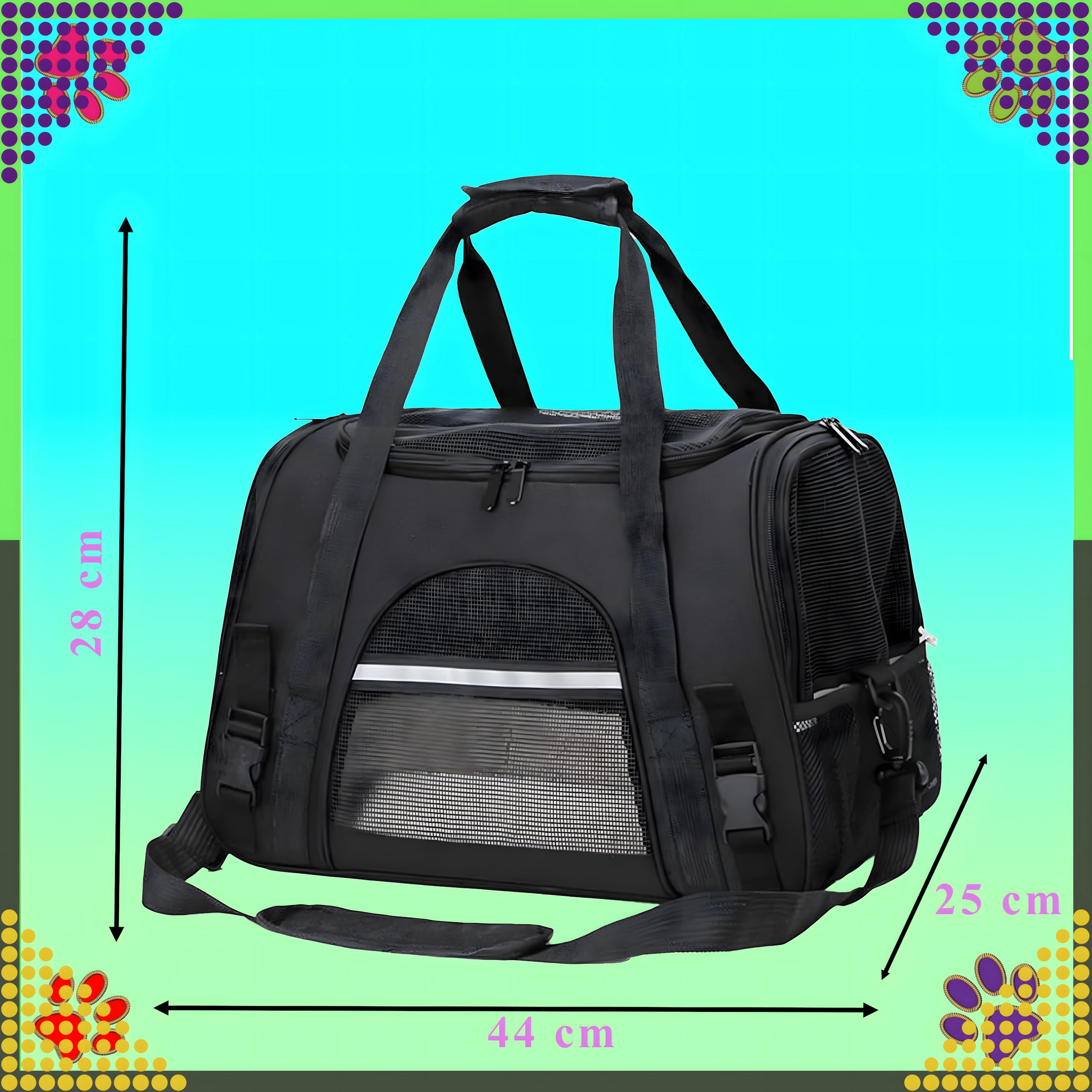 Praktyczny i lekki transporter dla zwierząt domowych z wytrzymałego poliestru zapewnia komfort i bezpieczeństwo podczas podróży. Dzięki kompaktowym wymiarom 44 × 28 × 25 cm jest idealny do samochodu i komunikacji miejskiej, łatwy w czyszczeniu, nie pochłania zapachów oraz jest odporny na plamy i warunki pogodowe.