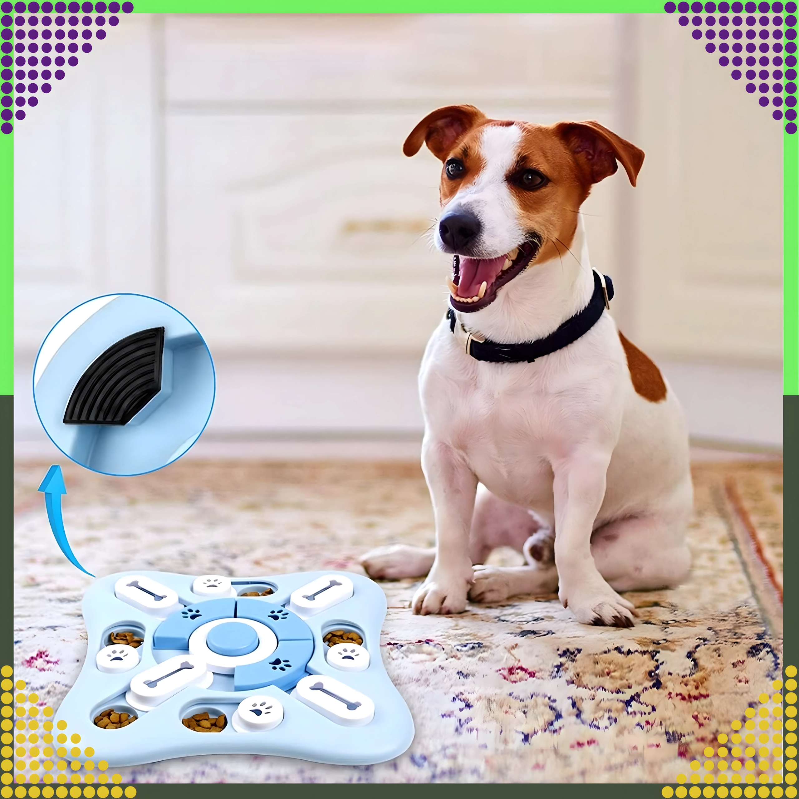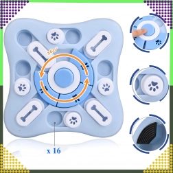 Interaktywna mata węchowa ze spowalniającą miską łączy zabawę i karmienie w jednym. Wystarczy ukryć smakołyki lub karmę w schowkach i pozwolić psu pracować nosem. Wspiera naturalne węszenie, inteligencję i stymulację mentalną, a jednocześnie spowalnia przyjmowanie pokarmu dla lepszego trawienia.