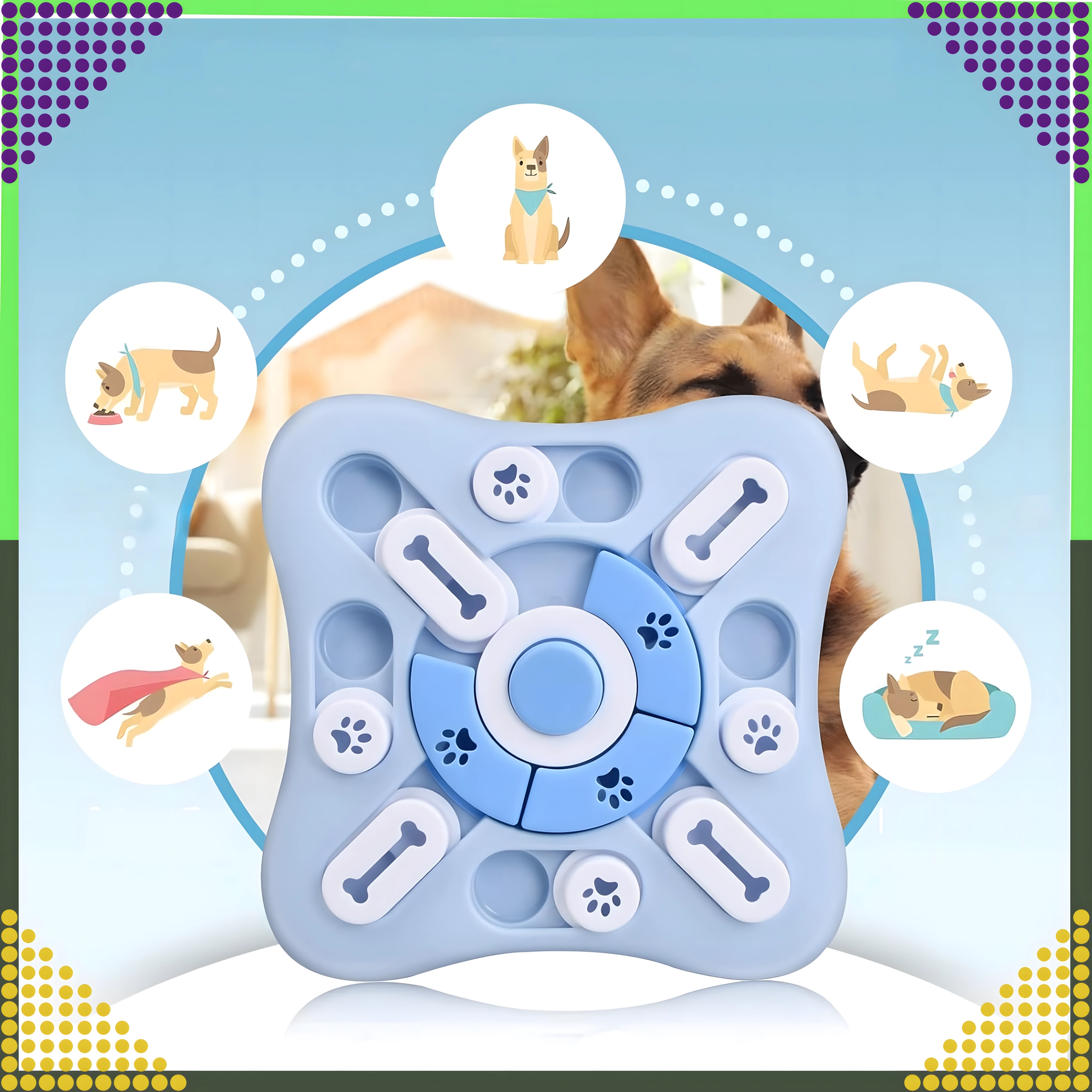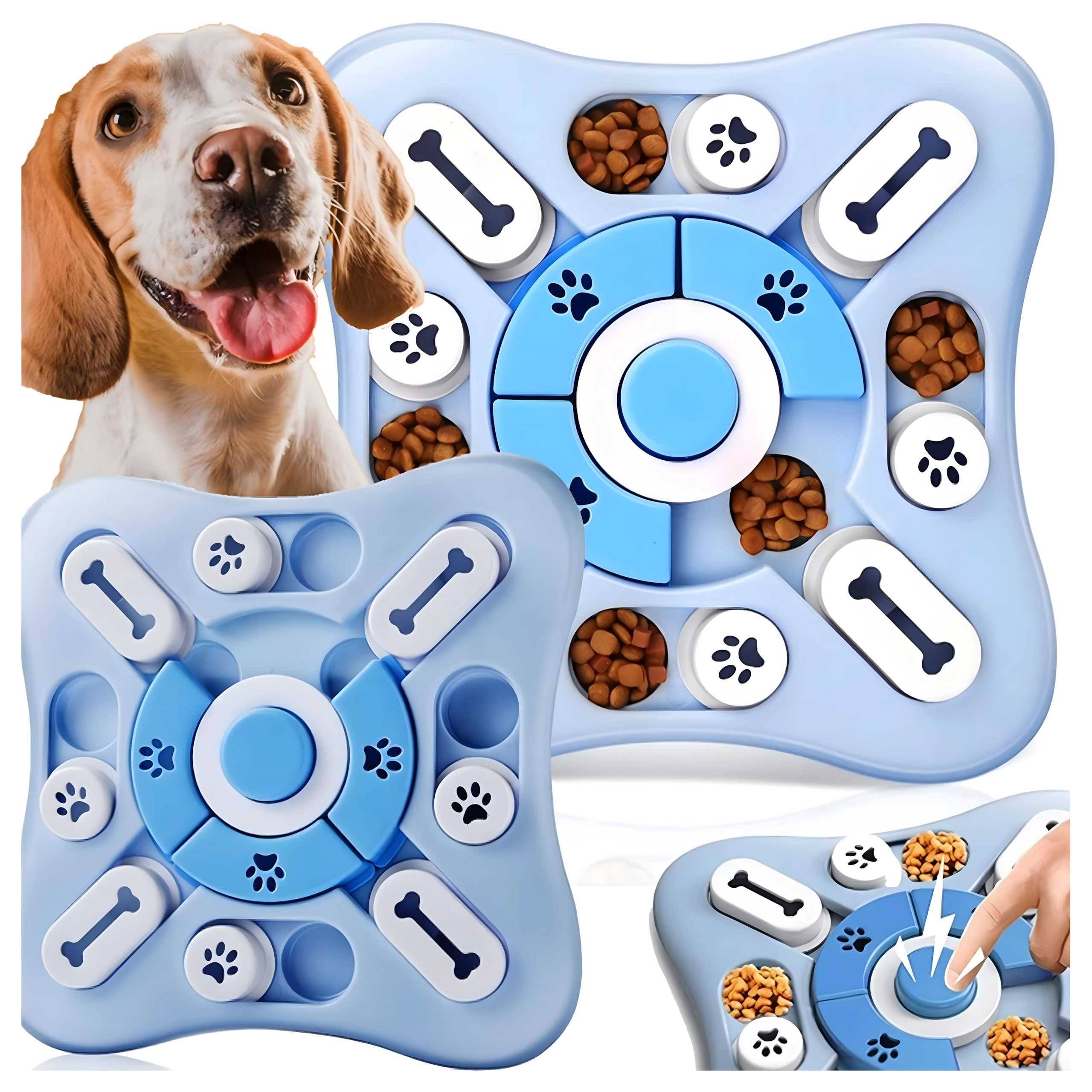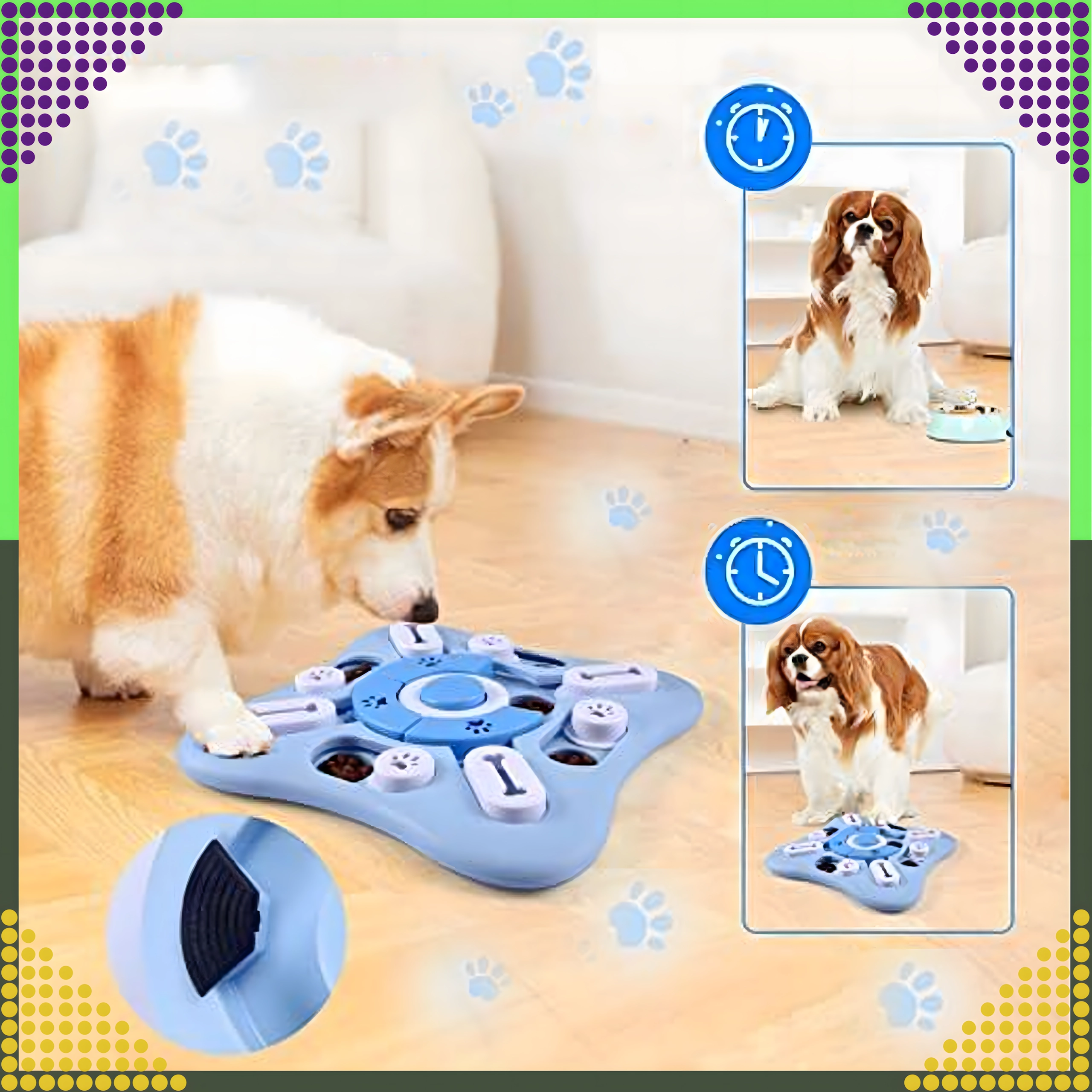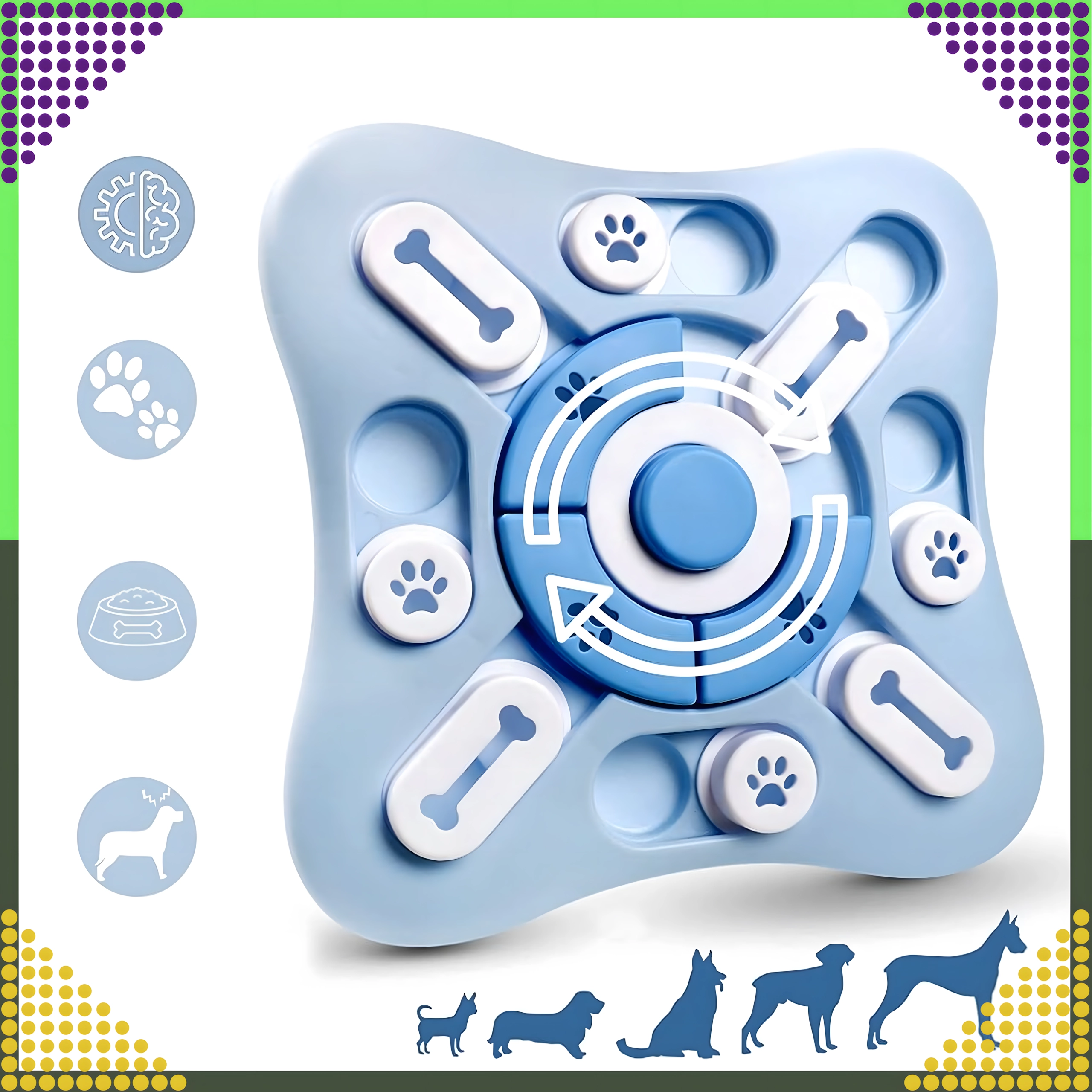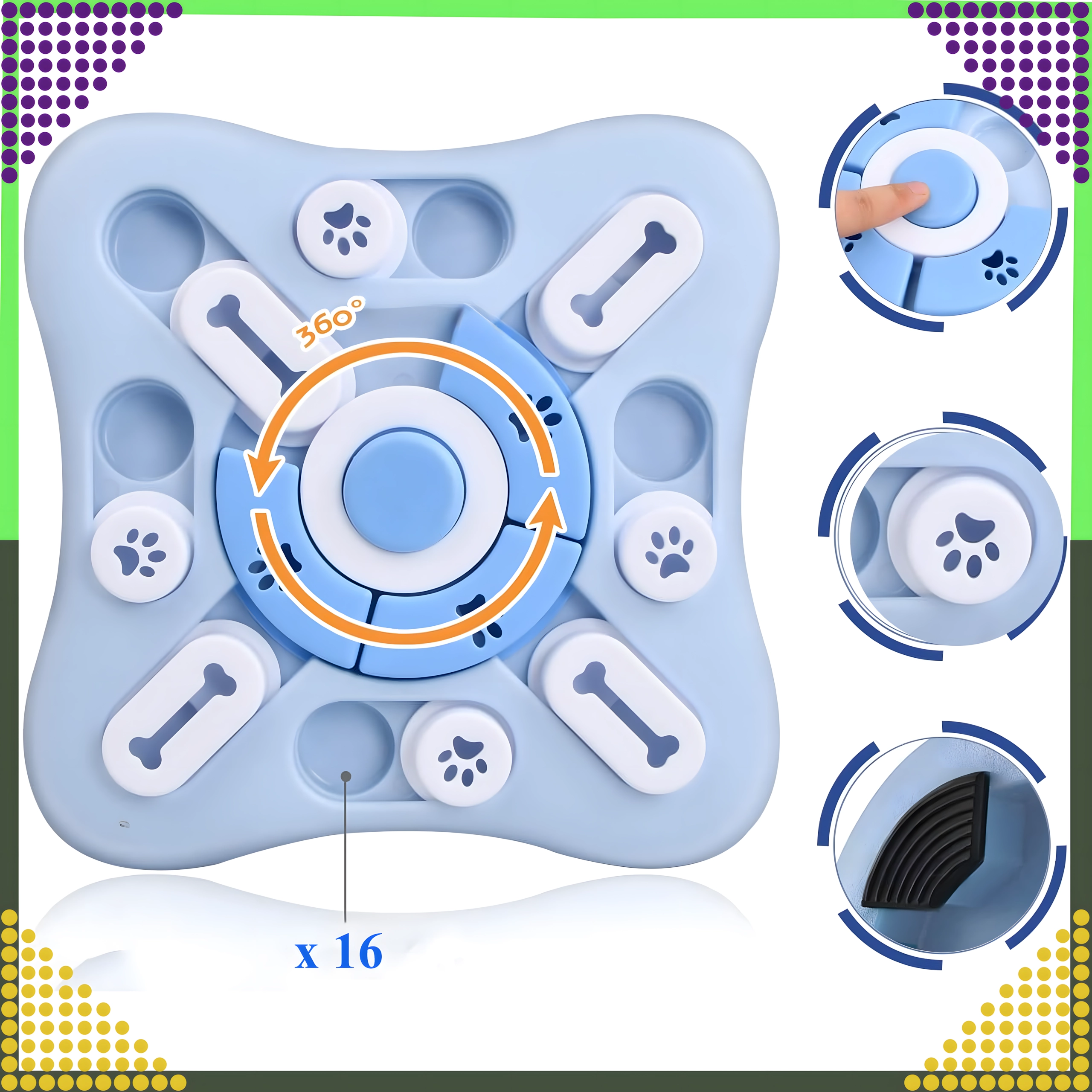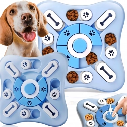 Dzięki przemyślanej konstrukcji z antypoślizgowymi nóżkami oraz łatwym czyszczeniem jest idealna do codziennego użytku. Centralne piszczałka zwiększa motywację do zabawy, a przesuwane schowki na smakołyki z motywami łapek i kości są intuicyjne do obsługi łapą.
