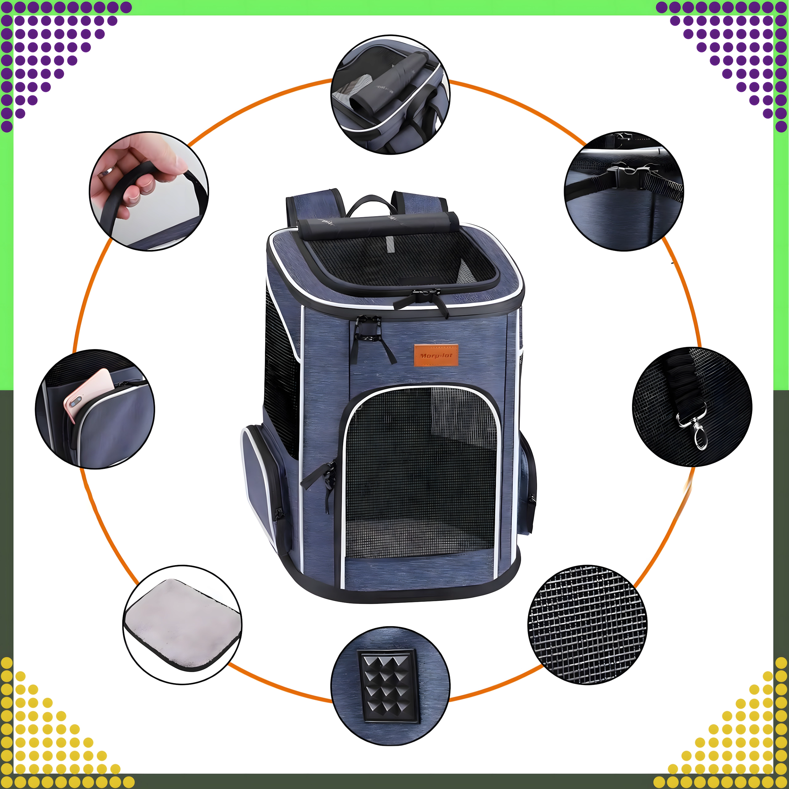 Zadbaj o komfort i bezpieczeństwo swojego pupila w podróży. Ten przestronny, lekki i dobrze wentylowany plecak-transporterek oferuje panele z siateczki dla cyrkulacji powietrza, ergonomiczne paski dla Twojej wygody oraz praktyczne kieszenie na drobiazgi. Idealny dla kotów i małych psów na wycieczki, do weterynarza i na krótsze trasy.