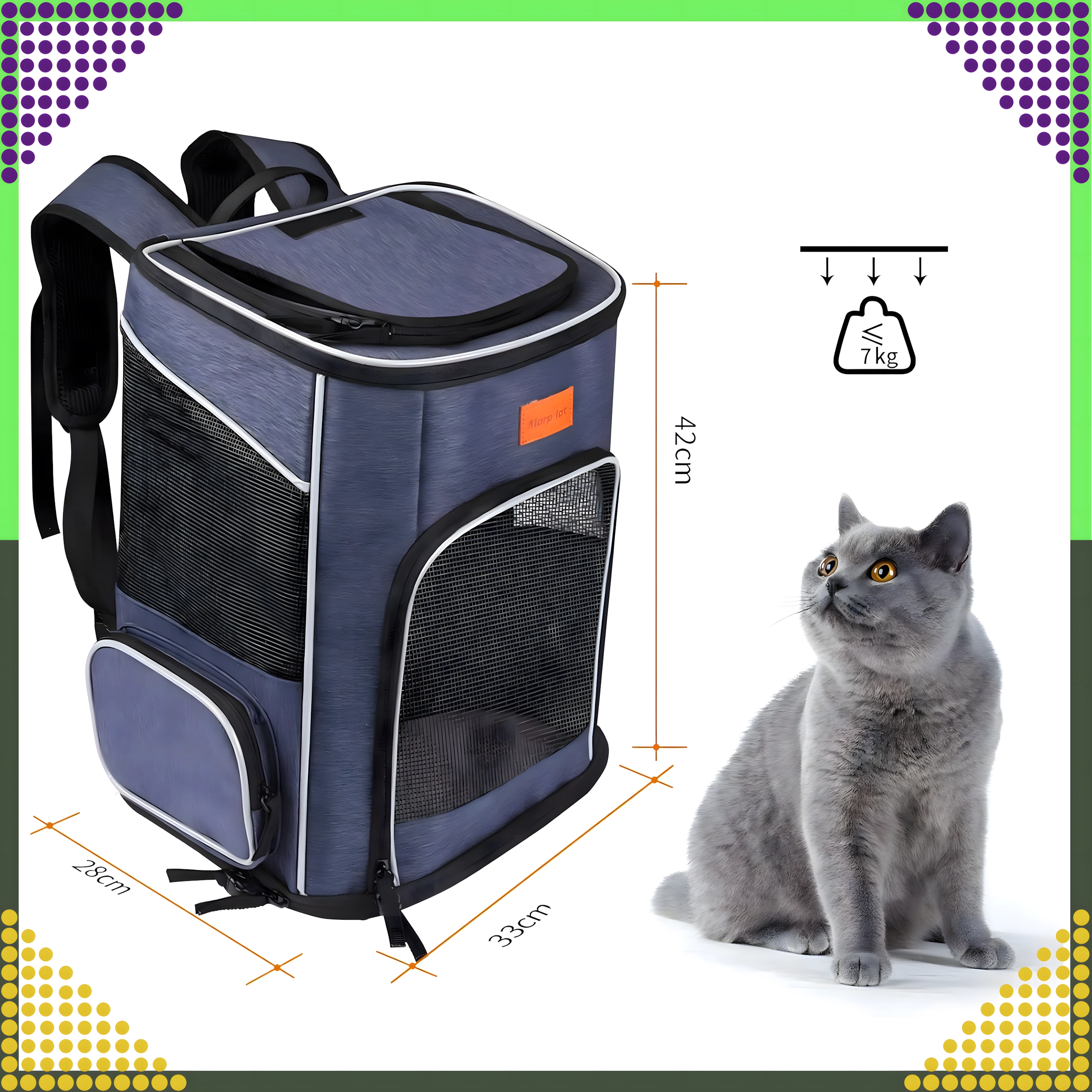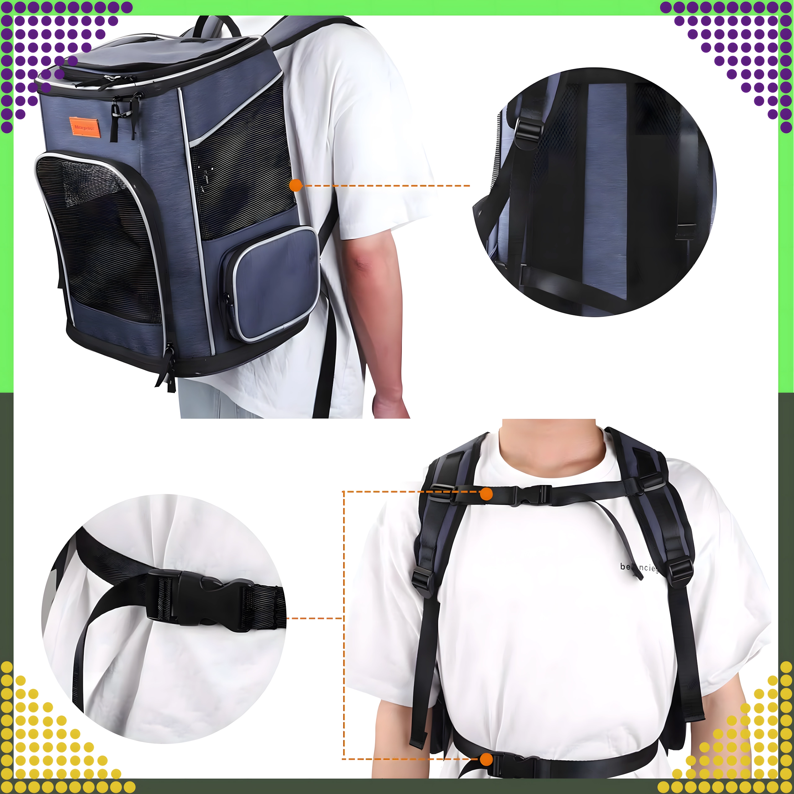 Nowoczesny plecak dla zwierząt domowych łączy trwałą konstrukcję z komfortem dla zwierzęcia i opiekuna. Dzięki oknom z siateczki pupil ma świetny widok i dostęp do świeżego powietrza, a regulowane szelki i pasek piersiowy zapewniają wygodne noszenie bez obciążania pleców.