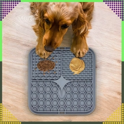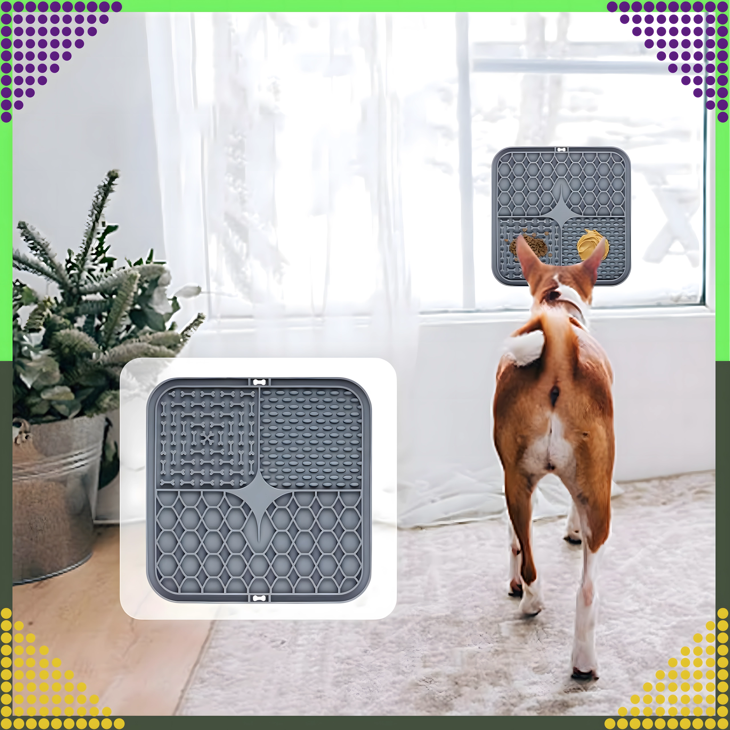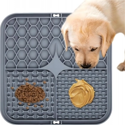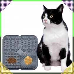 Tył z antypoślizgowymi przyssawkami trzyma matę pewnie na podłodze lub na powierzchni pionowej (np. w łazience podczas kąpieli). Mata wykonana jest z miękkiego, łatwego w czyszczeniu silikonu i idealnie nadaje się do spowalniania karmienia oraz jako odwrócenie uwagi podczas pielęgnacji sierści czy wizyty u weterynarza.