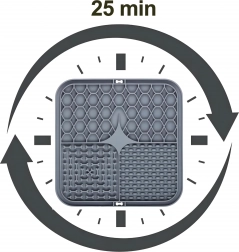 Wiele stref z wypukłym wzorem wspiera powolne wylizywanie, ogranicza łapczywość i naturalnie wspomaga higienę jamy ustnej poprzez delikatne czyszczenie języka.