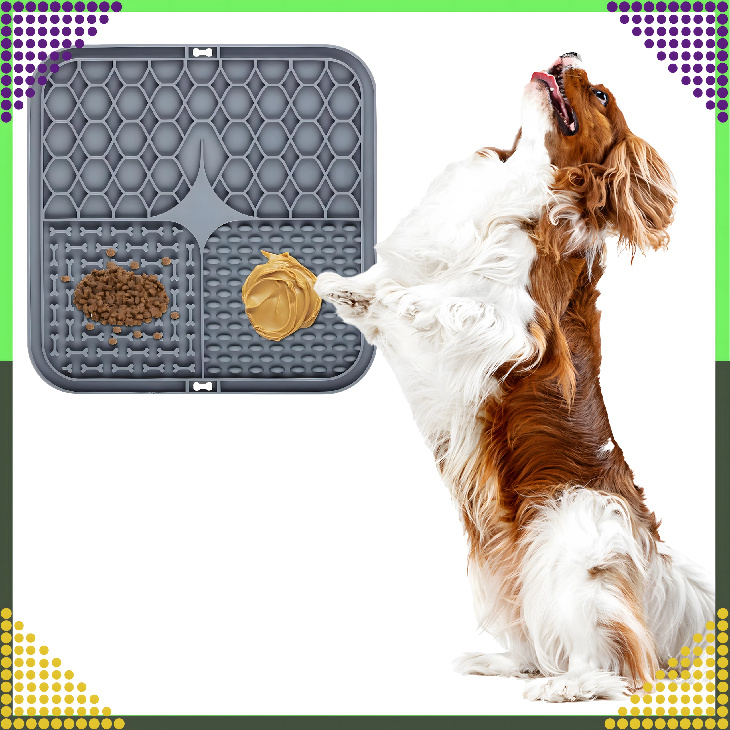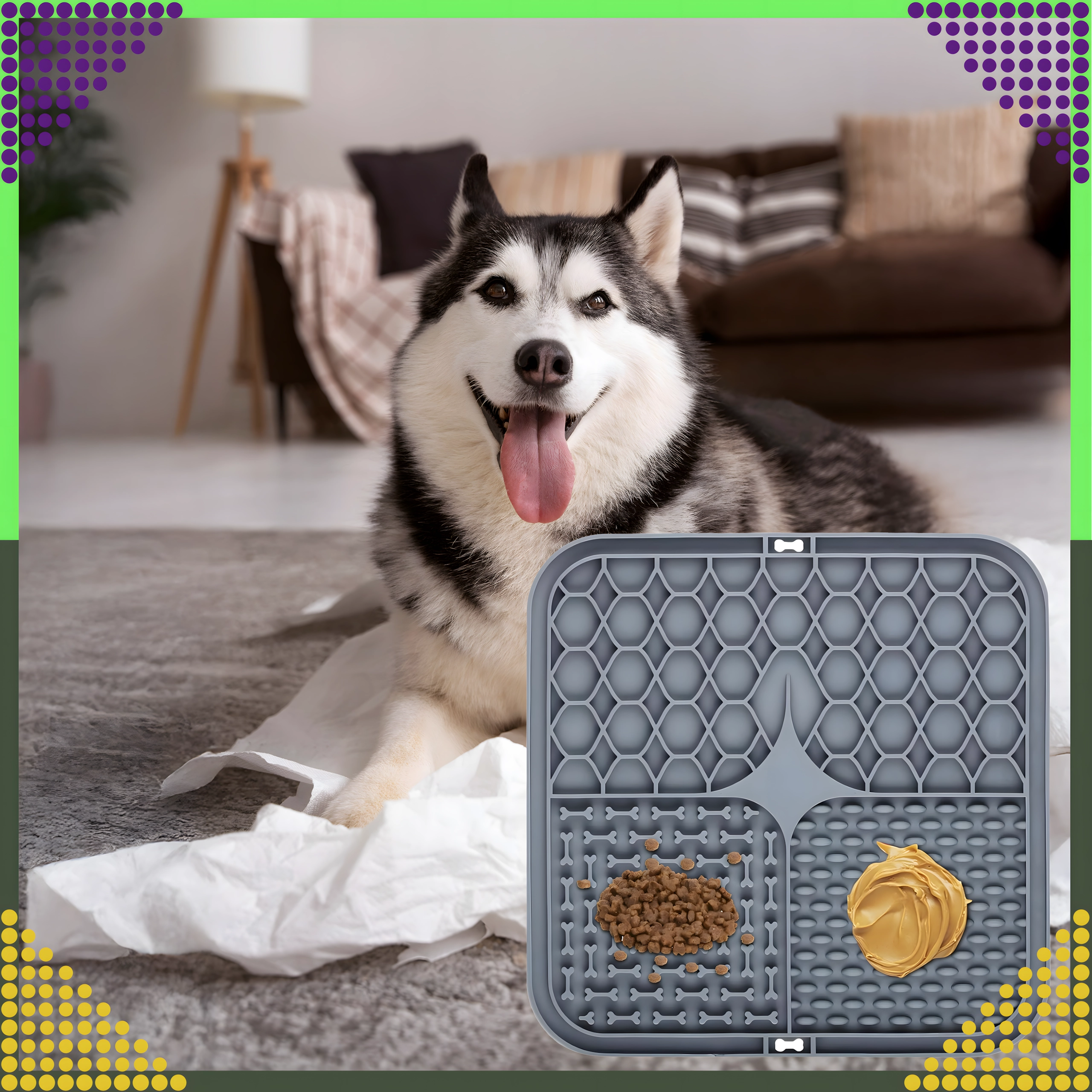 Praktyczna silikonowa mata do wylizywania dla psów i kotów spowalnia jedzenie, pomaga w redukcji stresu i wspiera higienę jamy ustnej. Dzięki różnym fakturom i przyssawkom z tyłu pozostaje stabilna i zapewnia zabawę. Spowalnia łapczywe jedzenie, zmniejsza lęk i czyści język przy codziennym użytkowaniu.
