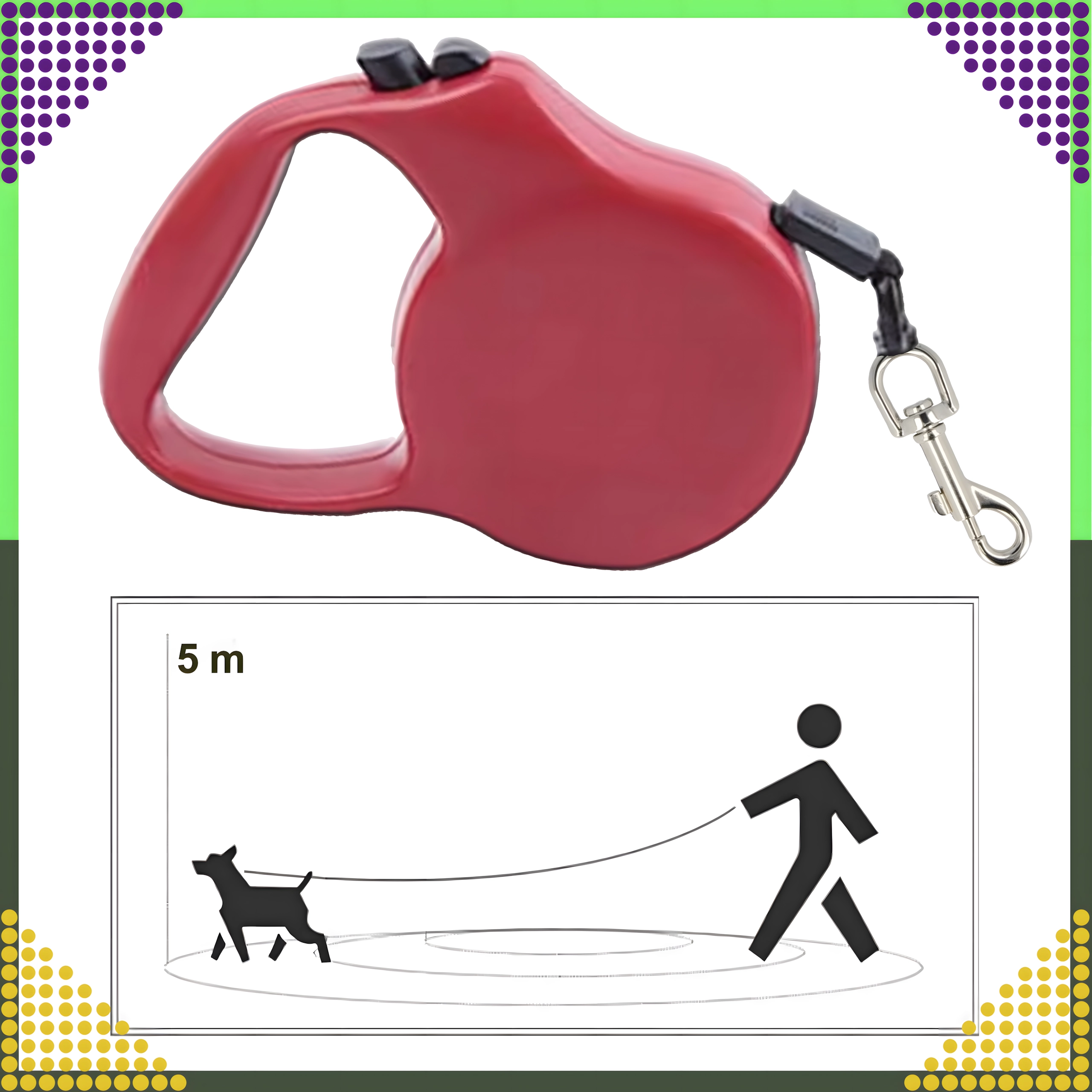 Delektuj się spokojnymi spacerami ze swoim pupilem dzięki smyczy, która łączy trwałą konstrukcję, płynny mechanizm zwijania oraz szybką blokadę. Metalowy karabińczyk z obrotowym mocowaniem 360° zapewnia bezpieczne przypięcie do kółka obroży i zapobiega skręcaniu taśmy.
