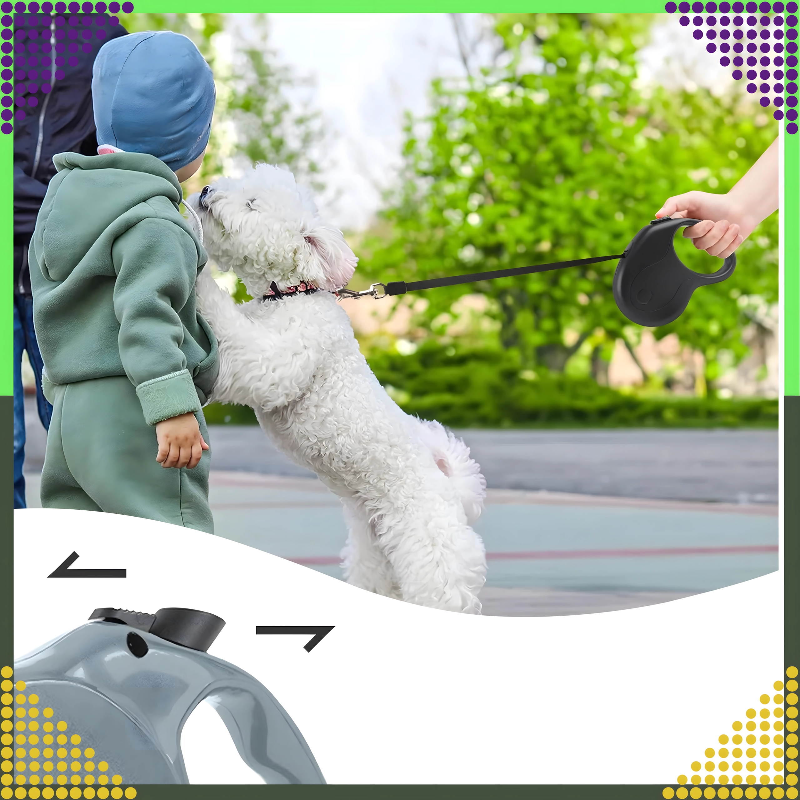 Mechanizm umożliwia łatwą regulację długości jednym kciukiem. Zatrzymaj, zablokuj i zwolnij smycz w sekundę, aby zapewnić bezpieczny spacer w mieście i w parku.