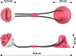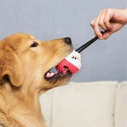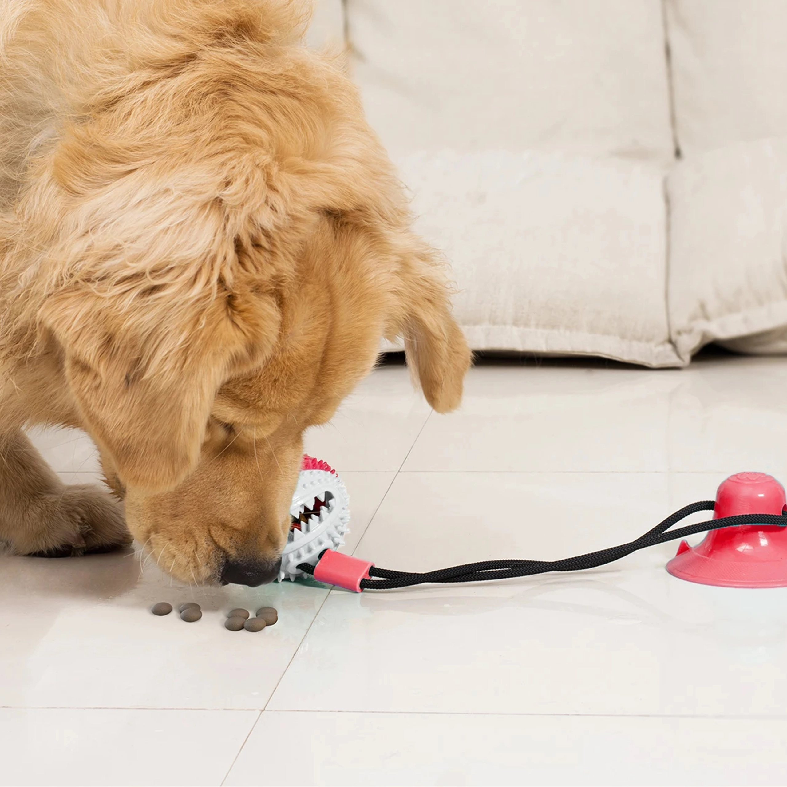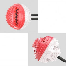 Interaktywna piłka z przyssawką zajmie Twojego psa przeciąganiem, gryzieniem i polowaniem na smakołyki. Dzięki wytrzymałej linie i mocnej przyssawce zabawkę można przymocować do gładkich powierzchni, aby pies mógł bezpiecznie ciągnąć i próbować uwolnić piłkę. Teksturowane gumowe wypustki podczas zabawy mechanicznie czyszczą zęby i delikatnie masują dziąsła, co wspiera higienę jamy ustnej.
