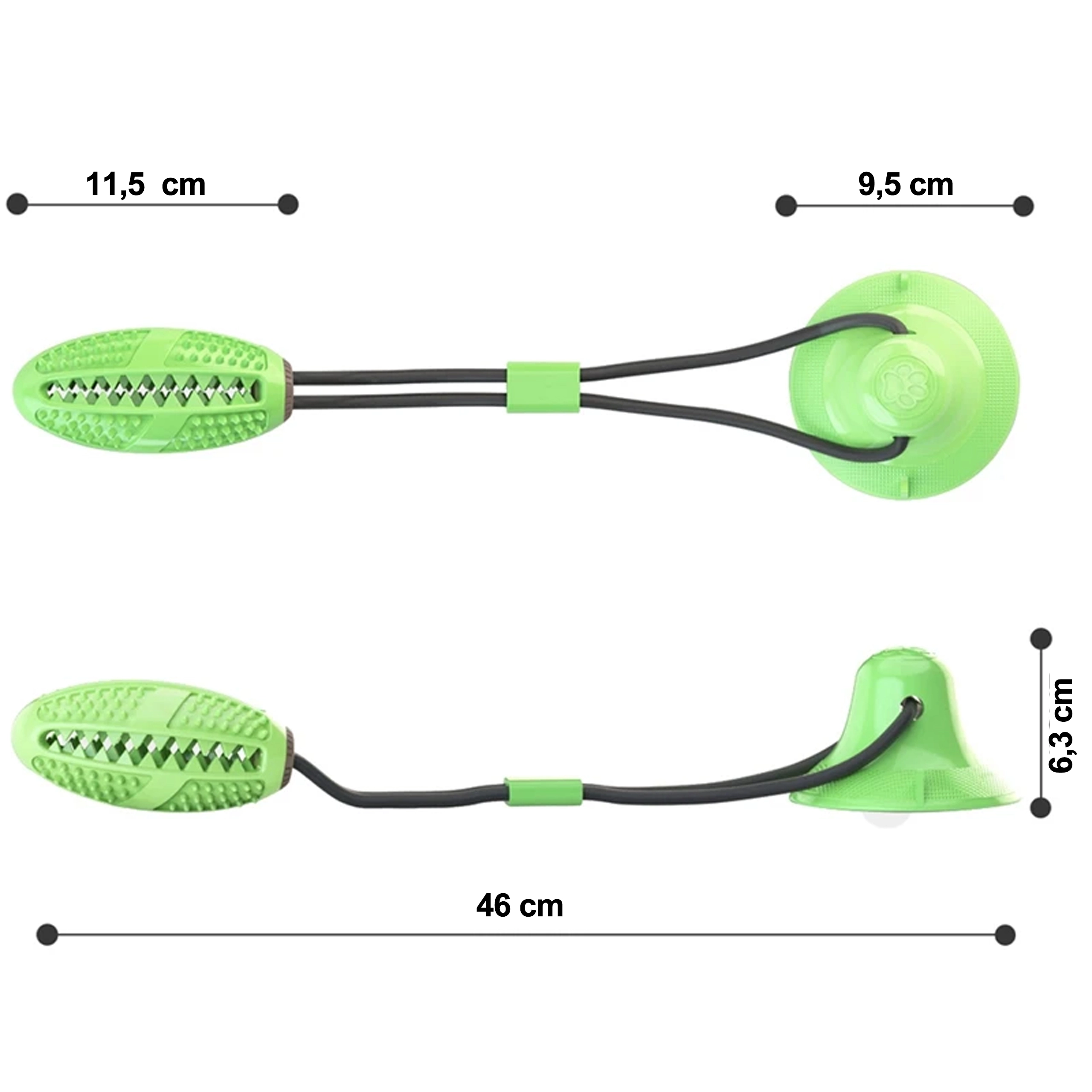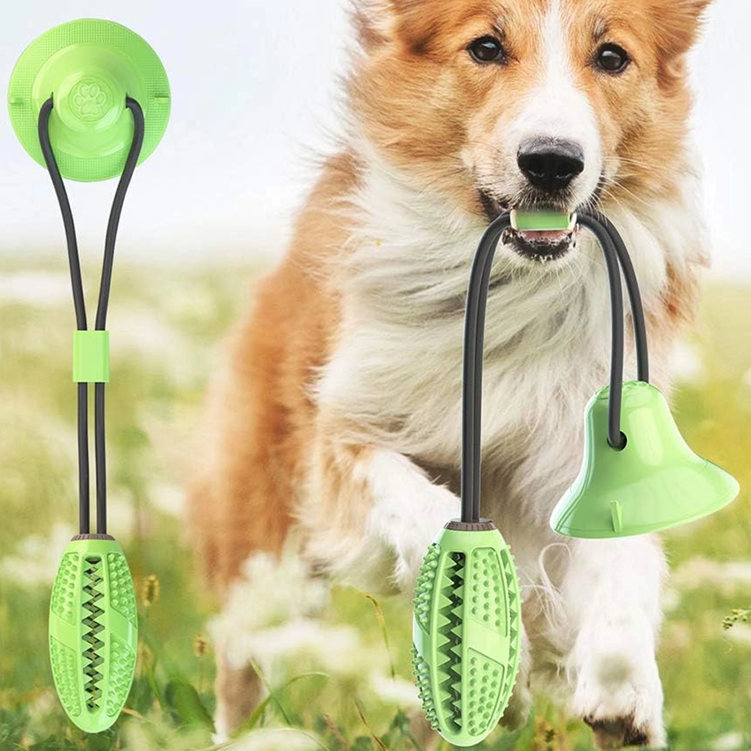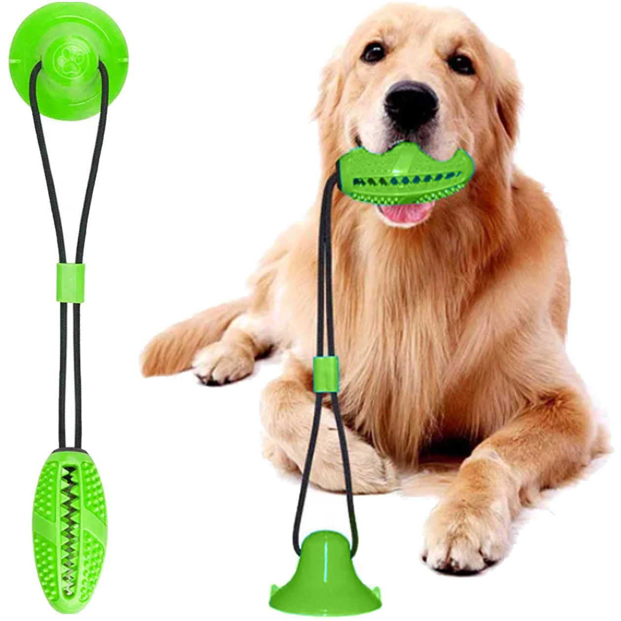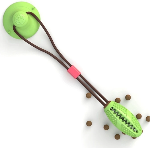 Interaktywna zabawka do żucia z przyssawką została zaprojektowana z myślą o naturalnej potrzebie gryzienia oraz stymulacji mentalnej psa. Mocna przyssawka trzyma się gładkich powierzchni i umożliwia psu samodzielne przeciąganie i ciągnięcie, a wytrzymała lina i elastyczne łączenie zapewniają bezpieczną i długotrwałą zabawę. Teksturowana powierzchnia z kolcami i żebrowaniem podczas żucia czyści zęby, masuje dziąsła i pomaga redukować kamień nazębny.