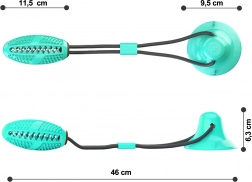 Silna przyssawka mocno trzyma się gładkich powierzchni, dzięki czemu pies może samodzielnie przeciągać, żuć i bawić się bez asysty. Świetny wybór dla rozładowania energii psychicznej i fizycznej.