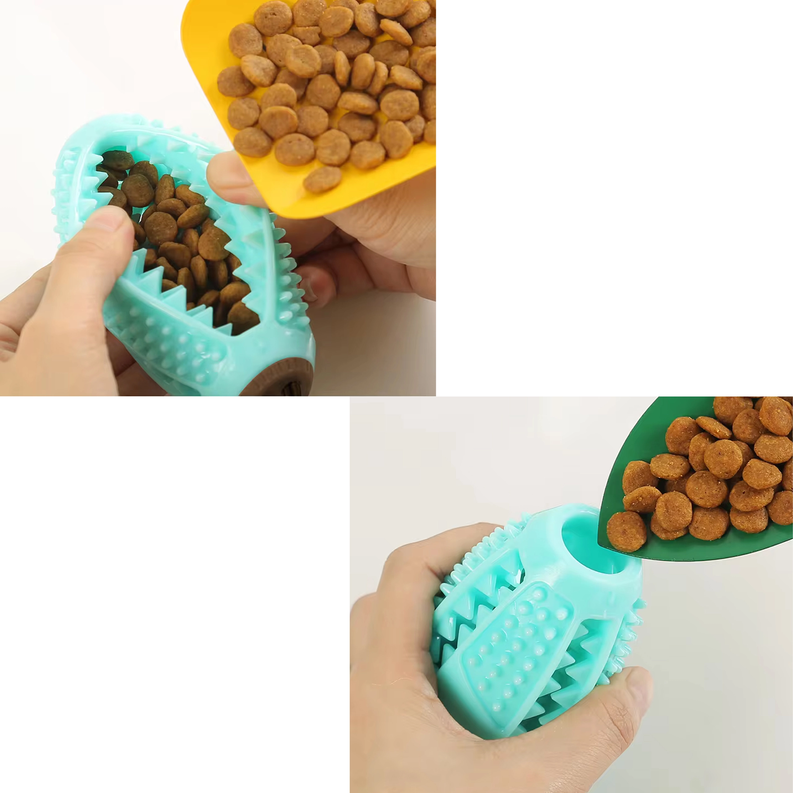 Otwory na karmę i smakołyki nagradzają każde przeżucie. Zabawka wspiera wolniejsze przyjmowanie pokarmu i ogranicza łapczywe jedzenie.
