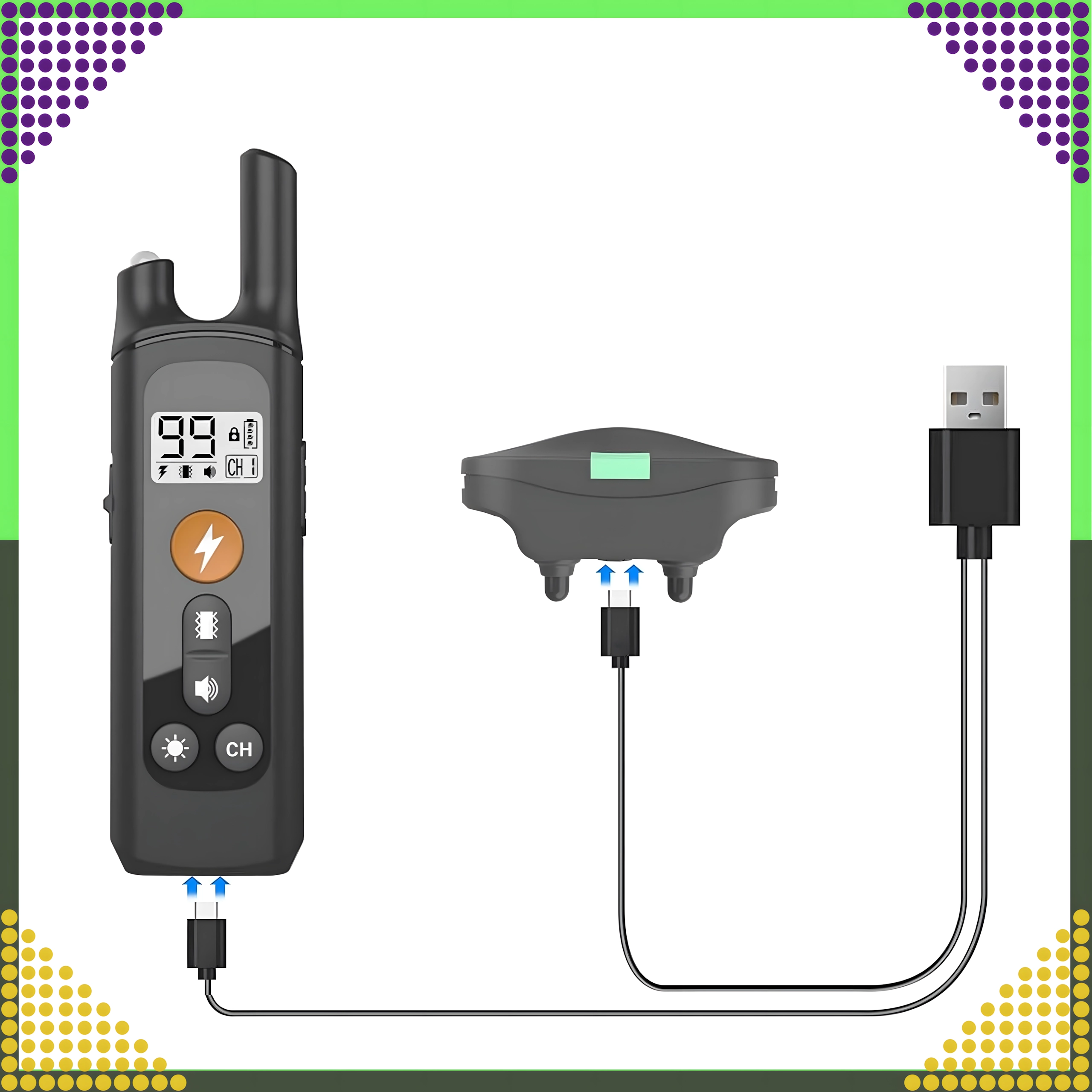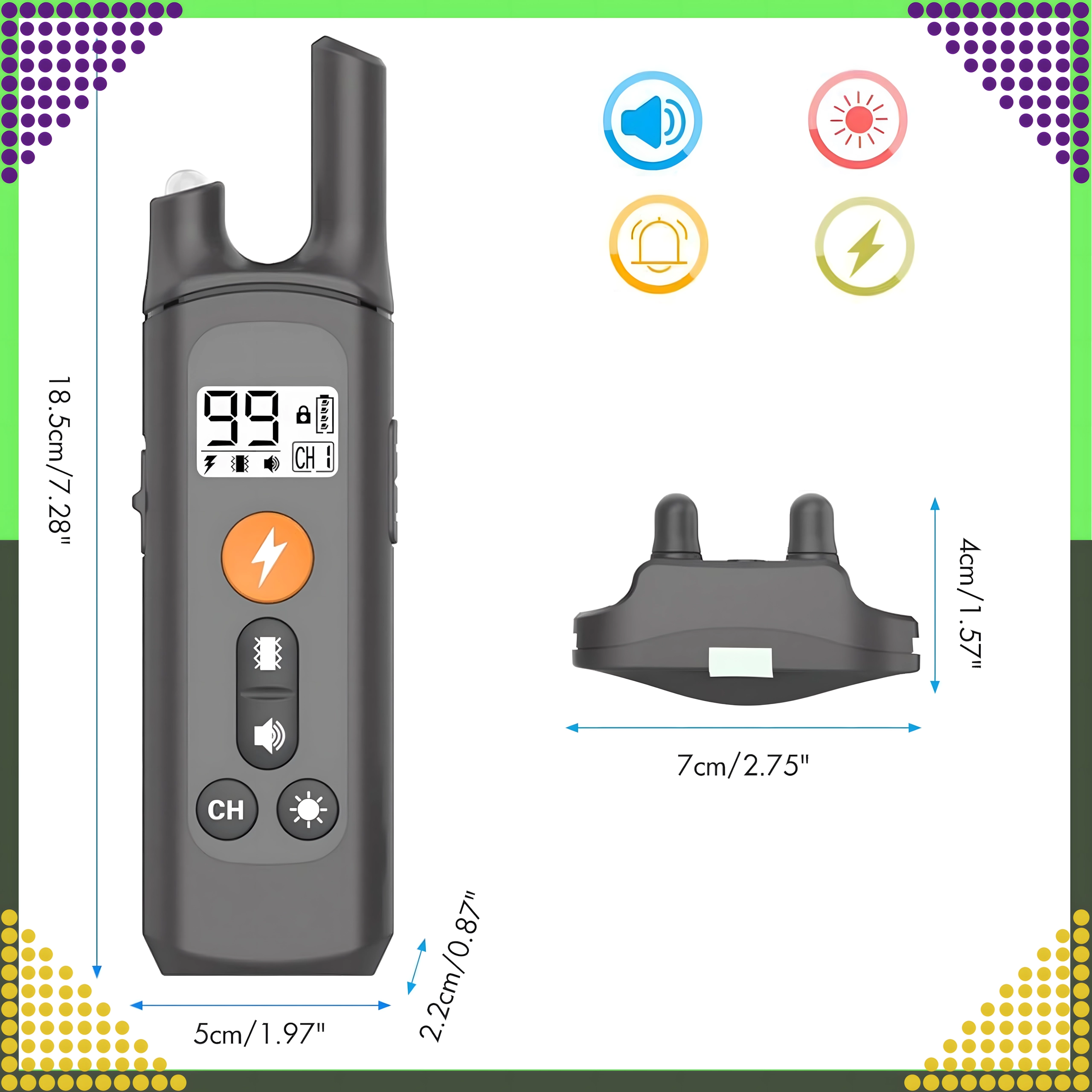 Wydajna obroża treningowa dla psów o zasięgu aż do 800 m oferuje bezpieczne i skuteczne szkolenie posłuszeństwa. W zestawie znajduje się pilot z wbudowaną latarką LED do użytku w dzień i w nocy, cztery tryby treningowe (impuls, wibracje, światło, dźwięk), wodoodporna konstrukcja oraz akumulator do ładowania.