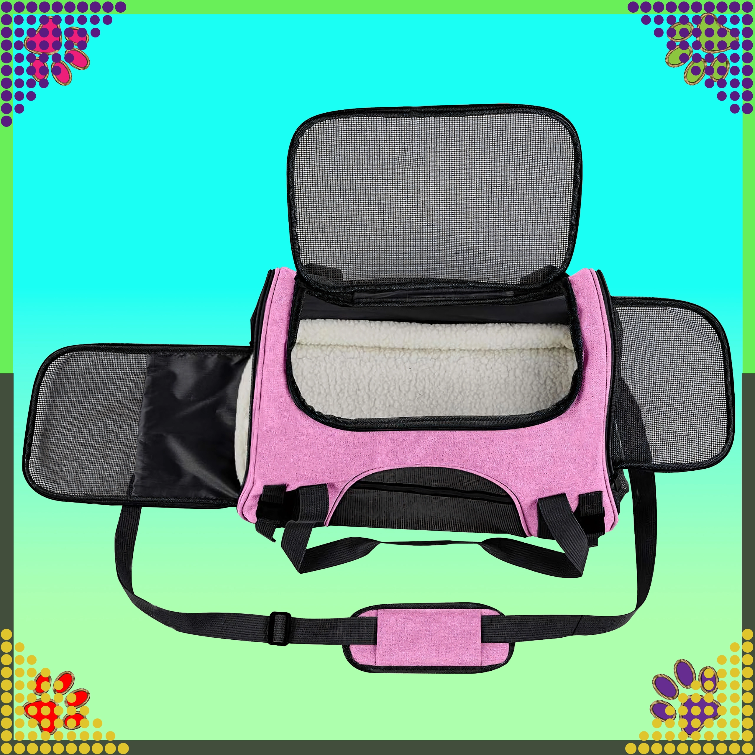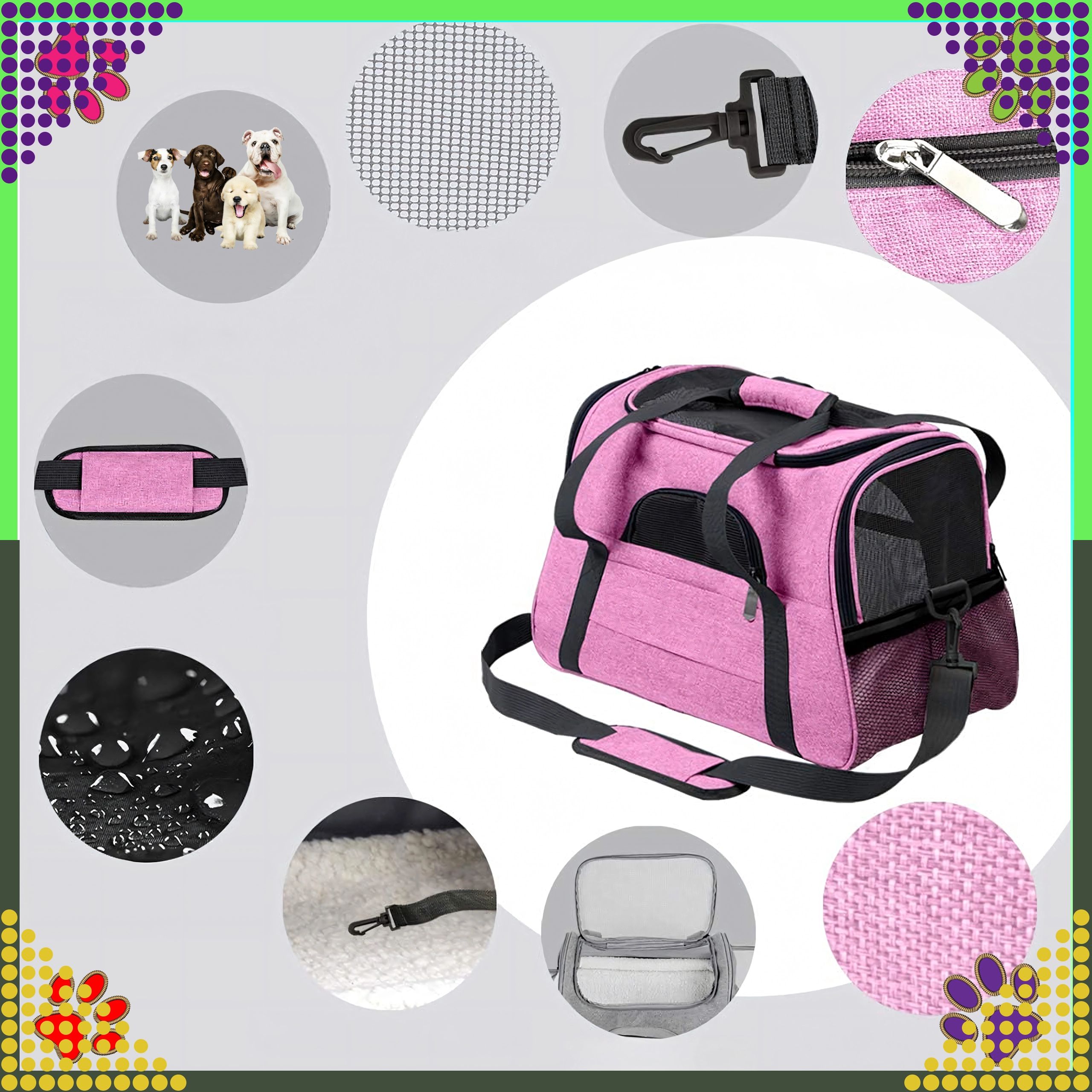 Praktyczna przenośna torba dla zwierząt łączy komfort, bezpieczeństwo i łatwą pielęgnację. Dzięki wysokiej jakości poliestrowi jest odporna na plamy i uszkodzenia, nie pochłania nieprzyjemnych zapachów i zachowuje wygląd nawet przy częstym użytkowaniu. Różowe wykończenie ucieszy miłośników stylu i zapewni zwierzęciu spokojne schronienie podczas podróży.