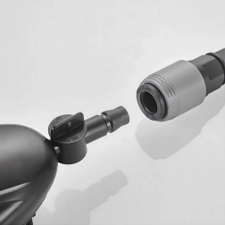 Lekki system zbiornikowy z zintegrowaną rączką i szybkozłączkami zapewnia wygodne użycie na zewnątrz i w podróży, bez potrzeby zasilania.