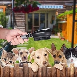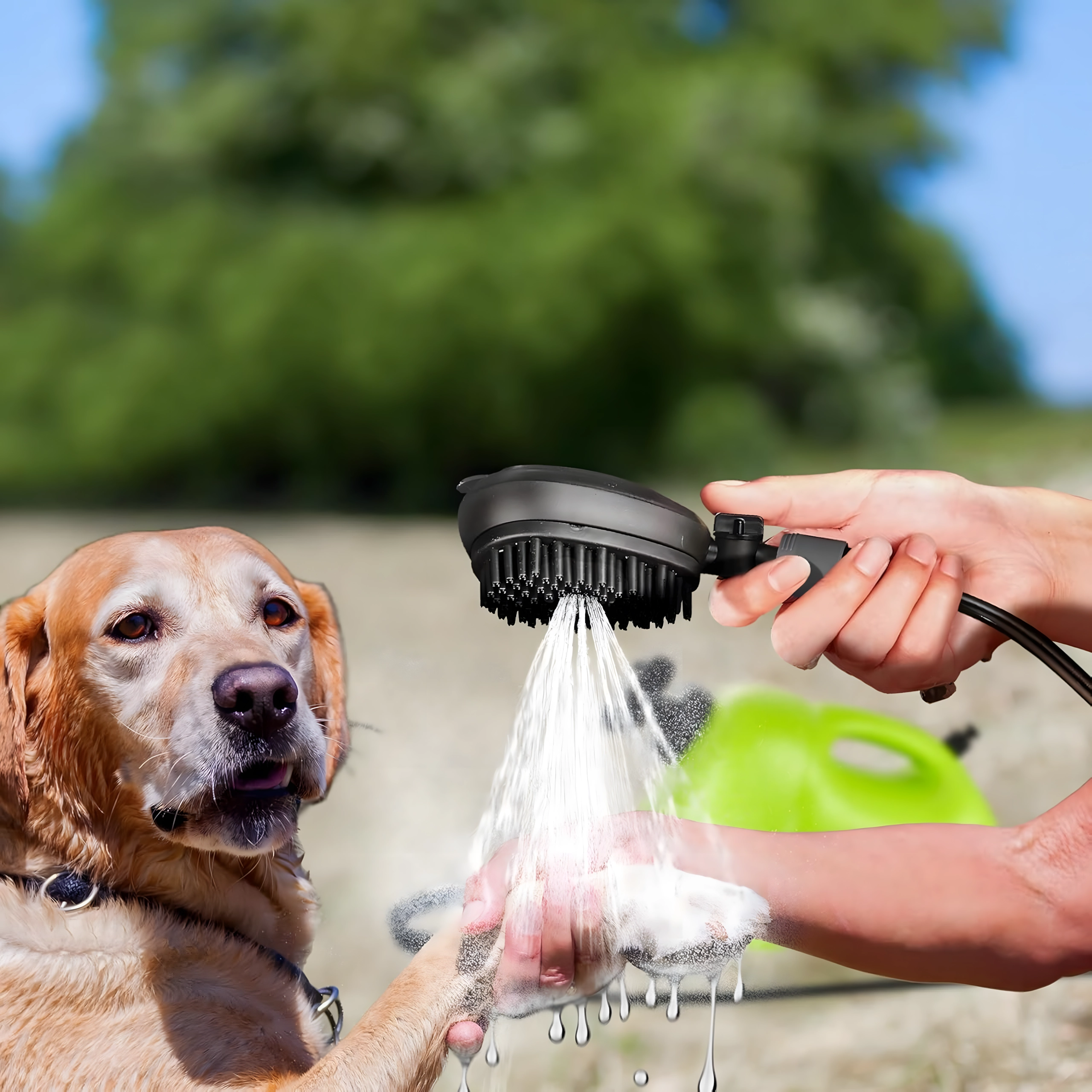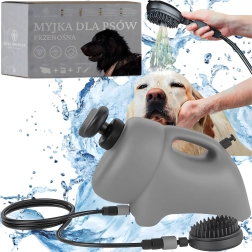 - Przenośna myjka dla zwierząt domowych z prysznicową szczotką 2 w 1
