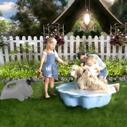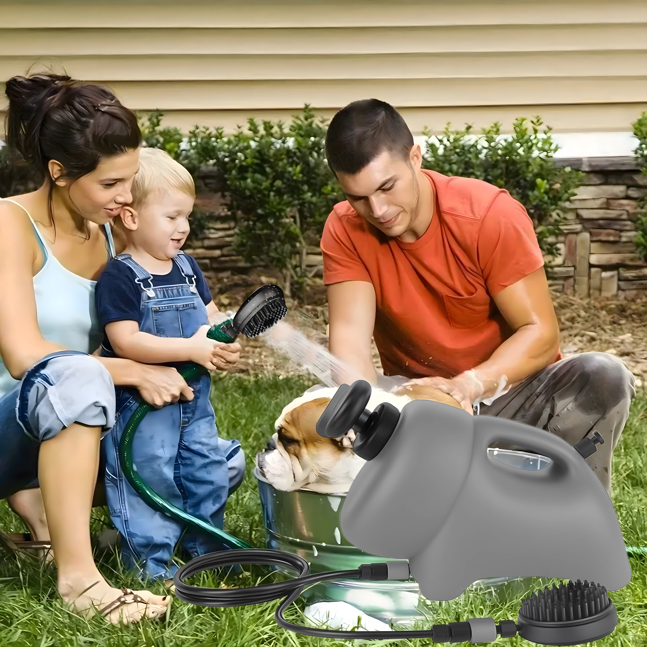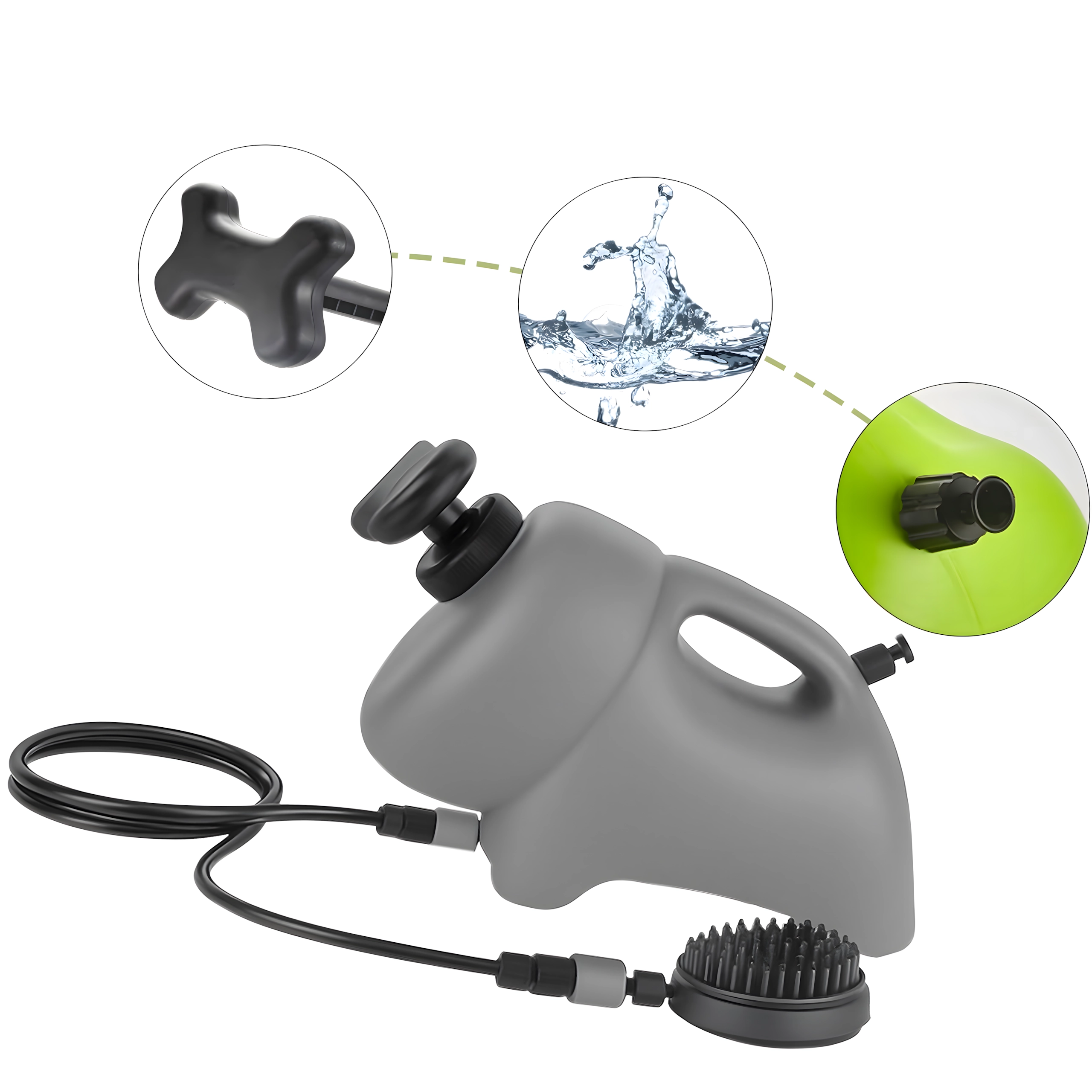 Praktyczna i cicha przenośna myjka o pojemności 8 l do łatwego kąpania psów i kotów w domu i na zewnątrz. Łączy prysznic i szczotkę masującą 2 w 1, ma długi wąż dla wygodnego zasięgu i nie wymaga zasilania elektrycznego. Zbiornik utrzymuje ciepłą wodę do 2,5 godziny, dzięki czemu idealnie sprawdza się także w chłodniejsze dni.