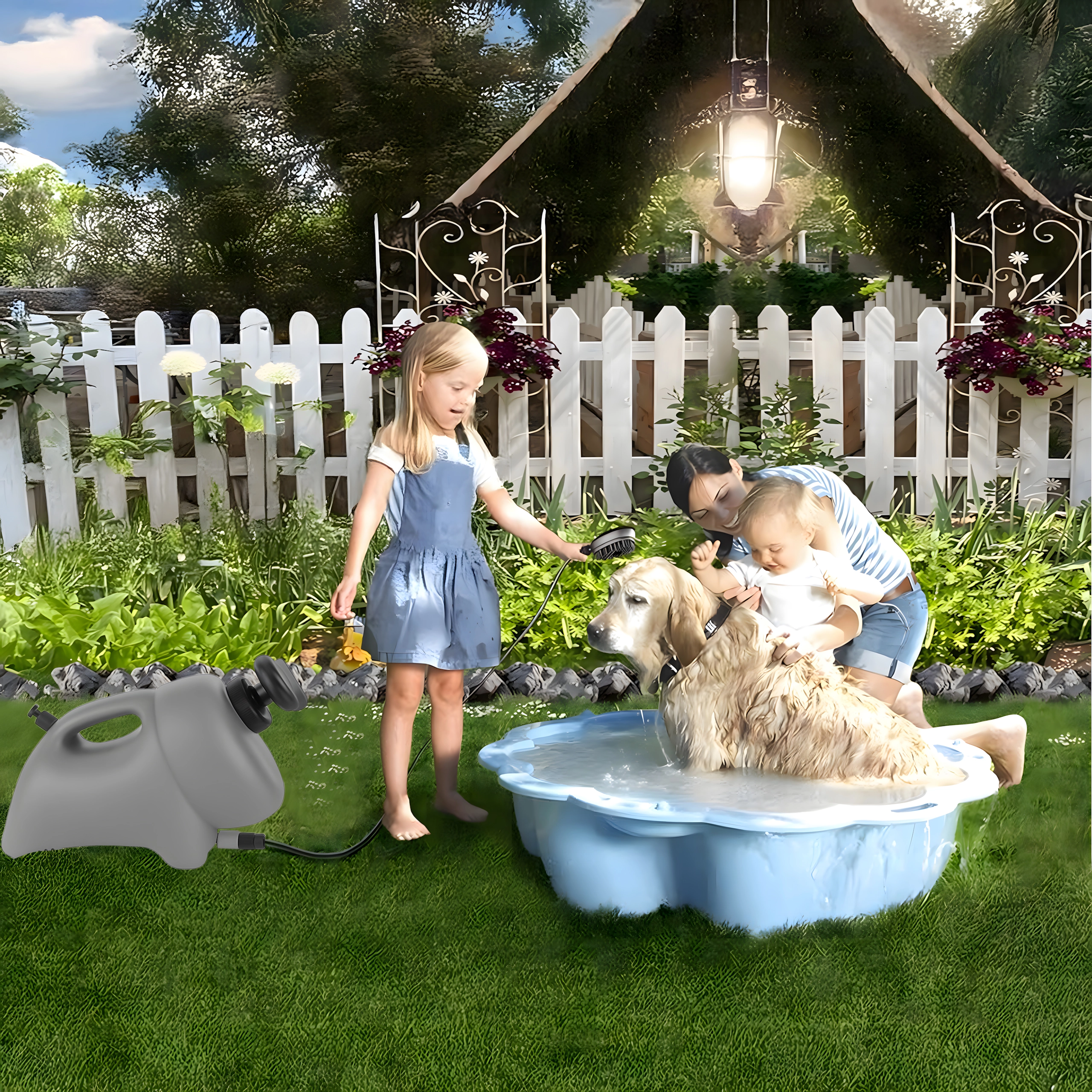 Ciesz się czystością i komfortem w dowolnym miejscu – przenośna myjka o pojemności 8 l jest świetna do higieny zwierząt domowych, ale także do szybkiego opłukiwania rowerów, butów czy wózków. Dzięki zintegrowanemu prysznicowi z miękkim włosiem delikatnie myje i jednocześnie wyczesuje sierść, skracając czas kąpieli i oszczędzając wodę.