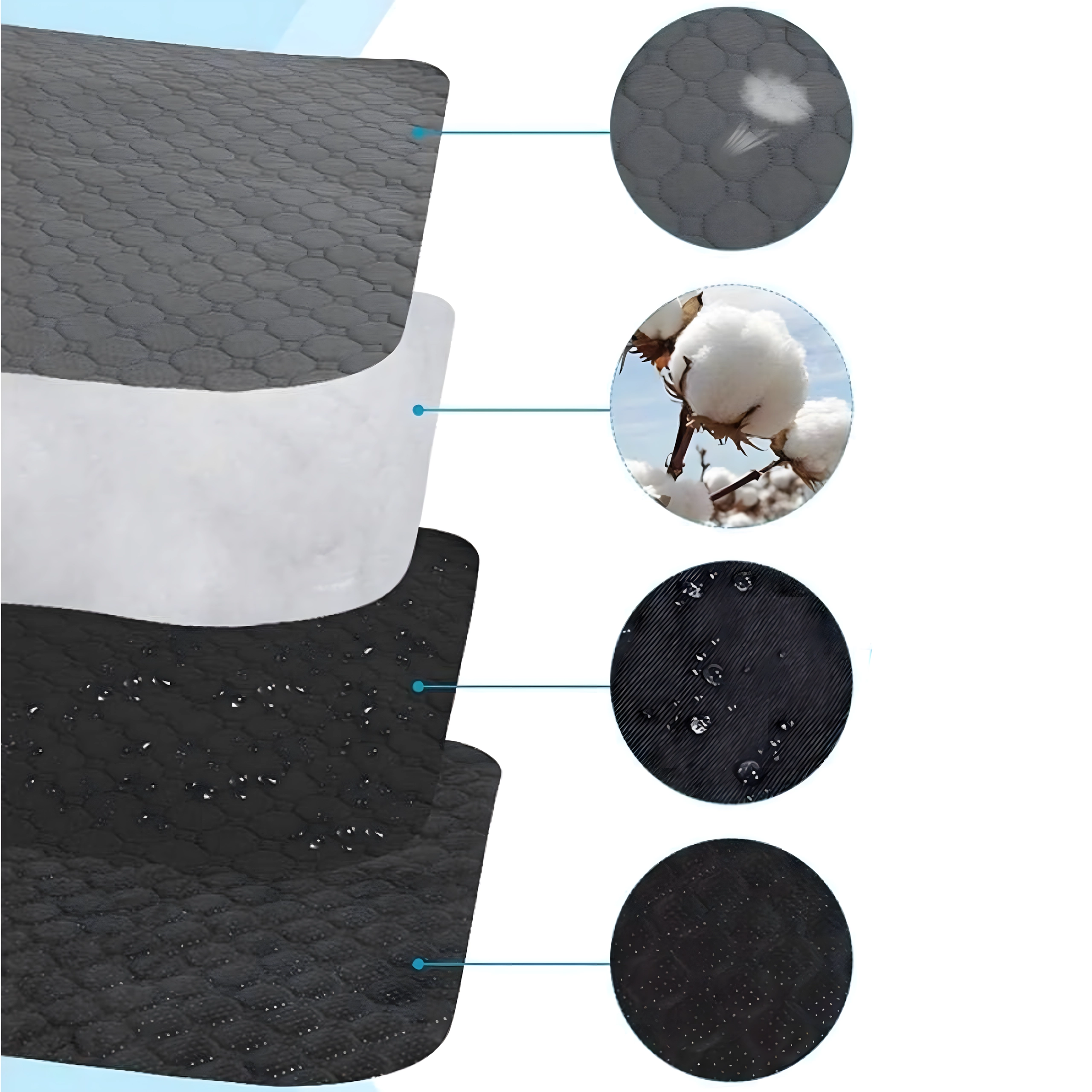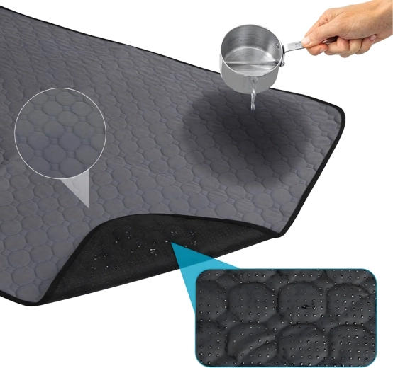 Wielorazowa mata dla psów i kotów łączy komfort, higienę oraz ochronę podłóg i mebli. Wielowarstwowa konstrukcja szybko pochłania wilgoć i nie przepuszcza jej na powierzchnię podłogi, a miękki wierzchni materiał jest przyjemny do leżenia i codziennego użytkowania.