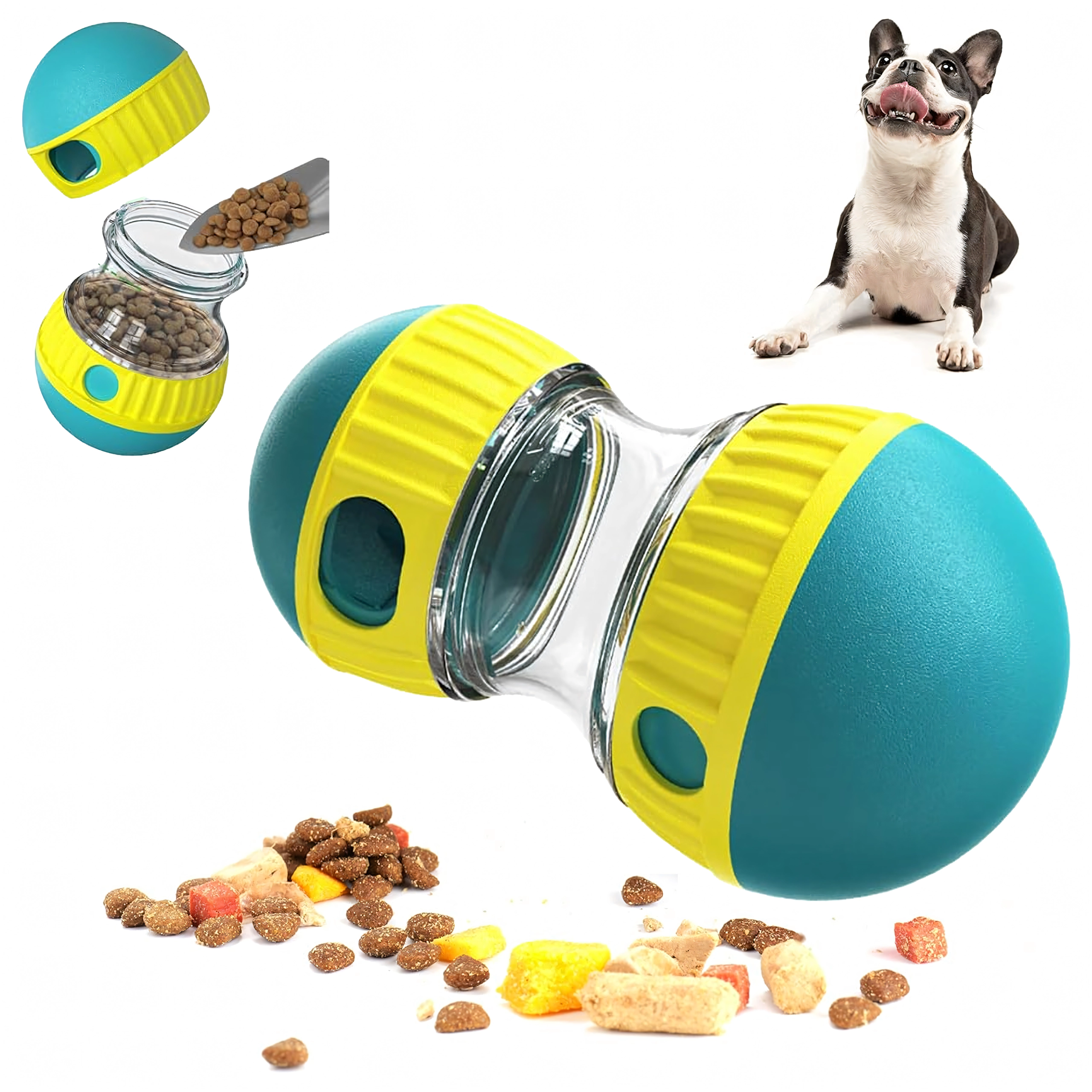 Sprytna zabawa i karmienie w jednym. Przezroczysta komora pozwala obserwować granulki w środku, regulowane otwory stopniowo uwalniają smakołyki, a pies jest motywowany do turlania zabawki i szturchania jej łapą lub nosem. Dzięki wolniejszemu dozowaniu wspiera prawidłowe trawienie i ogranicza łapczywe jedzenie.