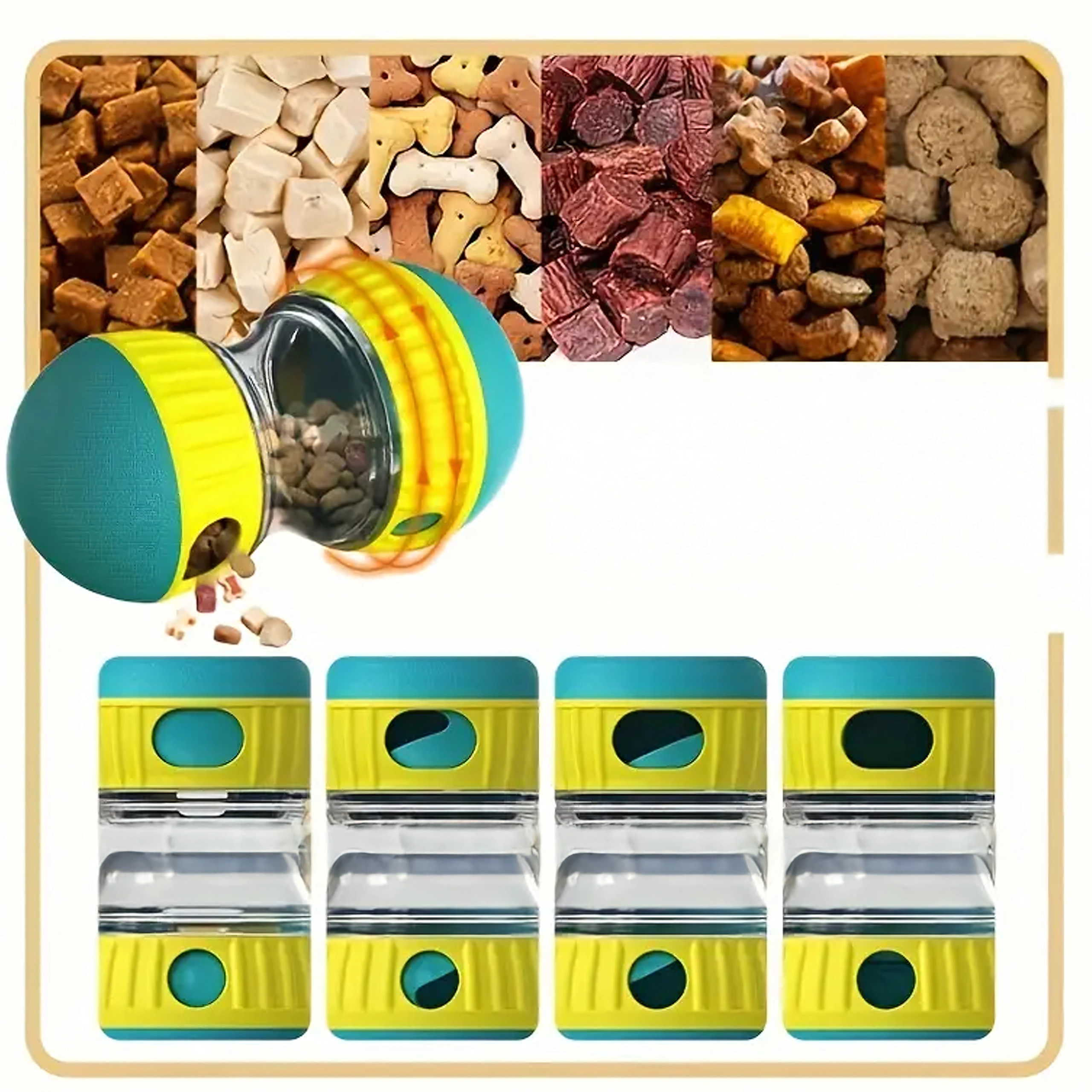 Idealny do suchych granulek i małych smakołyków. Dostosuj wielkość otworów do rozmiaru karmy i poziomu trudności. Świetny do codziennego treningu, urozmaicenia rutyny żywieniowej i zmniejszenia nudy.