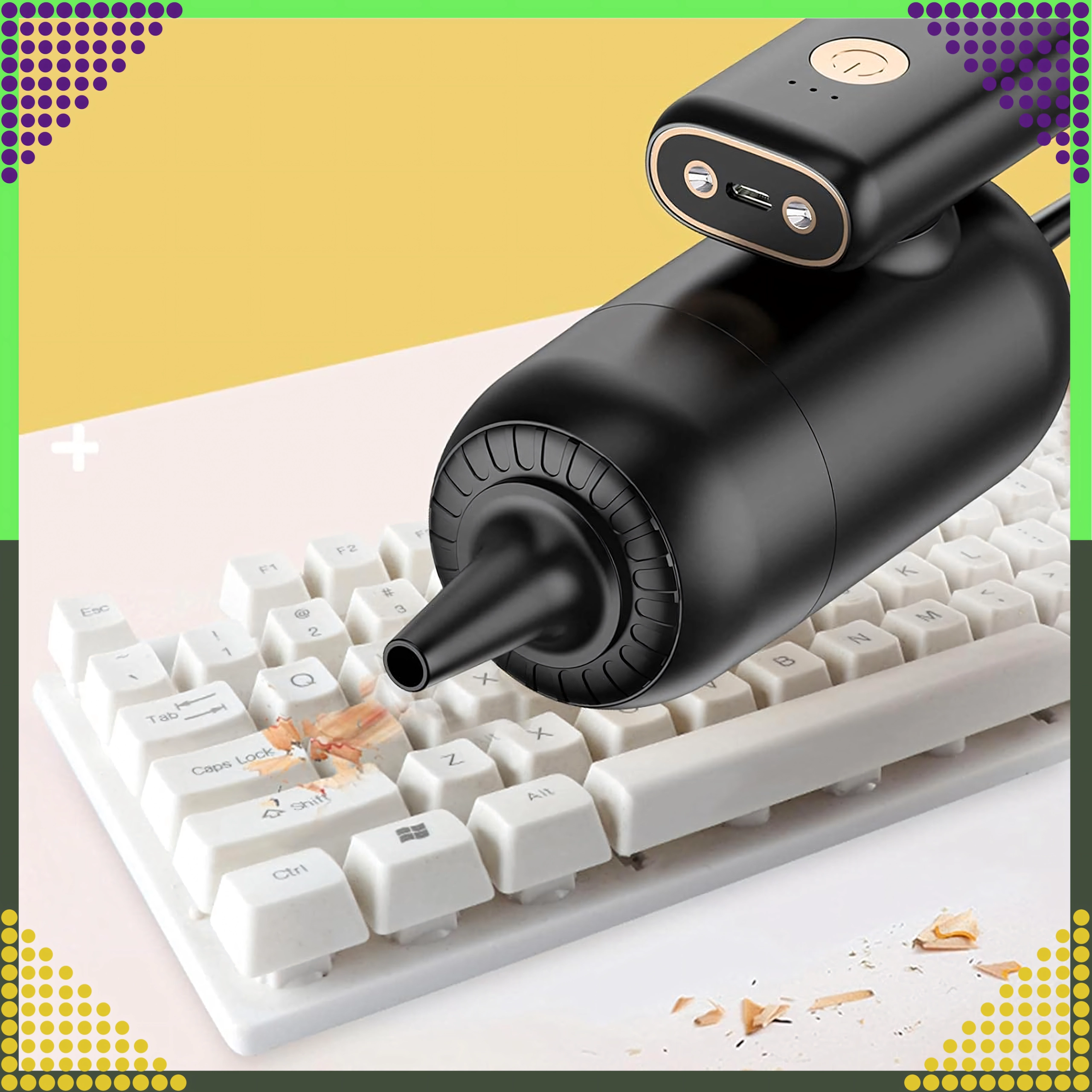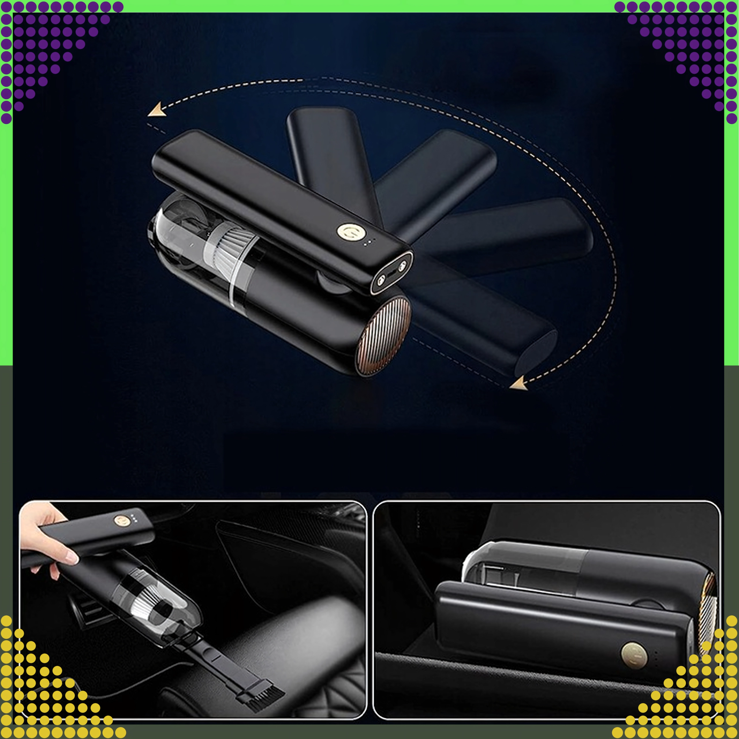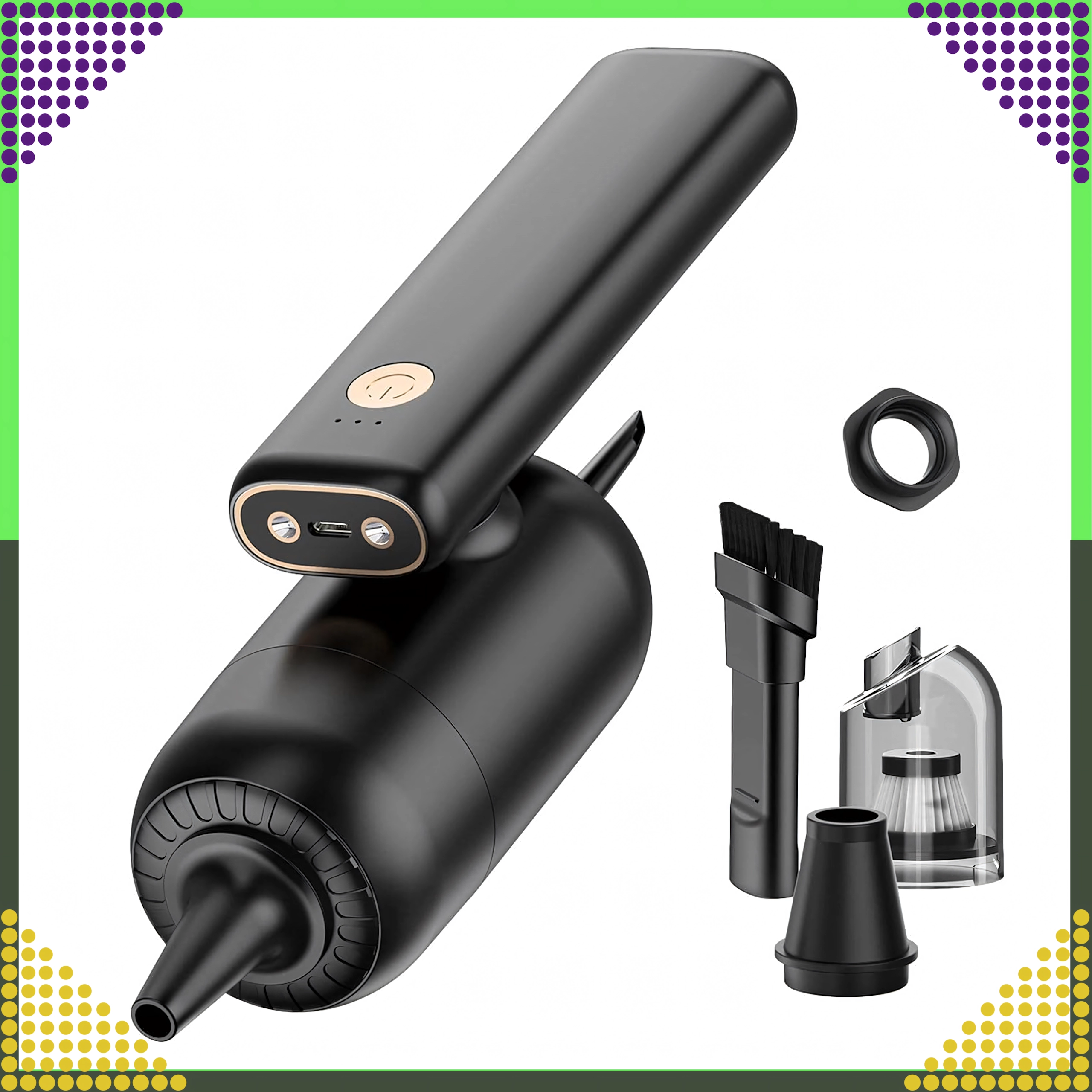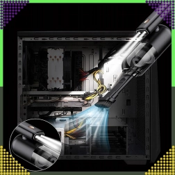 Kompaktowy i wydajny ręczny odkurzacz 2w1 do samochodu i domu łączy bezprzewodowe użytkowanie, silną moc ssania oraz funkcję wydmuchu w jednym urządzeniu. Dzięki filtrowi HEPA skutecznie wychwytuje kurz, pyłki i drobne cząstki, a oświetlenie LED pomaga sprzątać w ciemnych miejscach. Idealny do szybkiego porządku piasku, kurzu, okruchów i sierści zwierząt w samochodzie, na biurku czy wokół klawiatury.