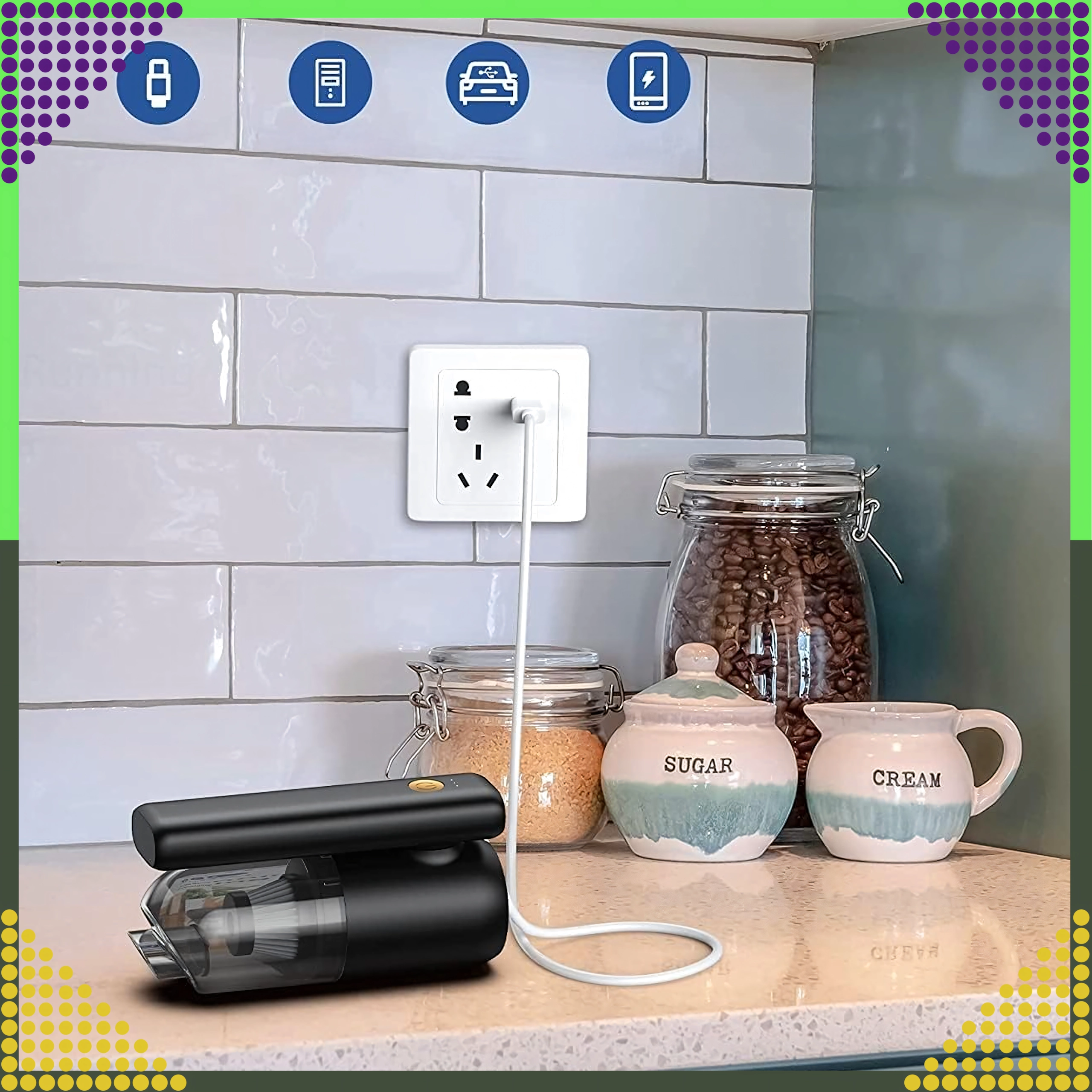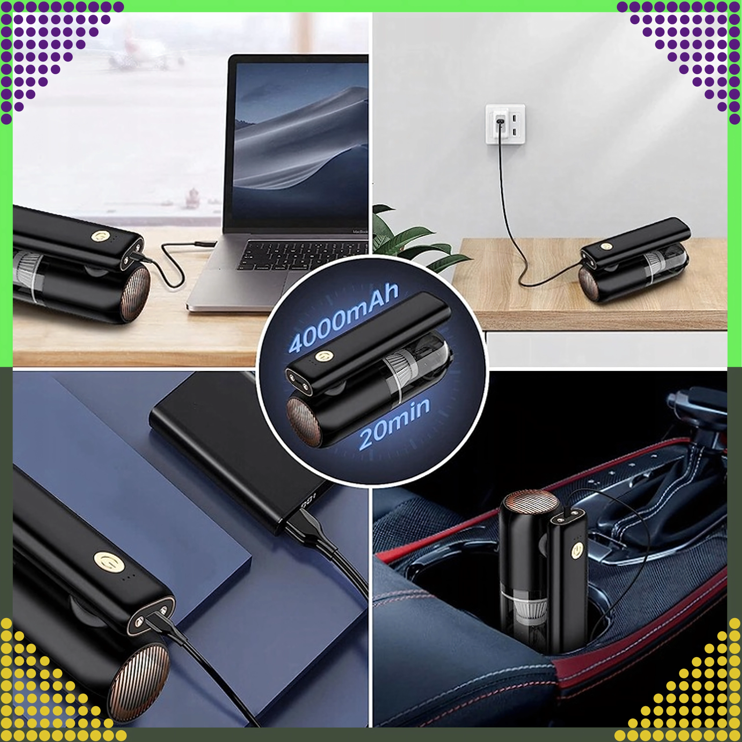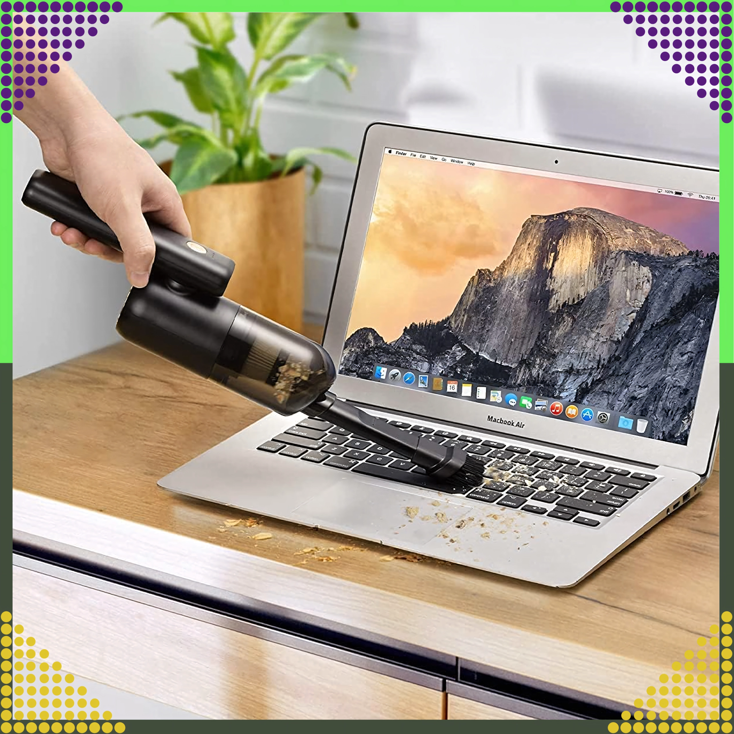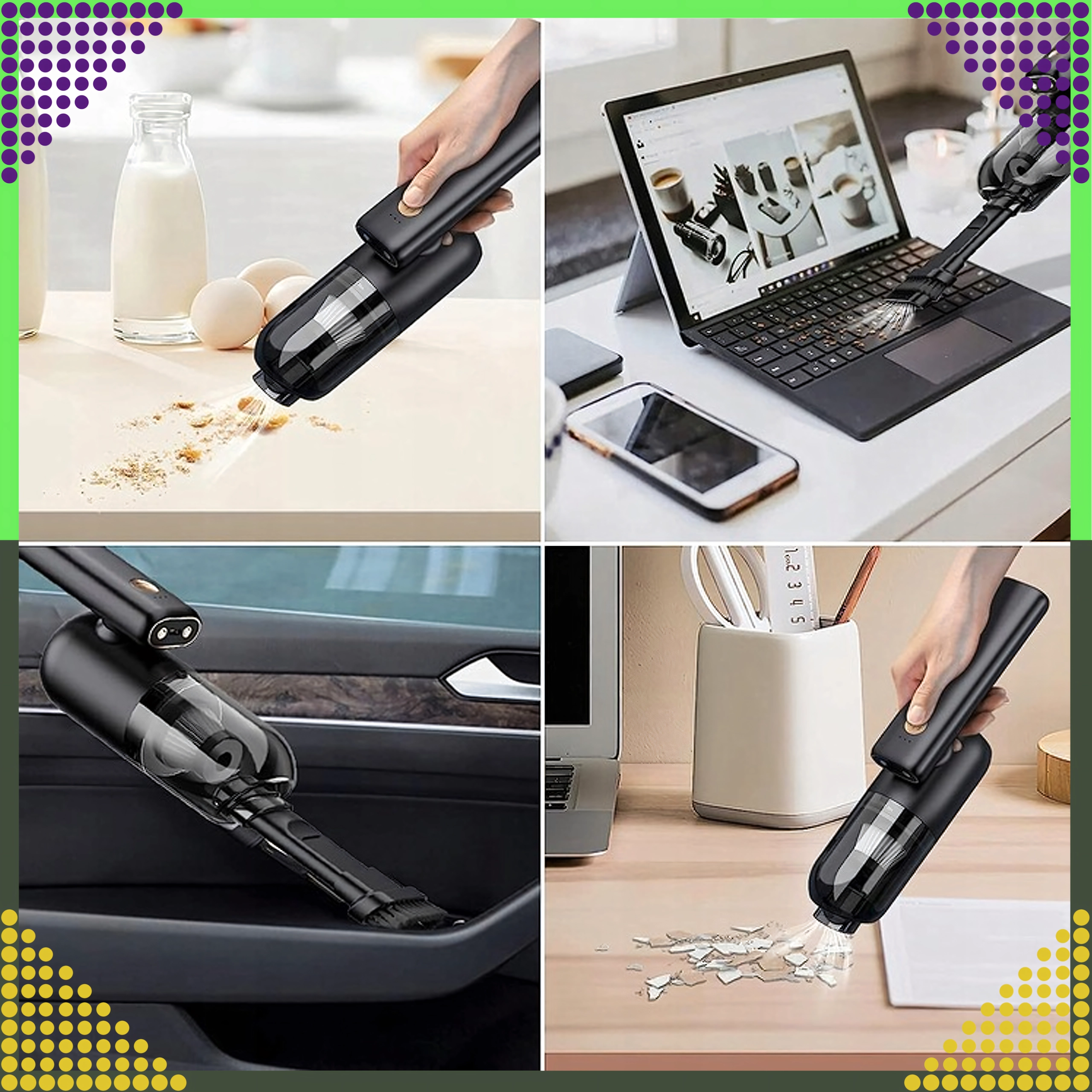 Kompaktowy i wydajny ręczny odkurzacz 2w1 do samochodu i domu łączy bezprzewodowe użytkowanie, silną moc ssania oraz funkcję wydmuchu w jednym urządzeniu. Dzięki filtrowi HEPA skutecznie wychwytuje kurz, pyłki i drobne cząstki, a oświetlenie LED pomaga sprzątać w ciemnych miejscach. Idealny do szybkiego porządku piasku, kurzu, okruchów i sierści zwierząt w samochodzie, na biurku czy wokół klawiatury.