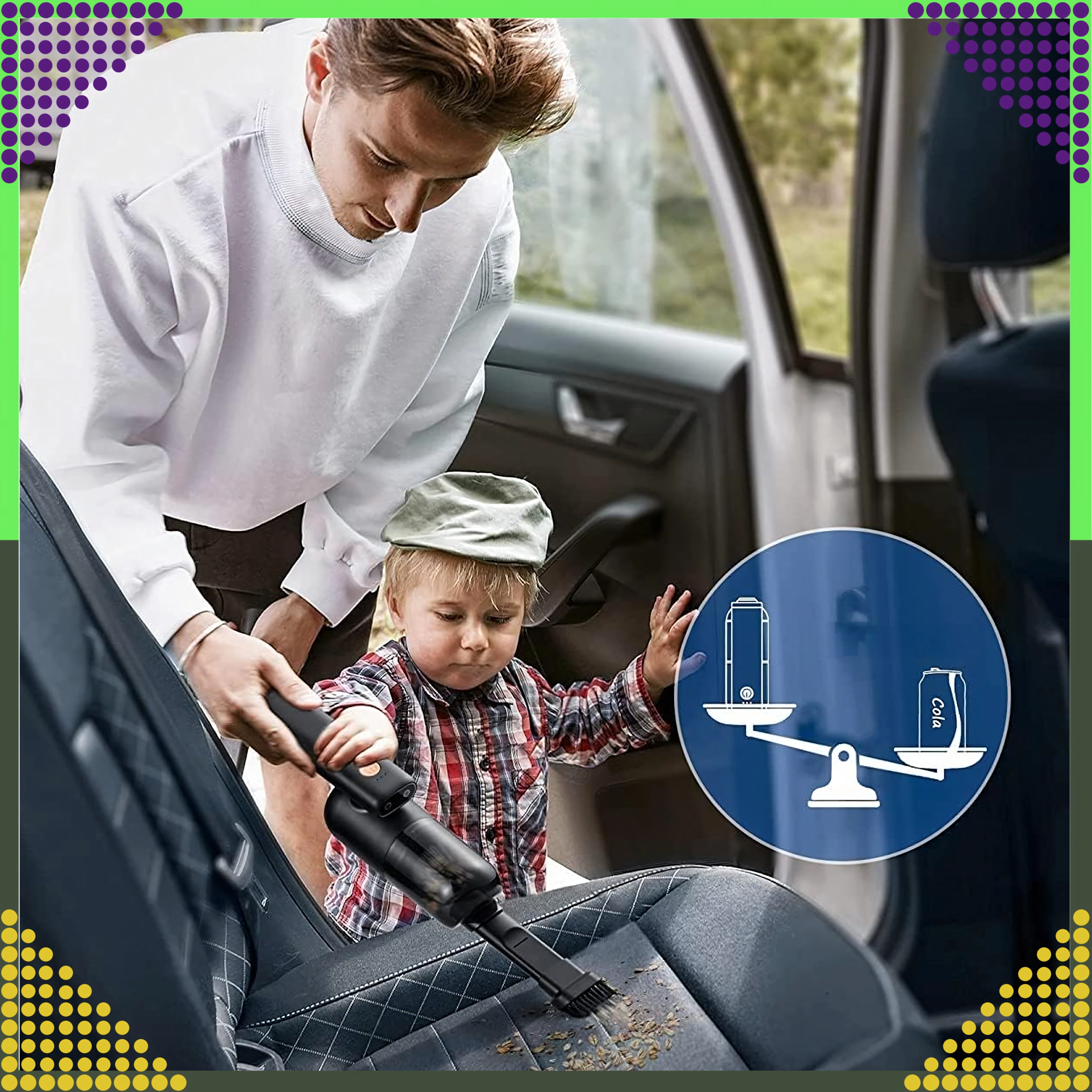 Lekki, poręczny i bez kabli – zabierzesz go wszędzie. Łatwo mieści się w kieszeni drzwi lub schowku i jest zawsze pod ręką do szybkiego sprzątania wnętrza.