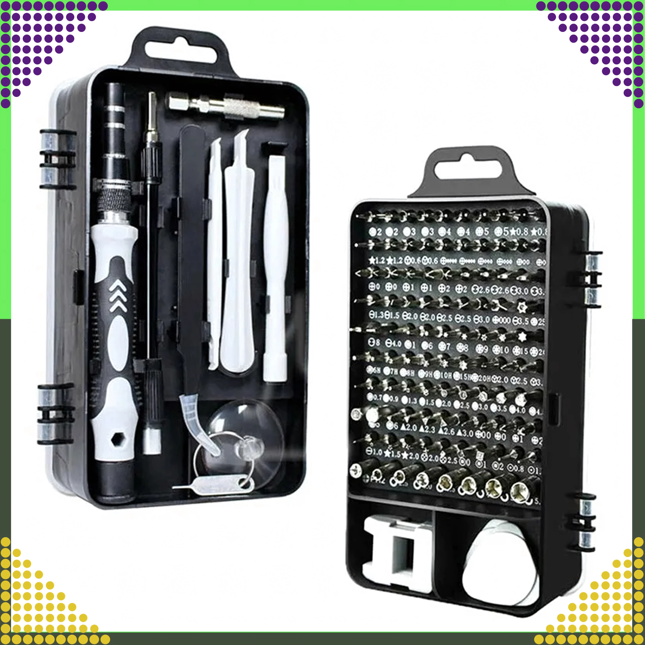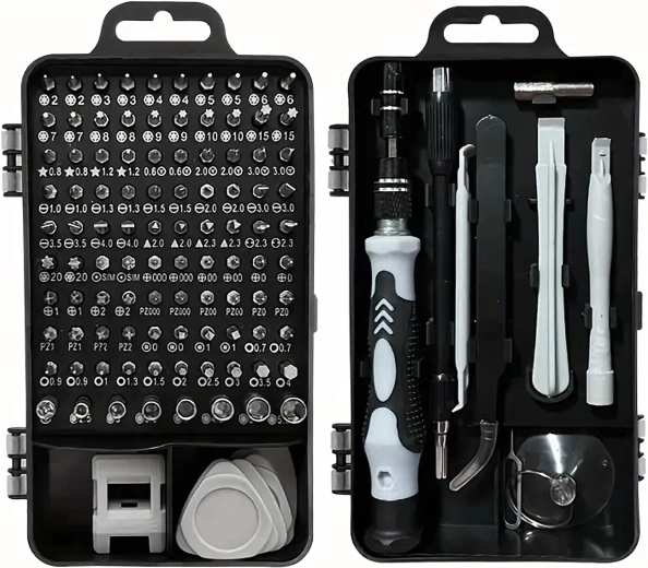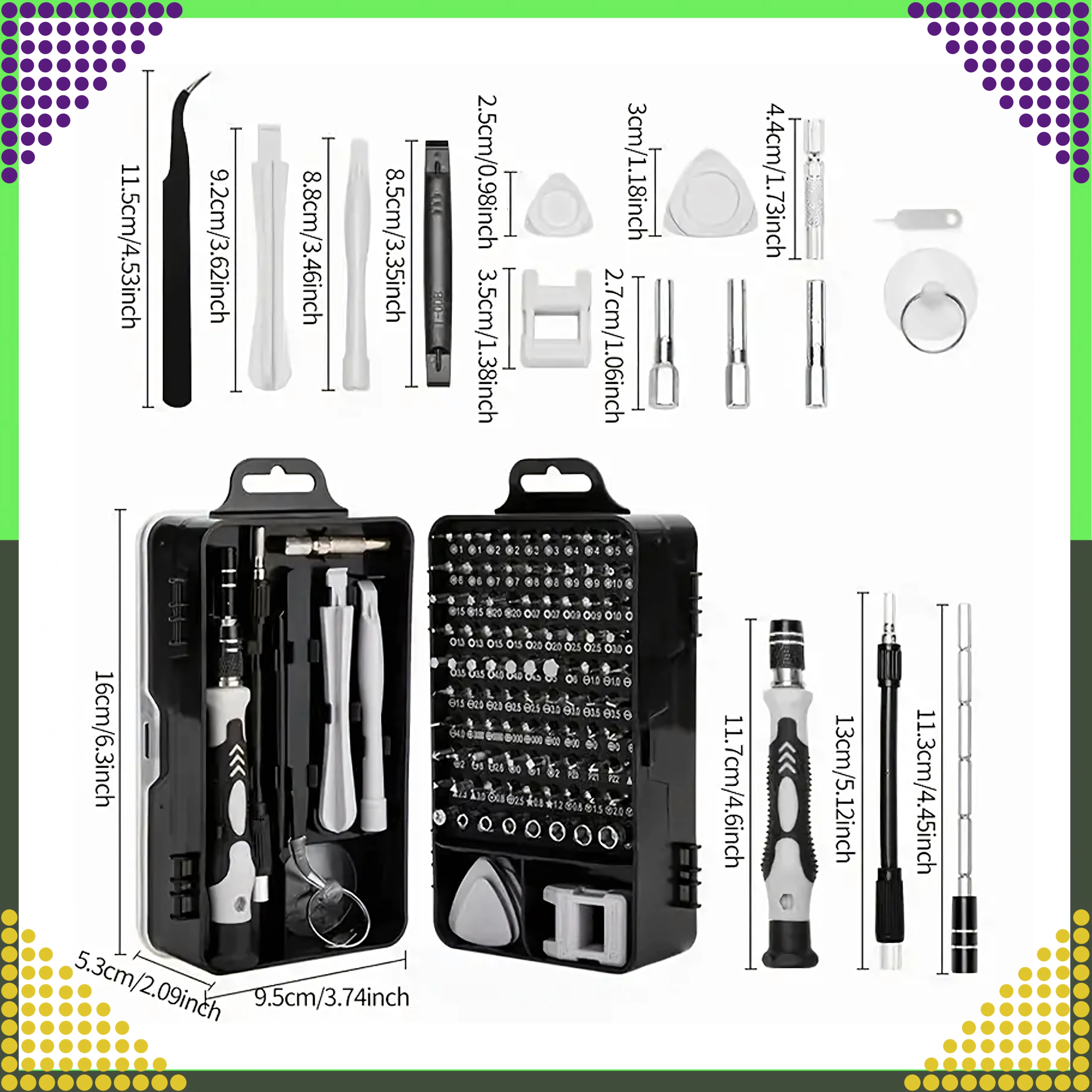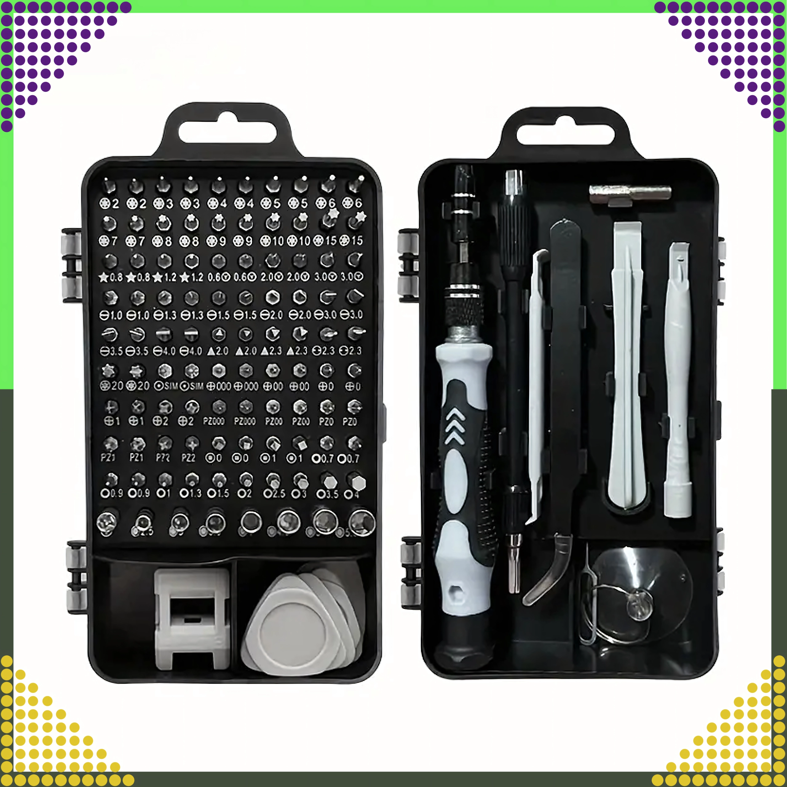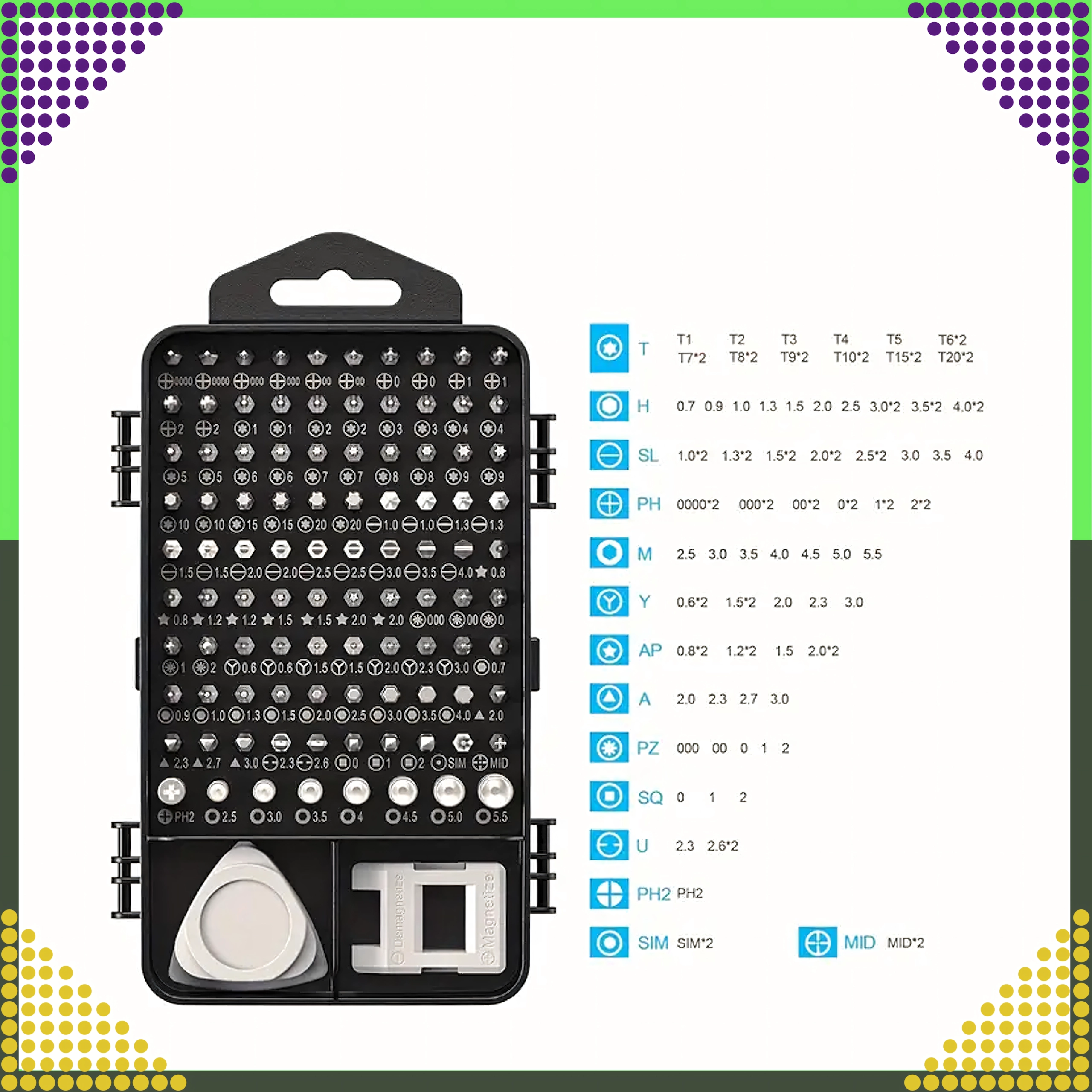 Szukasz jednego zestawu do wszystkiego? Ten zestaw 115 w 1 łączy szeroki wybór precyzyjnych bitów z praktycznymi narzędziami do bezpiecznego otwierania urządzeń. Wszystko mieści się w kompaktowym, dwuskrzydłowym etui, które zapewnia porządek, szybki dostęp i łatwe przenoszenie.