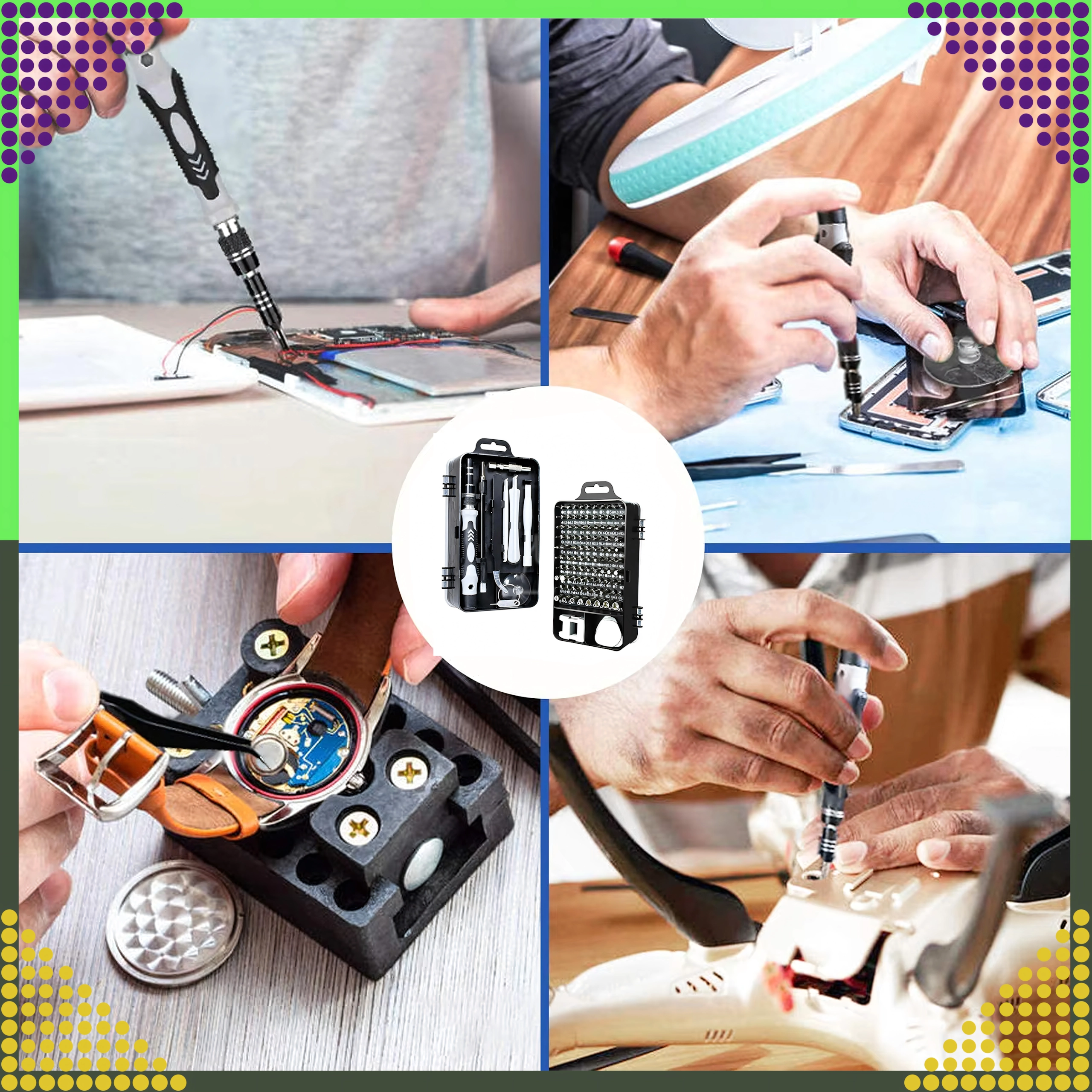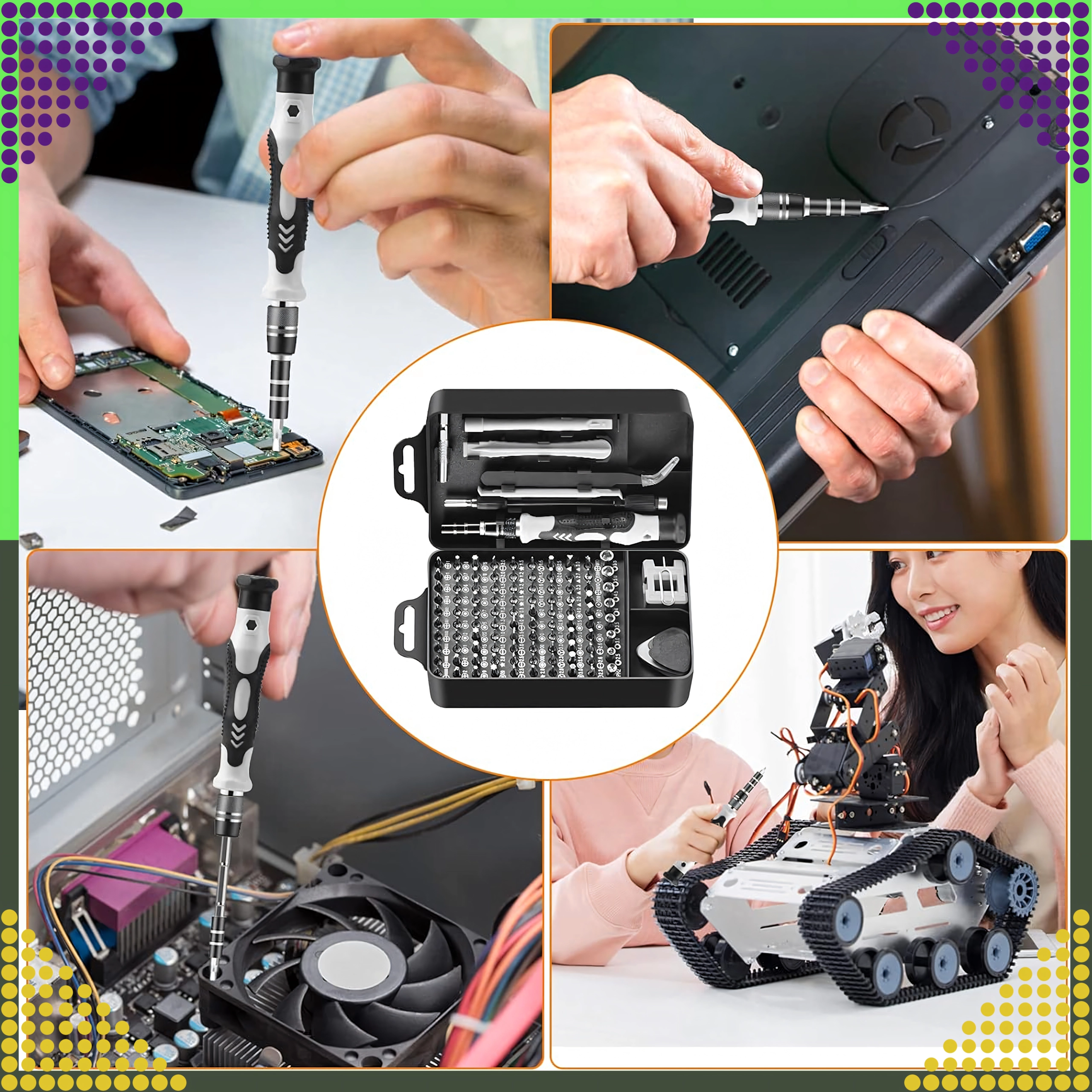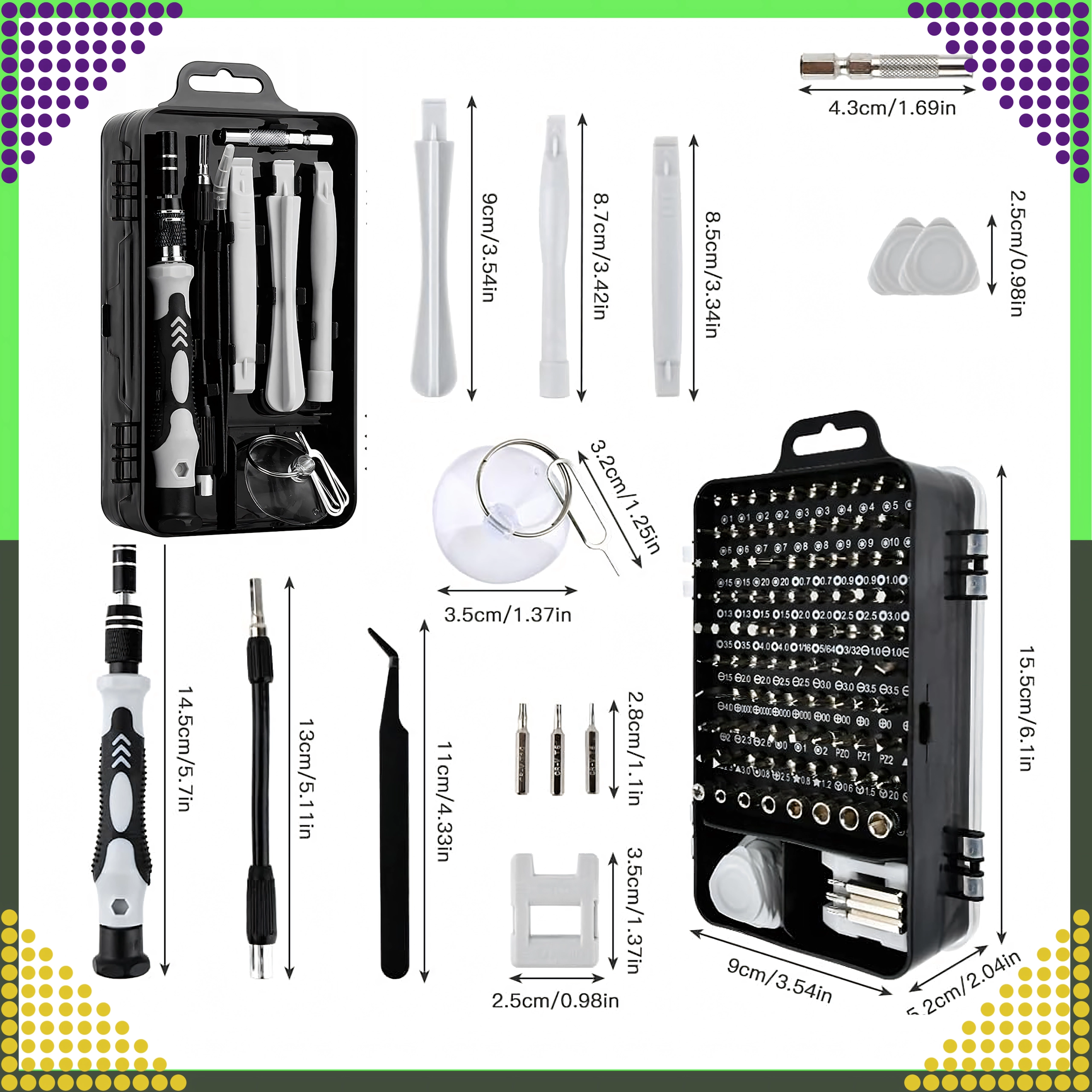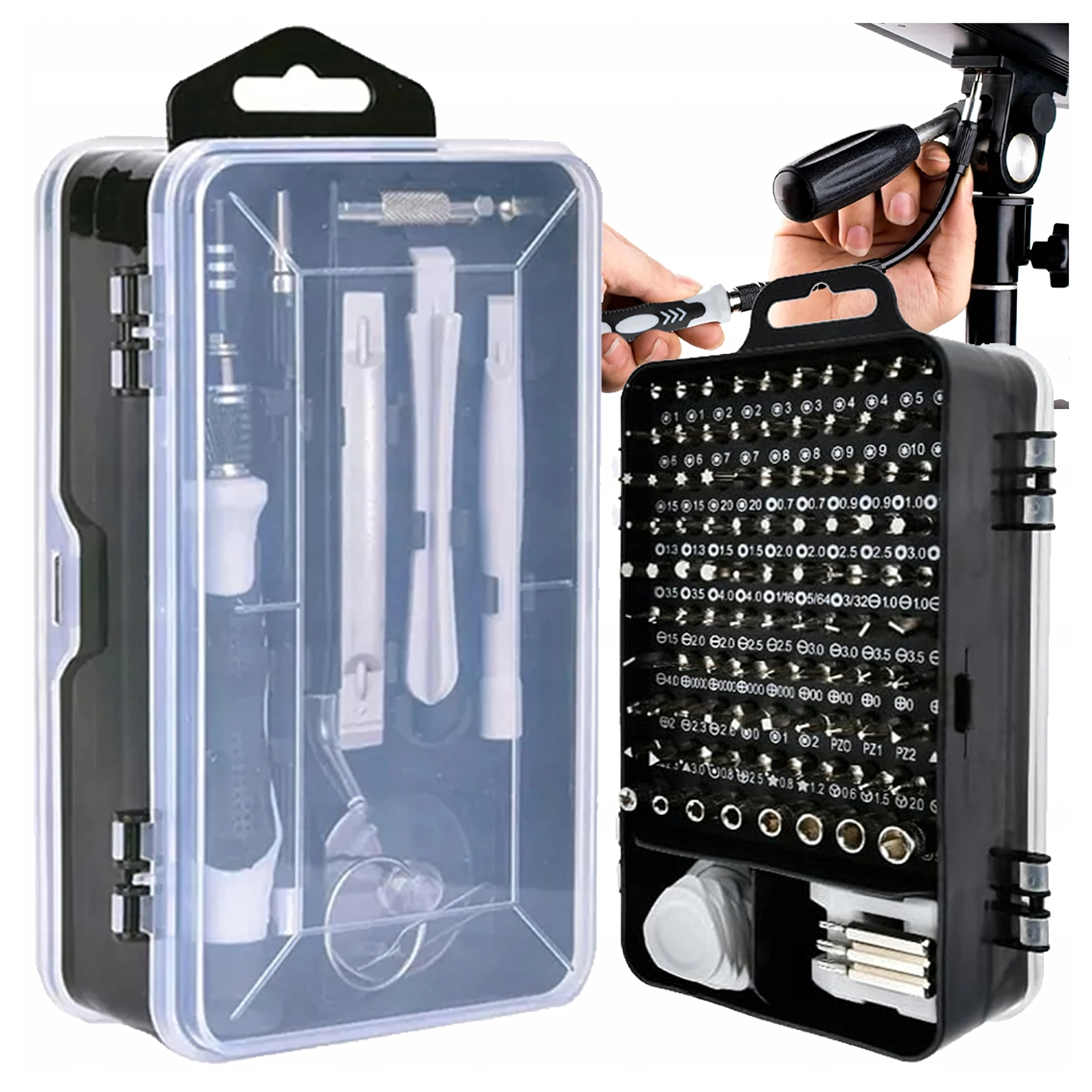 Kompletny zestaw do precyzyjnych napraw i montażu: precyzyjne śrubokręty oraz aż 118 elementów z wymiennymi bitami, w tym TORX, Phillips i płaskimi. Dzięki magnetycznym końcówkom, ergonomicznej rękojeści i kompaktowemu etui wykonasz szybkie naprawy elektroniki, zegarków, okularów i komputerów PC bez gubienia drobnych śrubek.