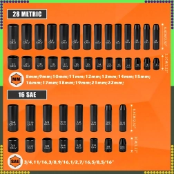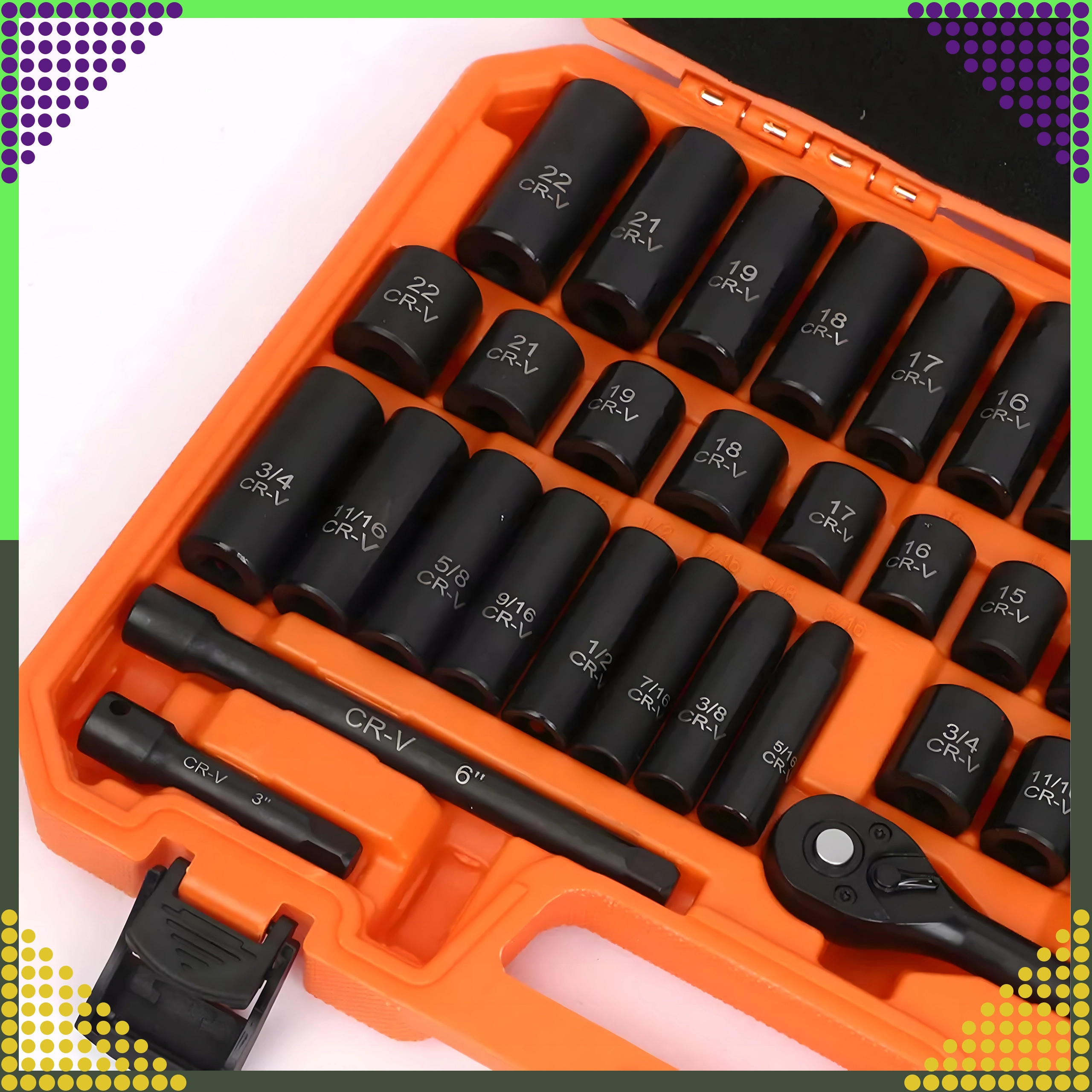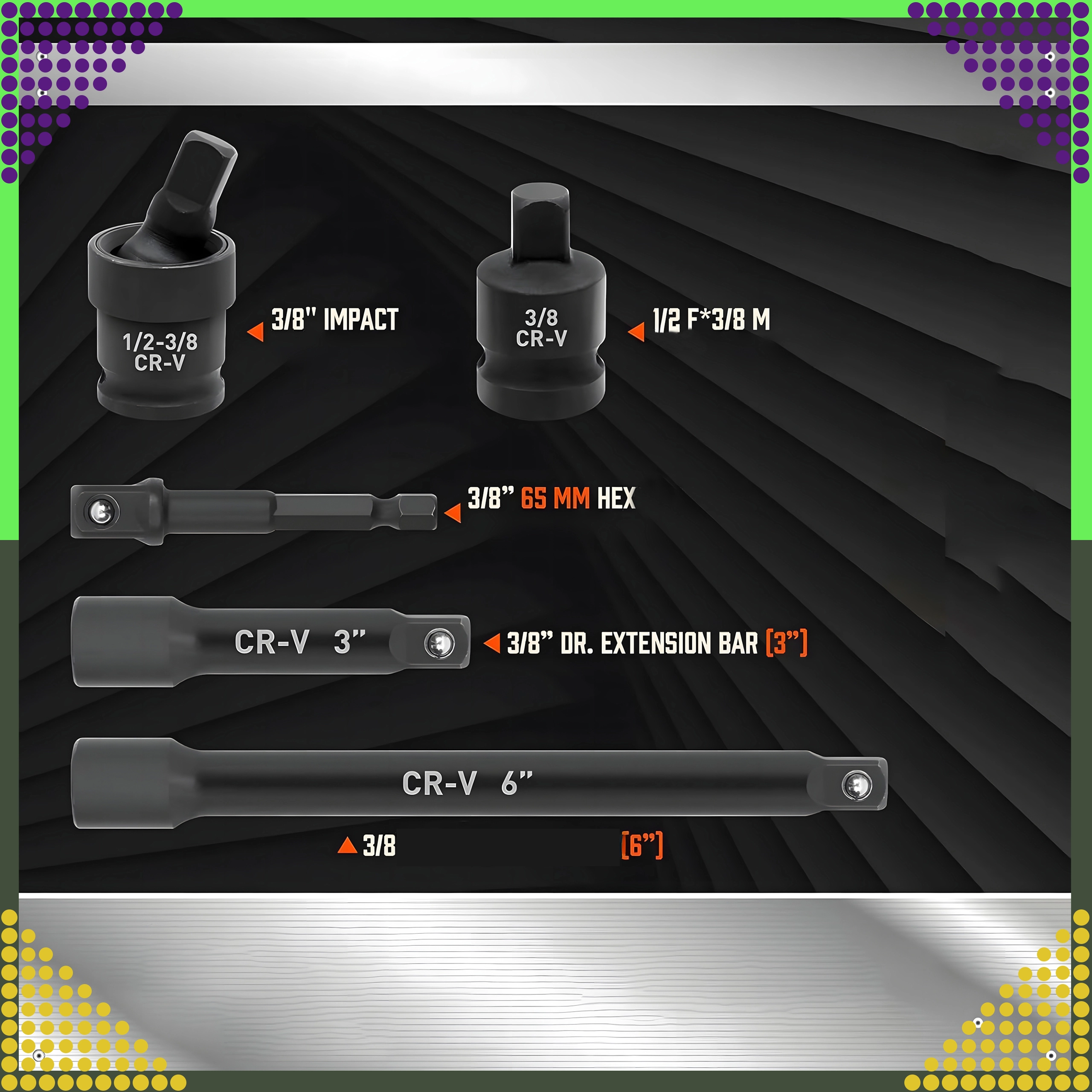 Ten uniwersalny zestaw udarowych nasadek 3/8'' został zaprojektowany dla mechaników, serwisantów oraz wymagających majsterkowiczów. Łączy rozmiary metryczne i SAE, dzięki czemu bez trudu obsłużysz europejskie i amerykańskie maszyny. Sześciokątny profil zapewnia pewny kontakt ze śrubą i zmniejsza ryzyko zrywania krawędzi.