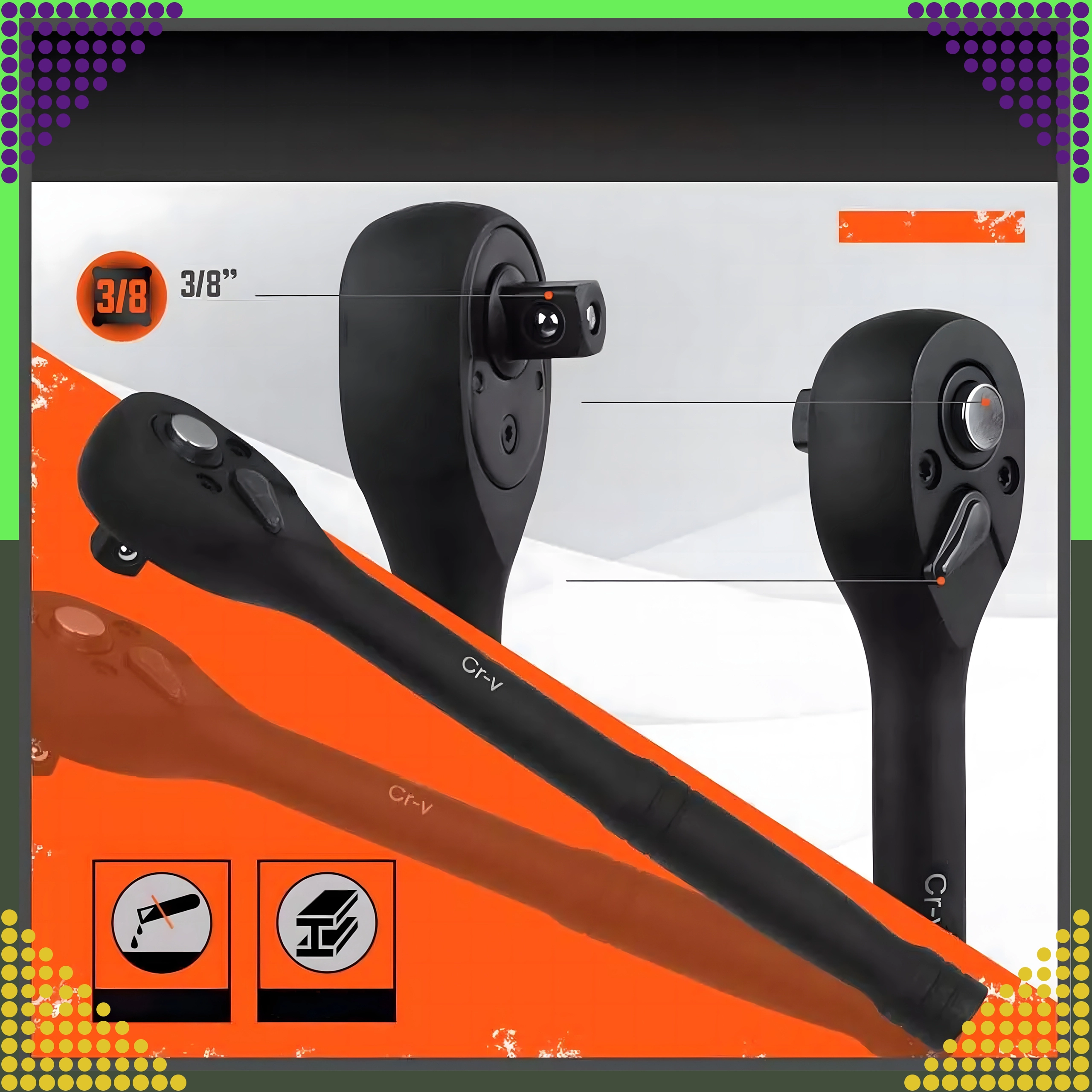 Grzechotka 3/8'' i akcesoria umożliwiają wygodne dokręcanie i odkręcanie również w komorze silnika czy innych ograniczonych przestrzeniach.