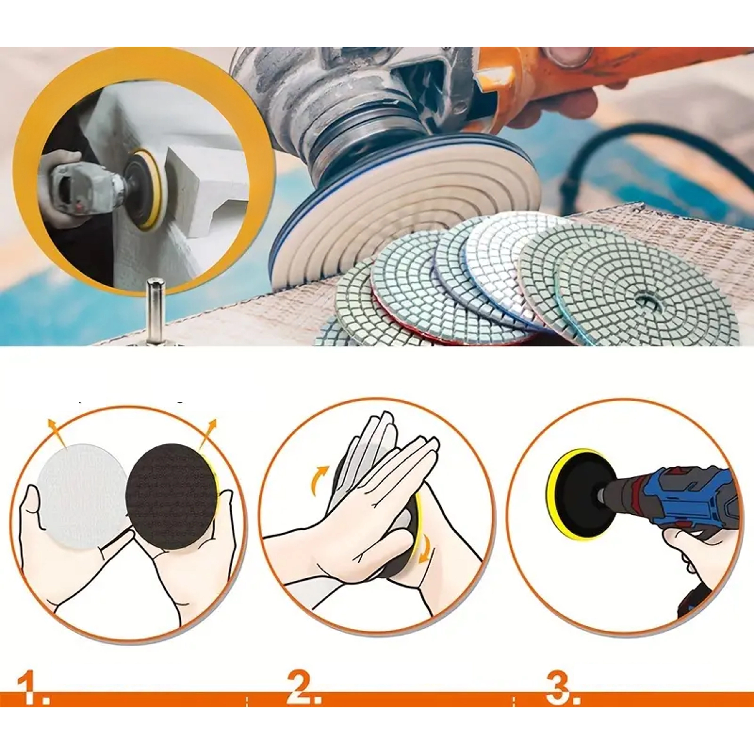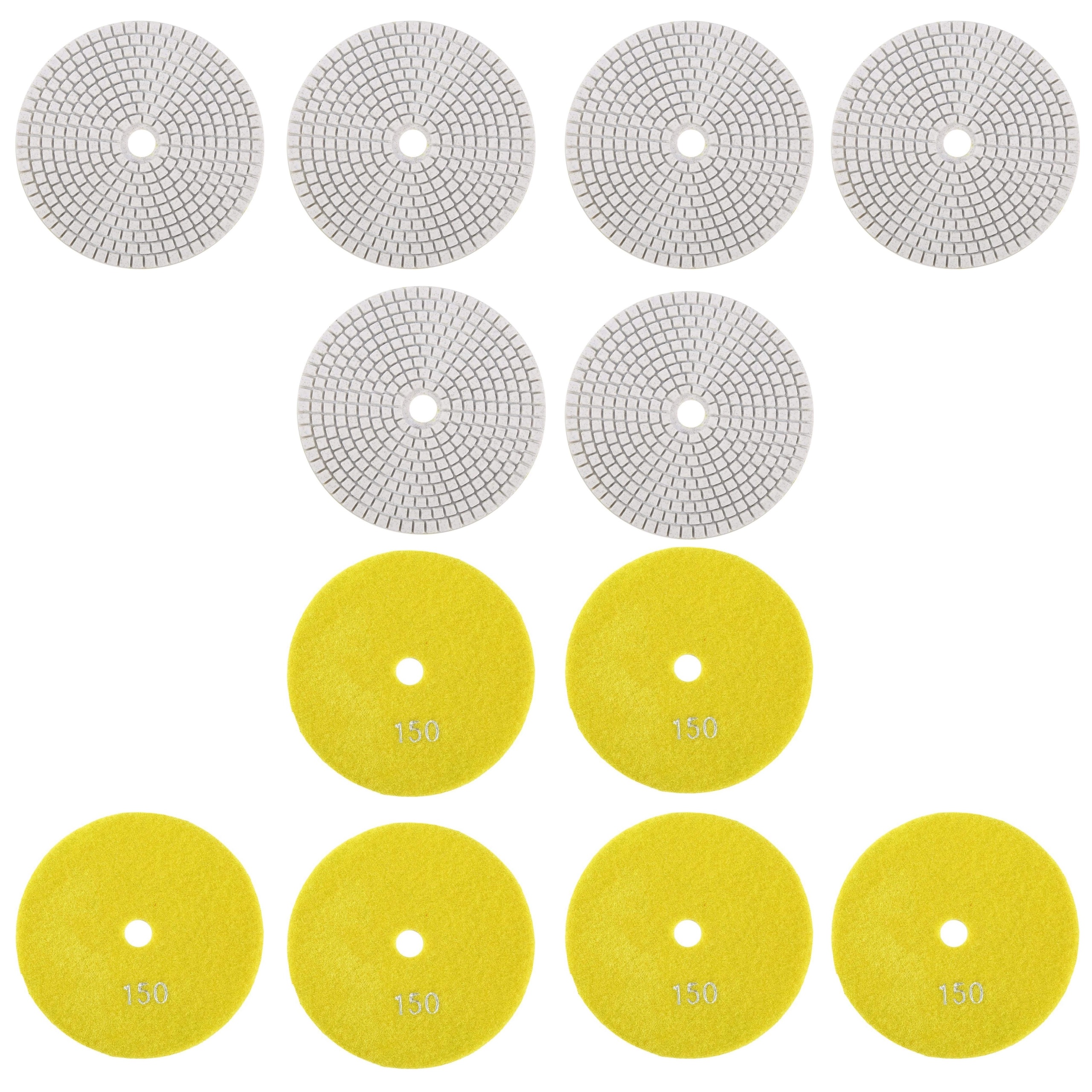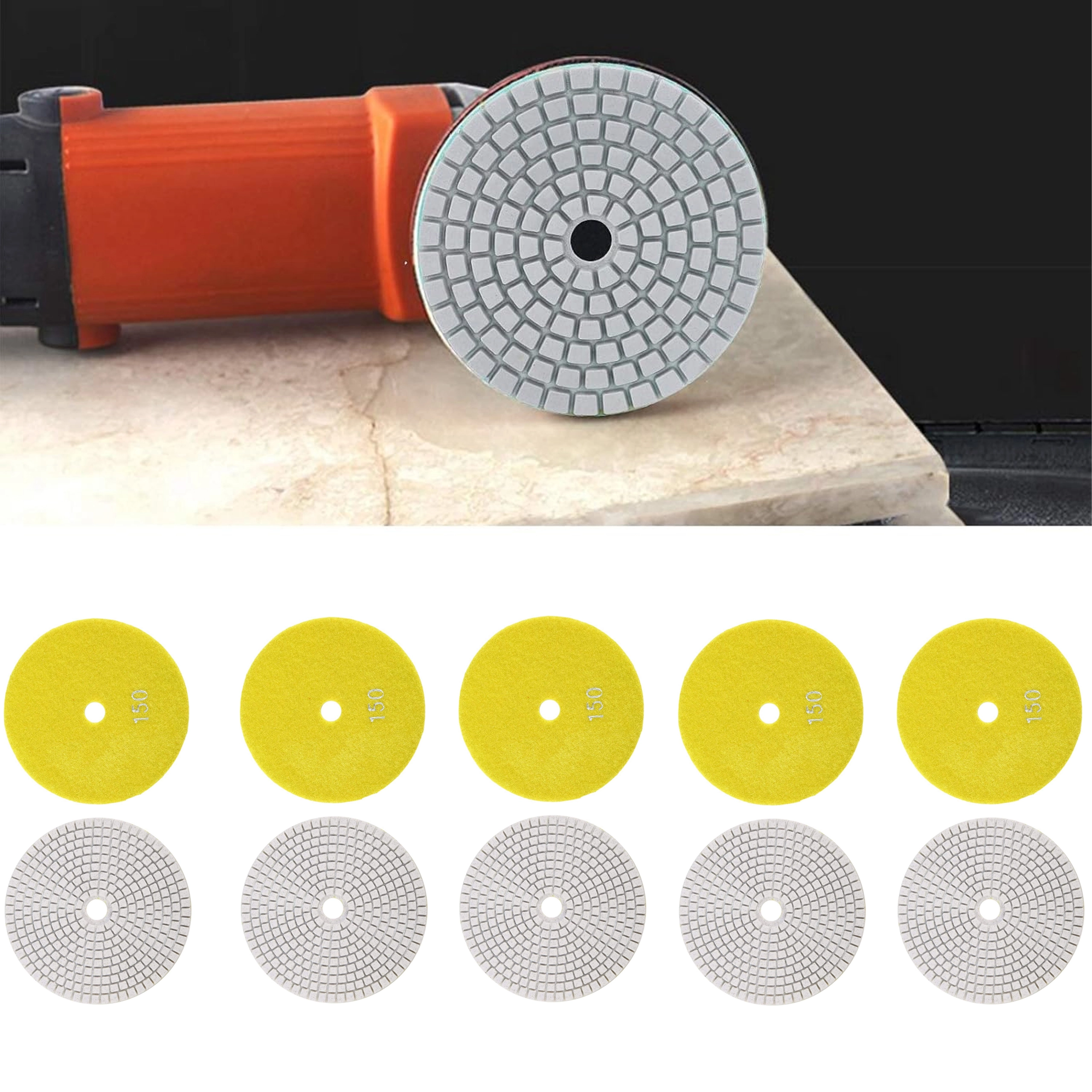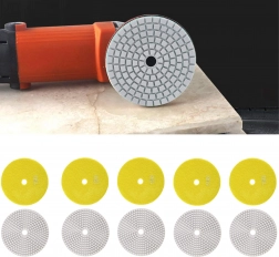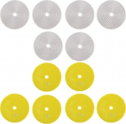Profesjonalny zestaw 10 diamentowych tarcz polerskich o średnicy 80 mm do szybkiego szlifowania i polerowania gresu, płytek ceramicznych, kamienia, marmuru i granitu. Tarcze nadają się do pracy na sucho i na mokro, a dzięki mocowaniu na rzep umożliwiają szybką wymianę i płynną pracę z wysoką trwałością i efektywnością.