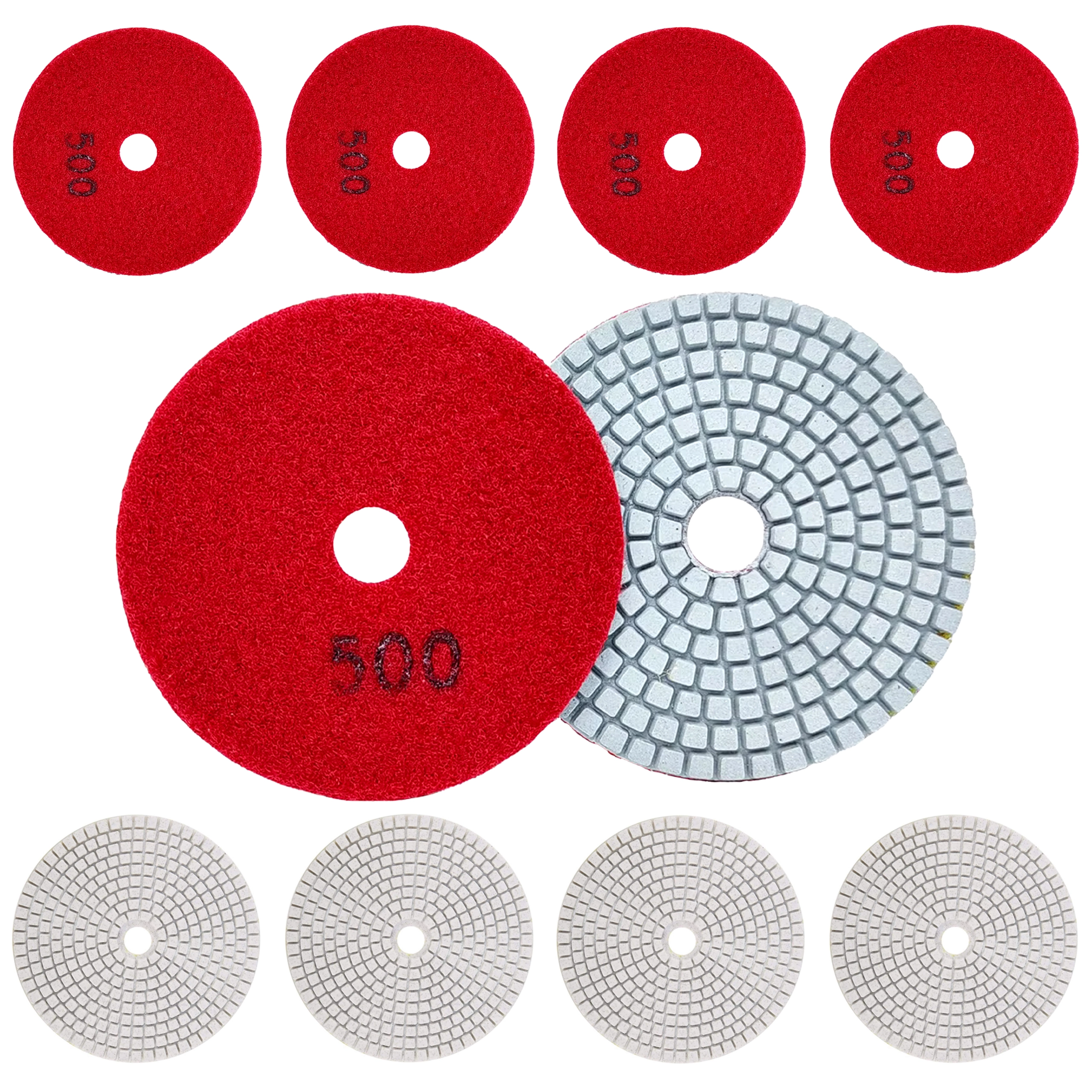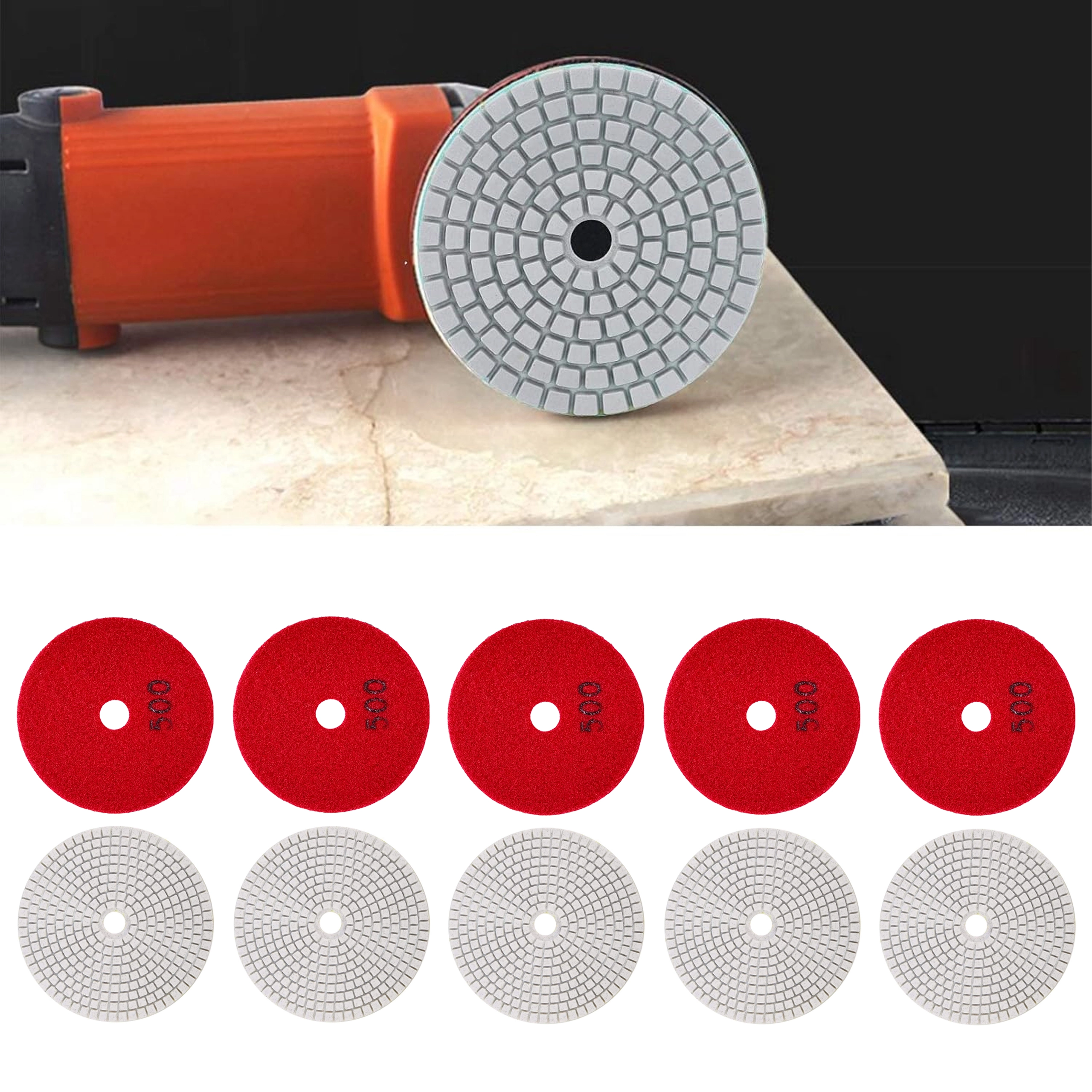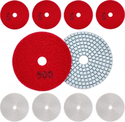 Profesjonalny zestaw 10 diamentowych tarcz polerskich o średnicy 80 mm do precyzyjnego szlifowania i polerowania gresu, płytek ceramicznych, kamienia, marmuru i granitu. Obsługują szlifowanie na sucho i na mokro, a dzięki mocowaniu na rzep umożliwiają szybką wymianę. Gradacja 500 zapewnia skuteczne, delikatne szlifowanie i gładką powierzchnię.
