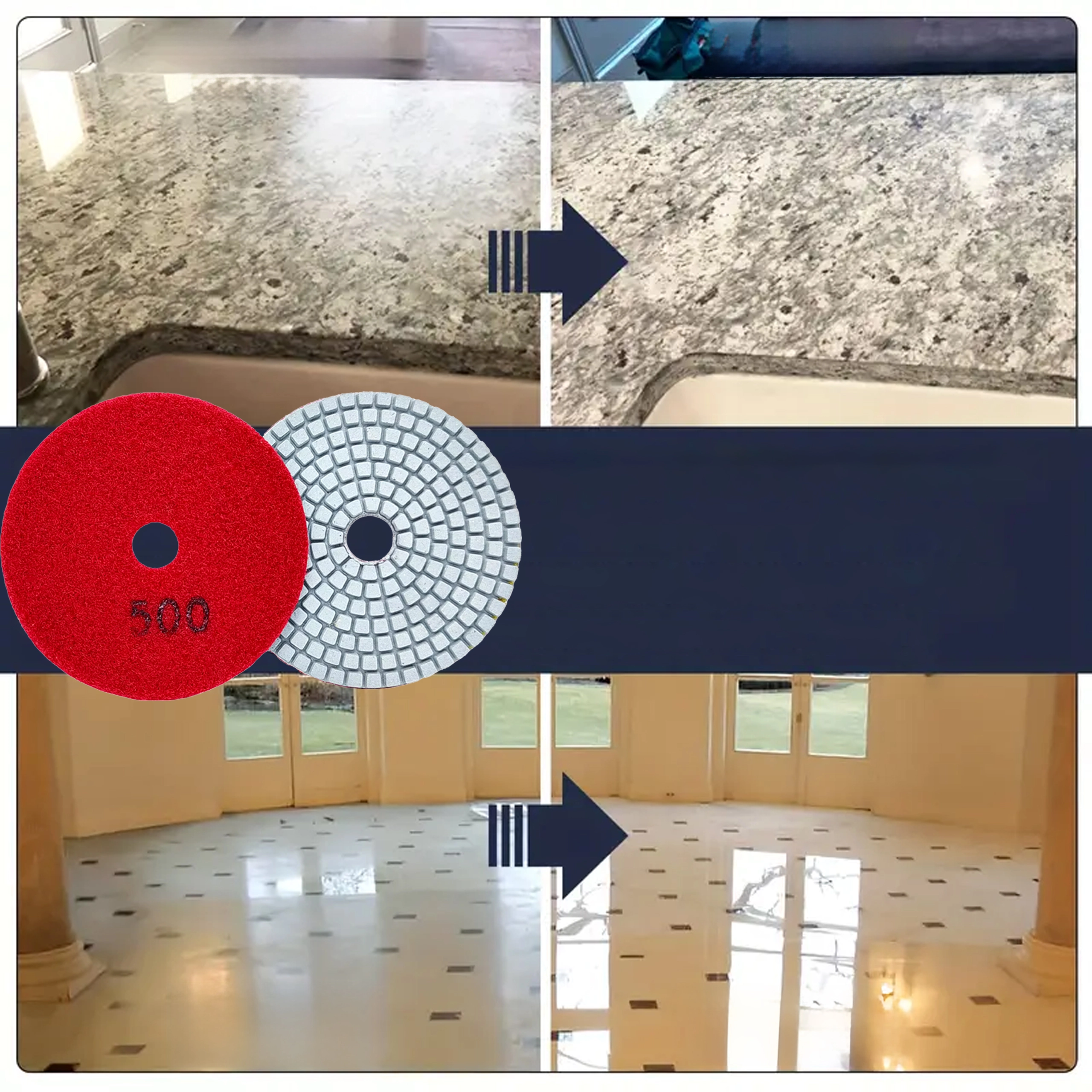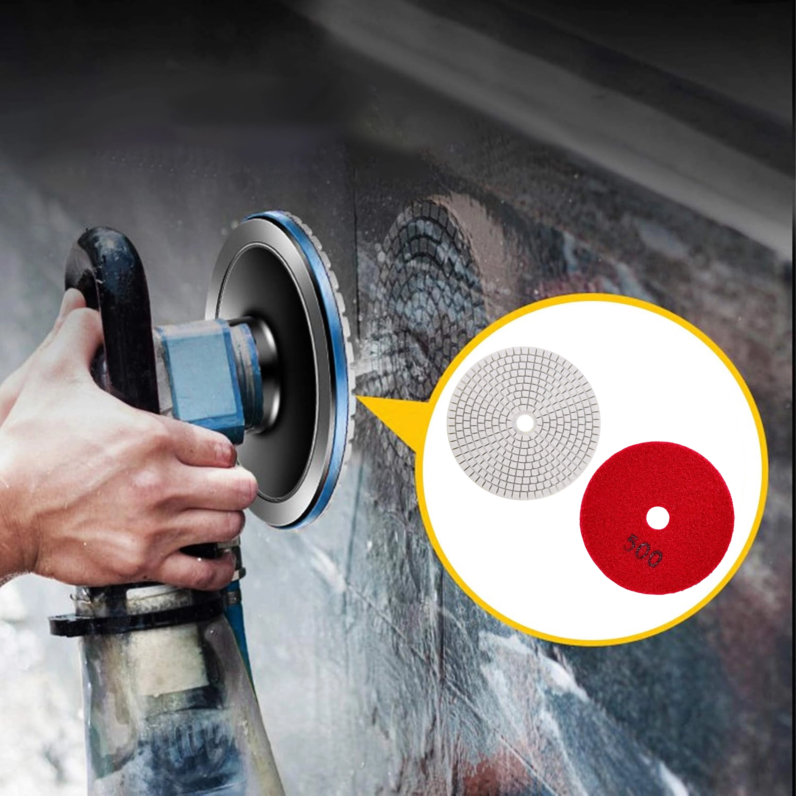 Tarcze diamentowe o gradacji 500 są idealne jako etap pośredni delikatnego szlifowania z wysoką kontrolą nad powierzchnią. Elastyczna konstrukcja i segmentowany wzór zapewniają efektywne odprowadzanie szlamu i ciepła przy pracy na mokro i na sucho, dzięki czemu uzyskasz równomierny, czysty efekt bez przegrzań.