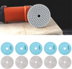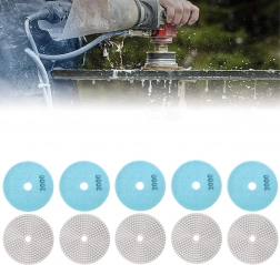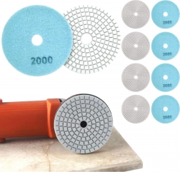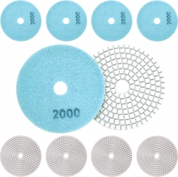 Profesjonalny zestaw 10 diamentowych tarcz polerskich o średnicy 80 mm do precyzyjnego szlifowania i polerowania gresu, ceramiki, kamienia, marmuru oraz granitu. Tarcze umożliwiają pracę na sucho i na mokro, a dzięki mocowaniu na rzep ich wymiana jest szybka i wygodna. Gradacja 2000 do delikatnych prac wykończeniowych z wysokim połyskiem.