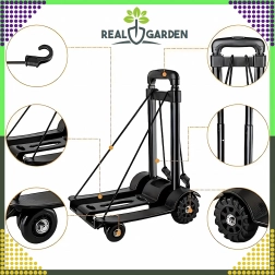 Ułatw sobie codzienną manipulację z ładunkiem. Ten składany wózek transportowy łączy niską masę, mocną konstrukcję z aluminium i tworzywa oraz teleskopową rączkę, która dopasuje się do Twojego wzrostu. Dzięki kompaktowym wymiarom po użyciu łatwo schowasz go do szafy, auta lub na regał.
