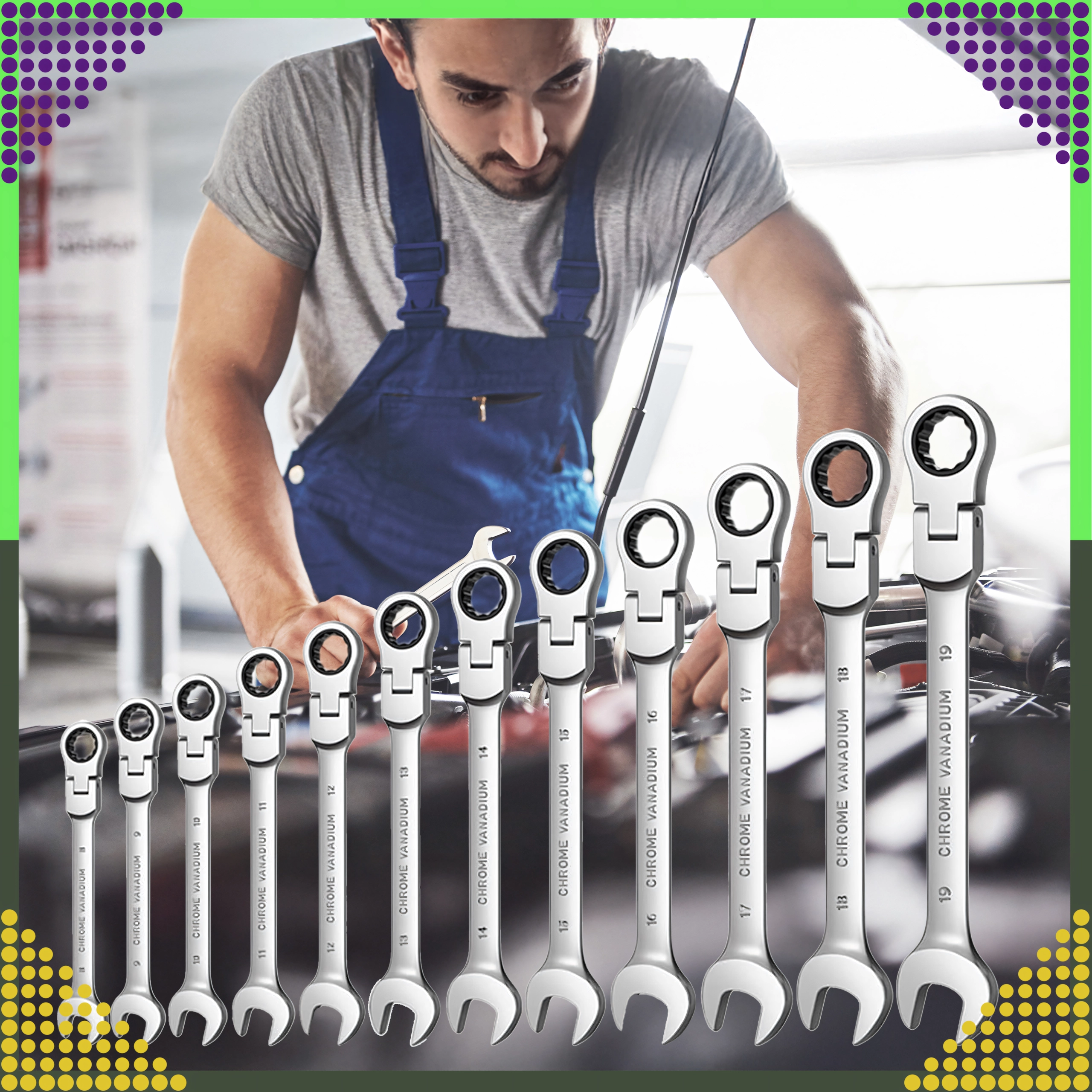Ten profesjonalny zestaw łączy otwarty płaski koniec i oczko z grzechotką, dzięki czemu pracujesz szybciej i efektywniej bez ciągłego przekładania klucza. Stal chromowo‑wanadowa gwarantuje wysoką wytrzymałość oraz odporność na zużycie i korozję – idealnie do warsztatu samochodowego, serwisu rowerowego i domowych napraw.